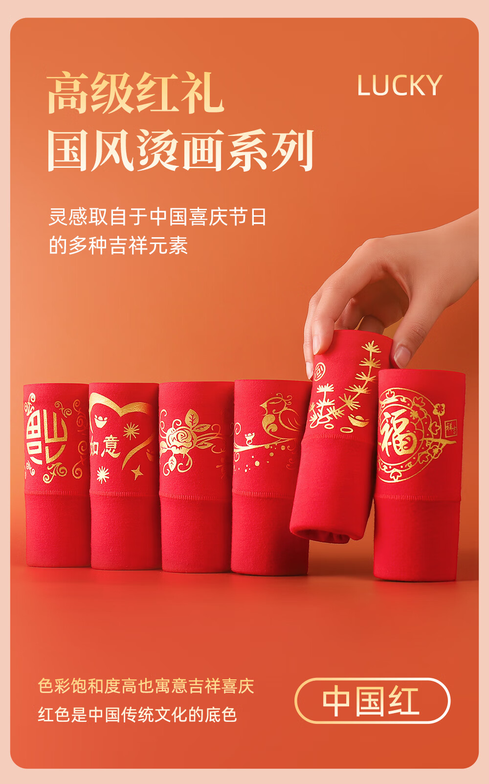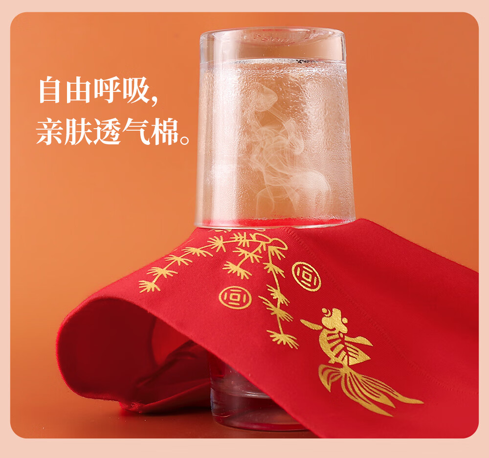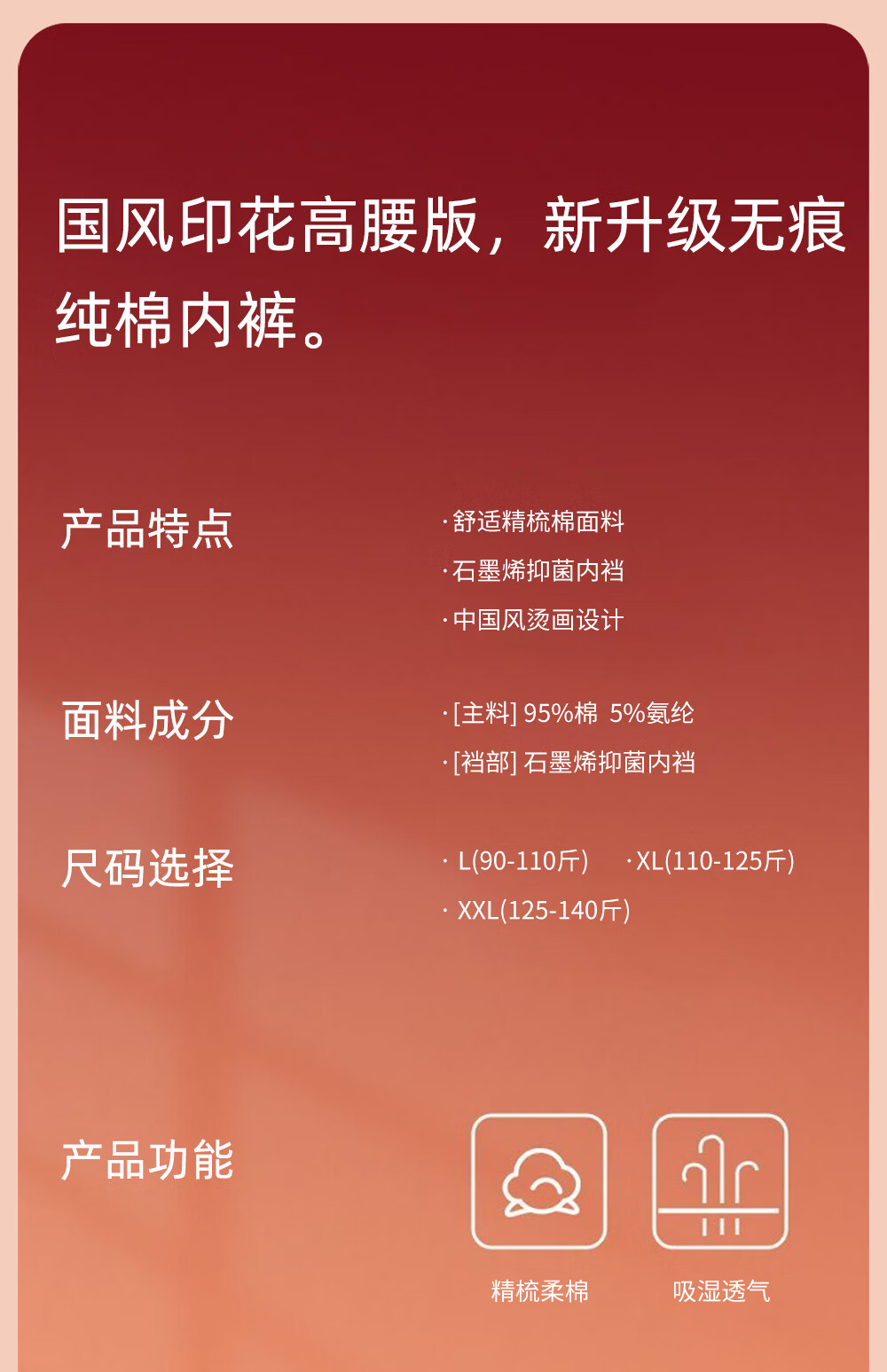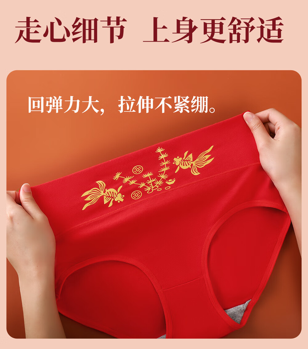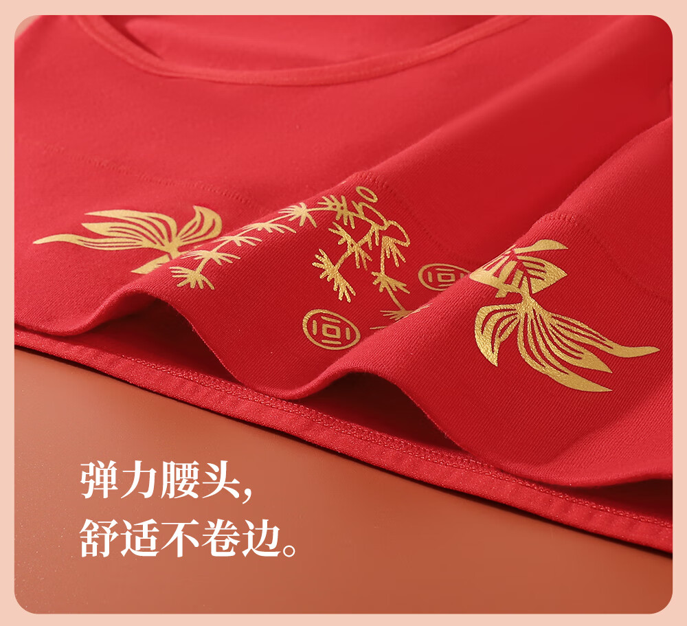 靓芯依马年本命年大红色内裤女棉质高腰喜庆结婚内裤女三角短裤头95棉 福字+福倒+吉祥+喜鹊 4条 2XL 建议130-155斤