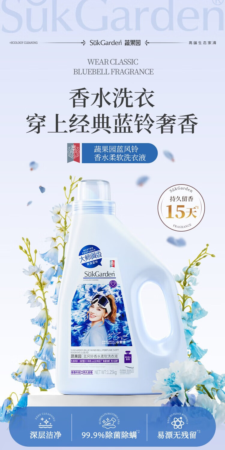 蔬果园大师调香洗衣液 深层洁净 持久留香 除菌除螨 柔顺护色香水洗衣液 【56%选择】7斤|蓝风铃香