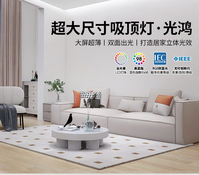 雷士(NVC)客厅灯约1.2米北欧现代简约超薄led吸顶灯卧灯饰灯具室2025流行款 超薄大屏银光鸿-200瓦/无极调光