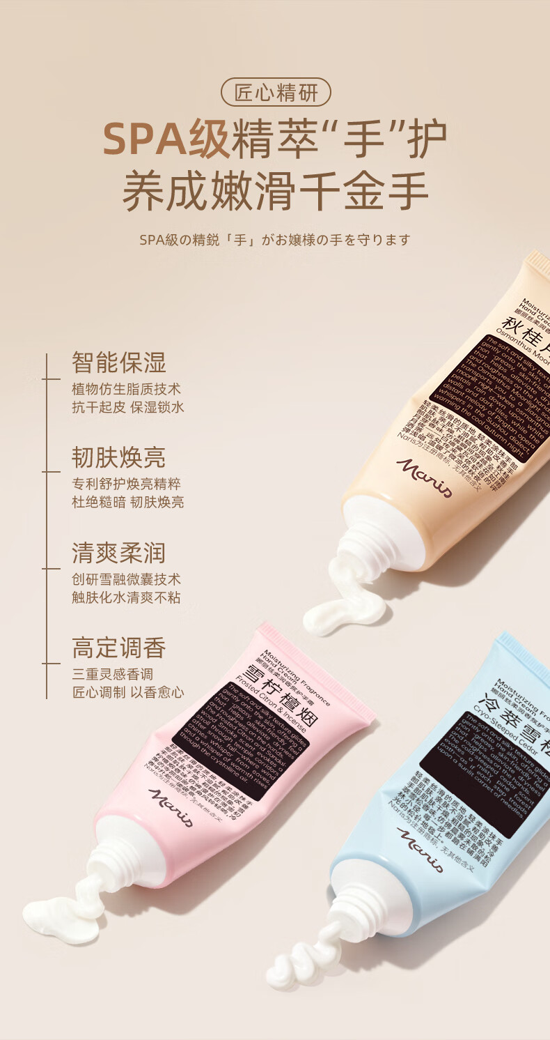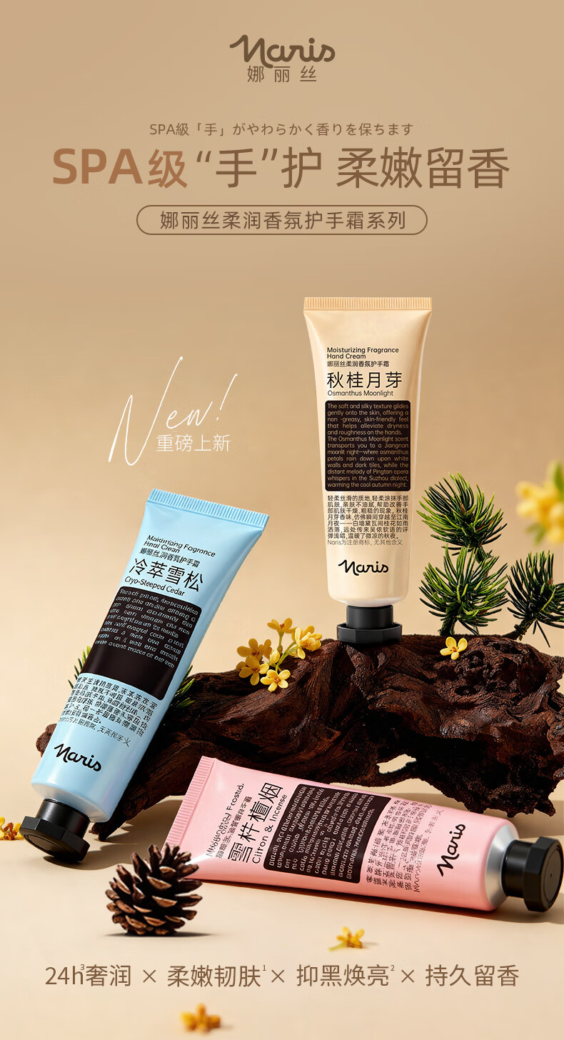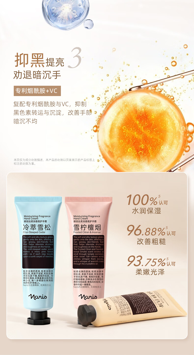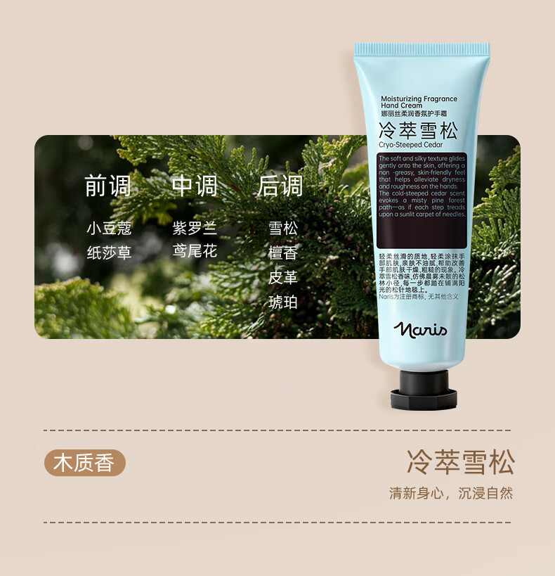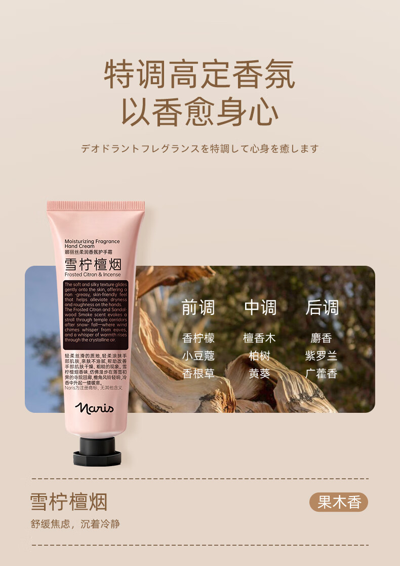 娜丽丝(Naris up)花香秋冬季护手霜保湿滋润防干裂手膜焕亮香氛男女手霜 雪柠檀烟*果木香*60g
