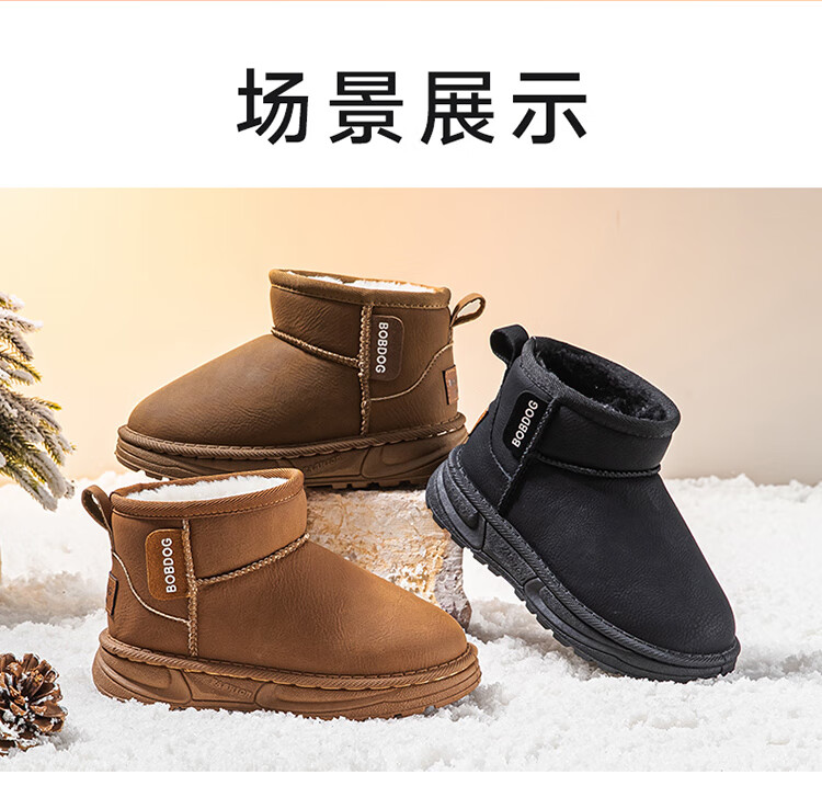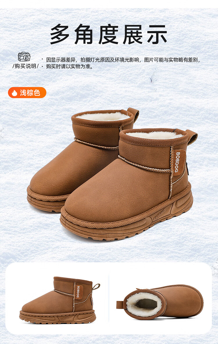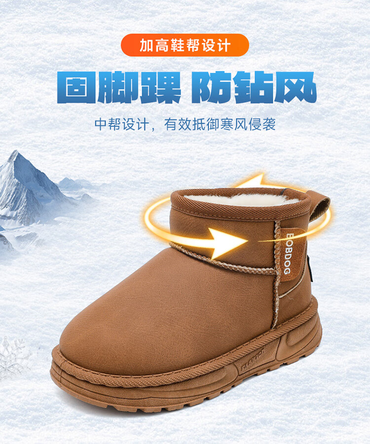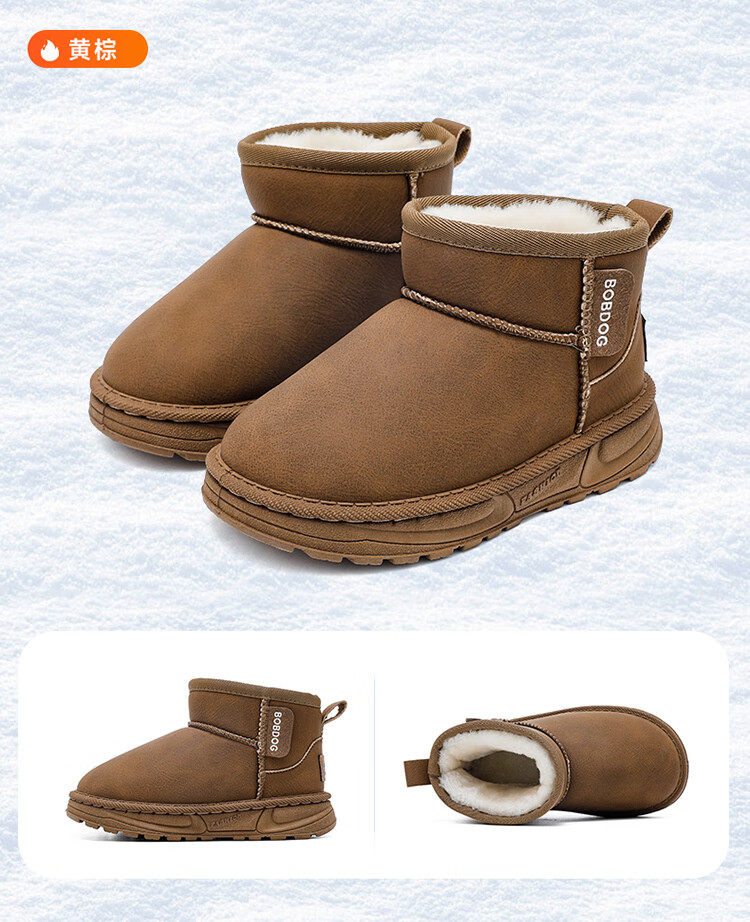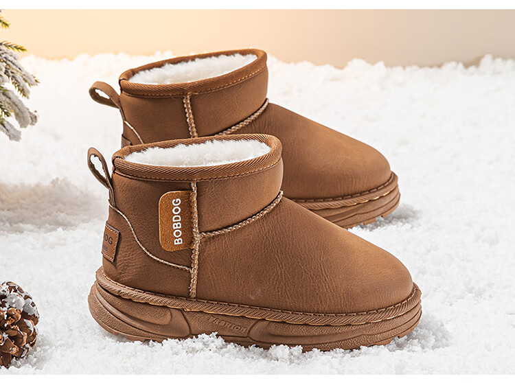 巴布豆(BOBDOG)童鞋男童冬季加绒保暖雪地靴2025舒适百搭靴子休闲时尚二棉鞋女 浅棕色 30 适合脚长17.5cm