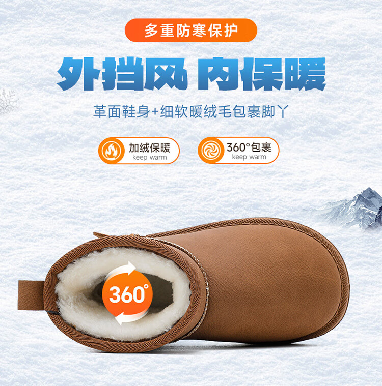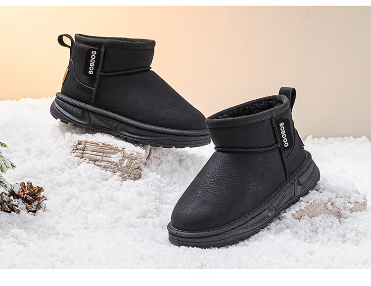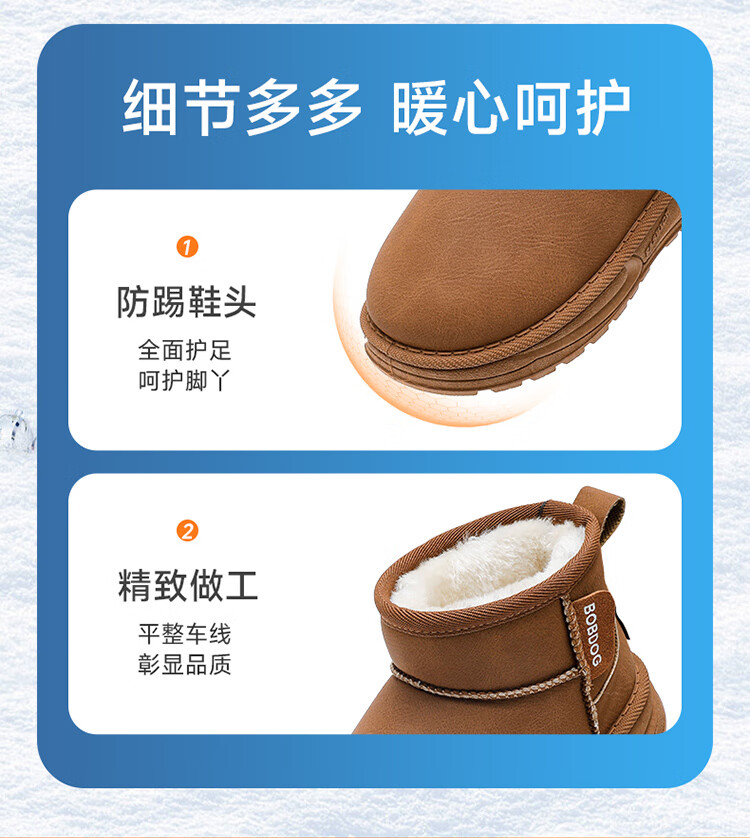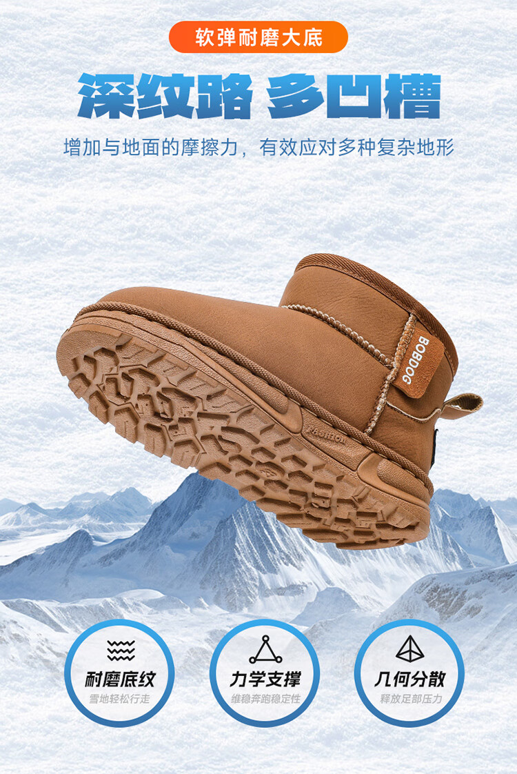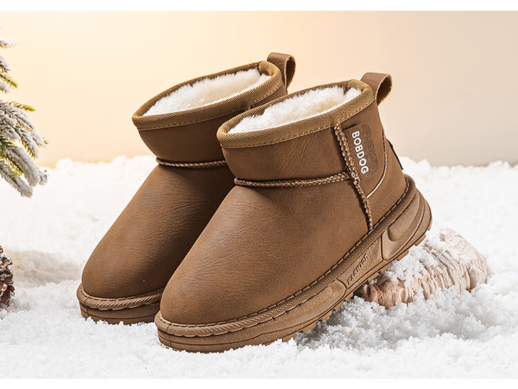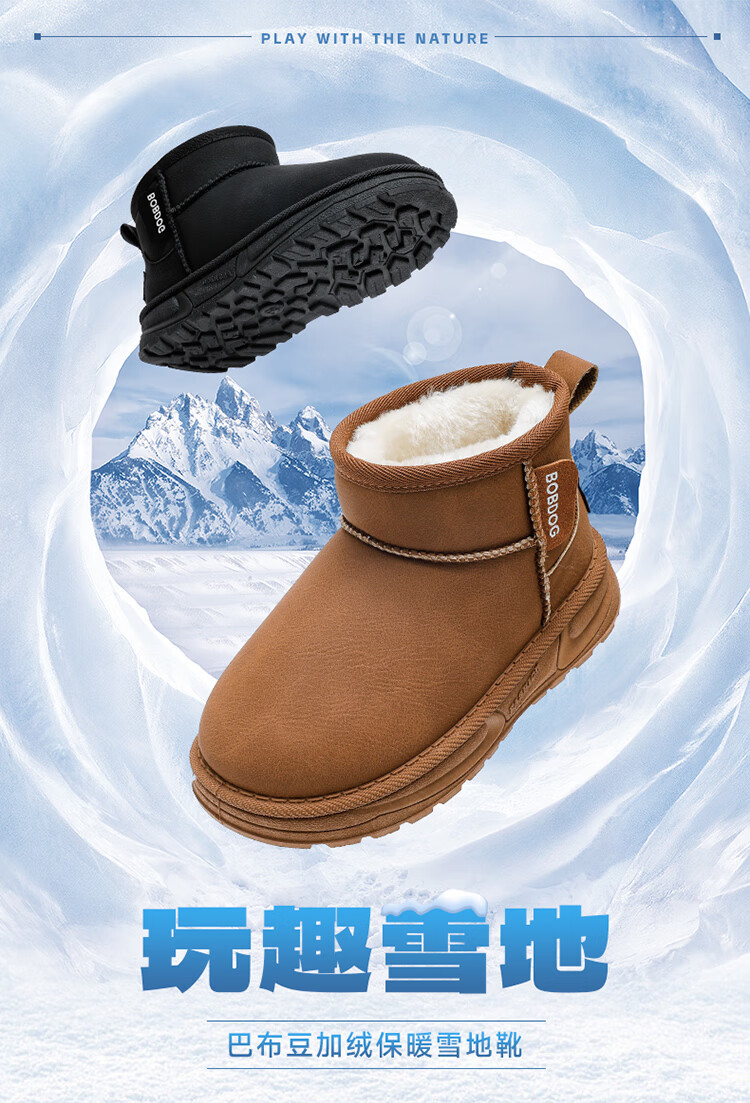 巴布豆(BOBDOG)童鞋男童冬季加绒保暖雪地靴2025舒适百搭靴子休闲时尚二棉鞋女 浅棕色 30 适合脚长17.5cm