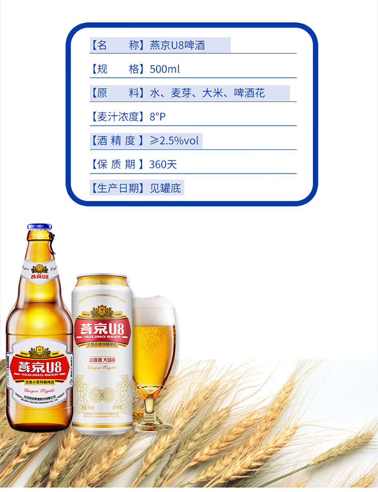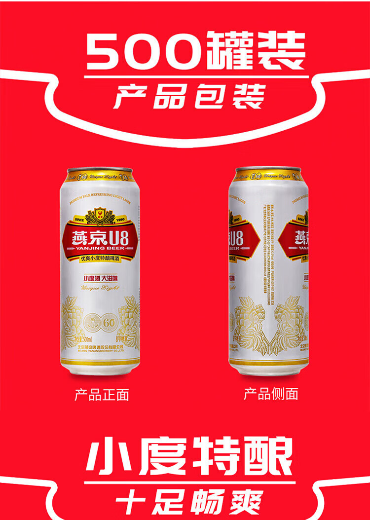 燕京燕京啤酒燕京U8小度酒 整箱量贩装送货上门 啤酒整箱批发 500mL 24罐