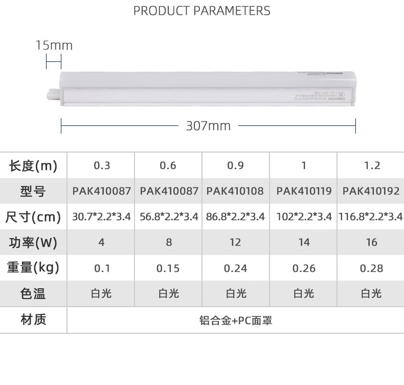 三雄极光丽致系列T5 LED一体化支架灯日光节能灯管全套三孔铝壳天花藏光灯 T5一体化1.2米 16W 6500K白光