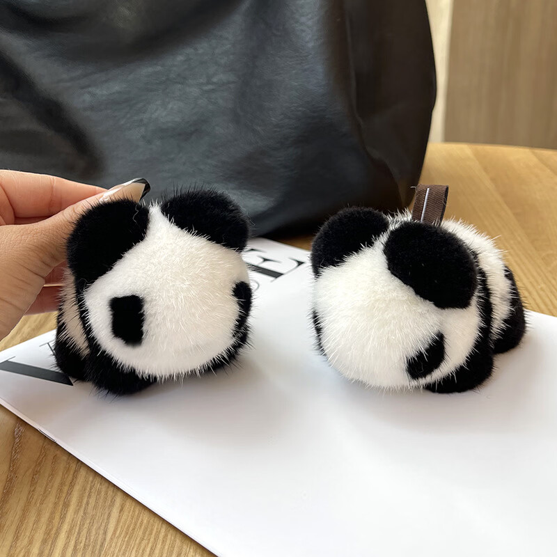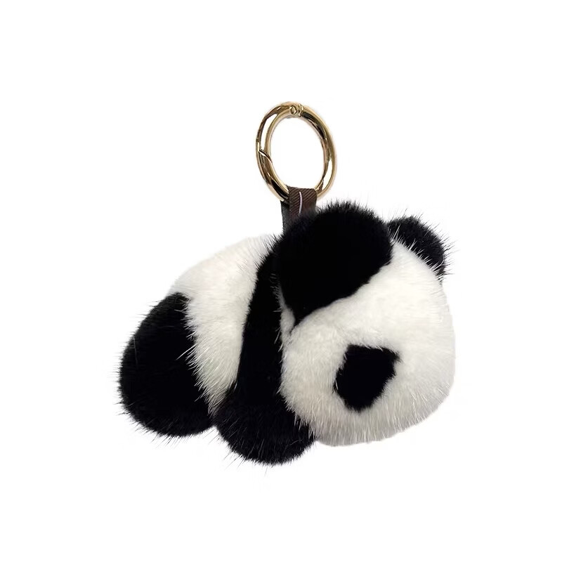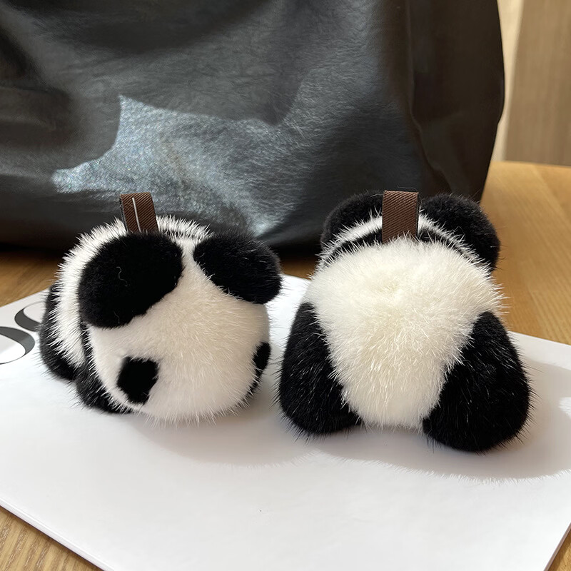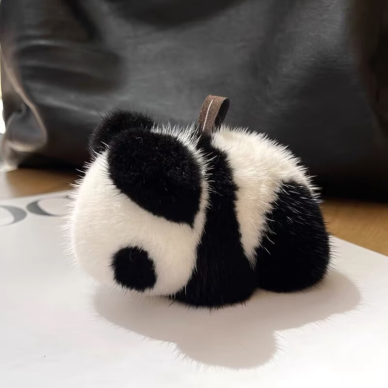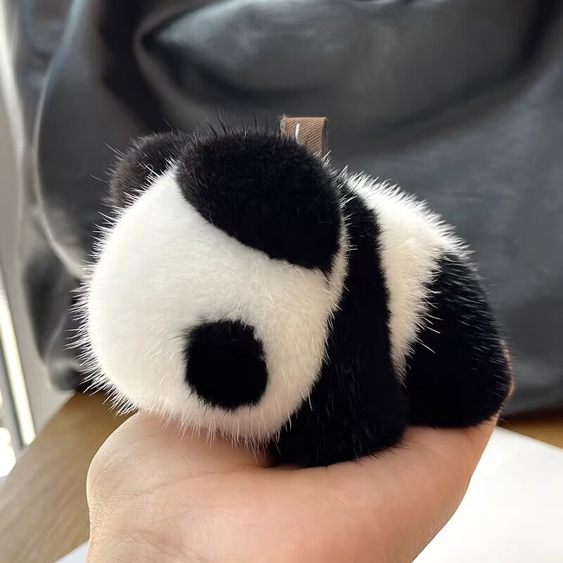 真水貂毛呆萌可爱小熊猫皮草包包挂件汽车钥匙扣挂饰毛绒小熊玩偶 熊猫色
