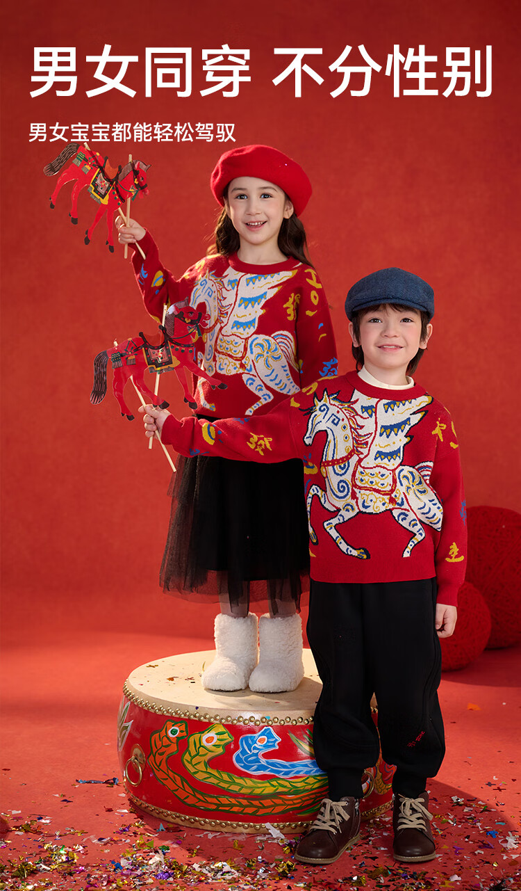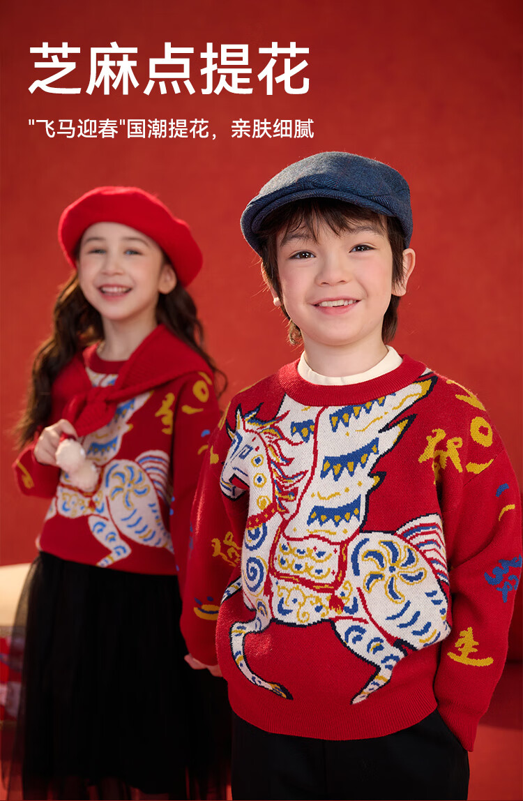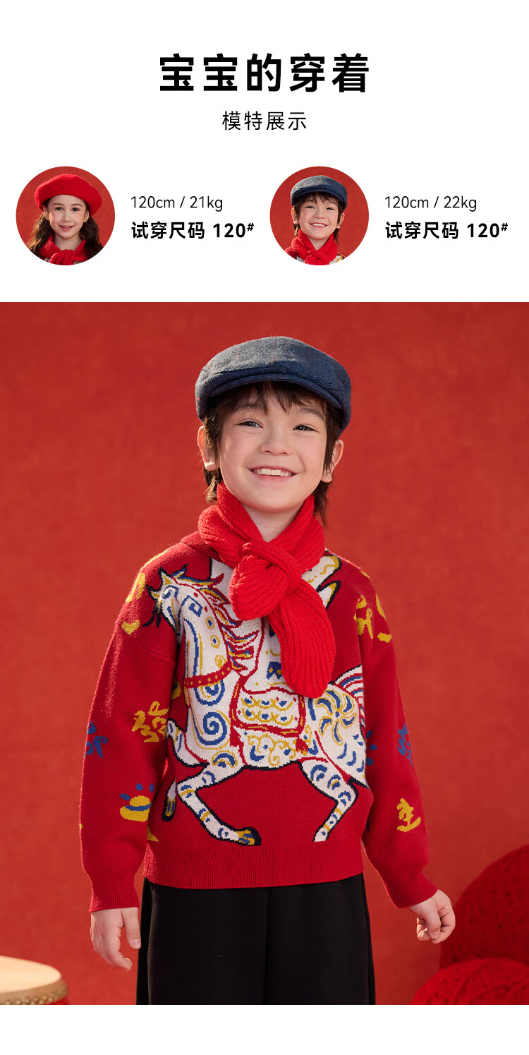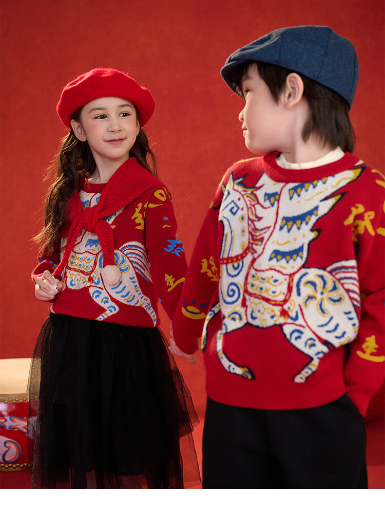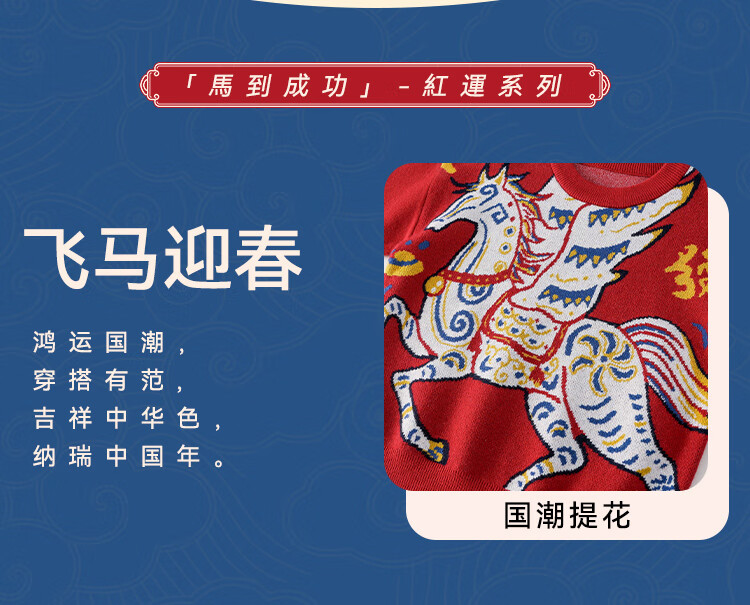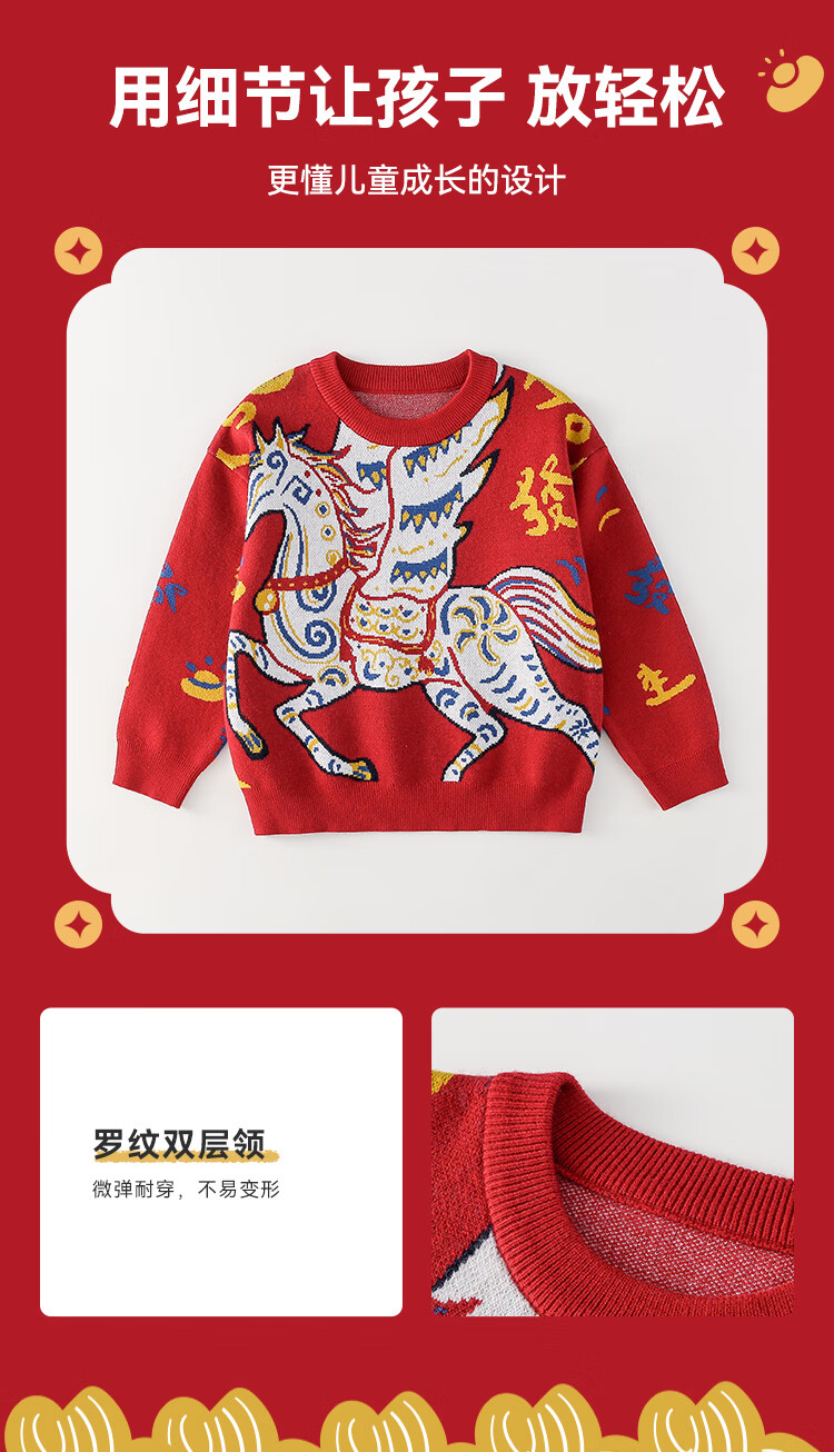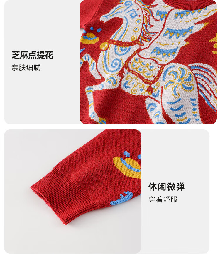 棉花堂(cottontown)棉花堂宝宝拜年服马年新年毛衣儿童过年衣服线衣男童童装女童衣服 飞马迎春-蓝边 140 140/68