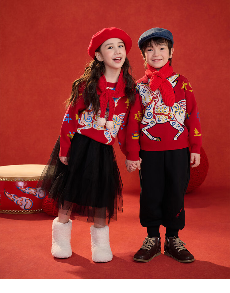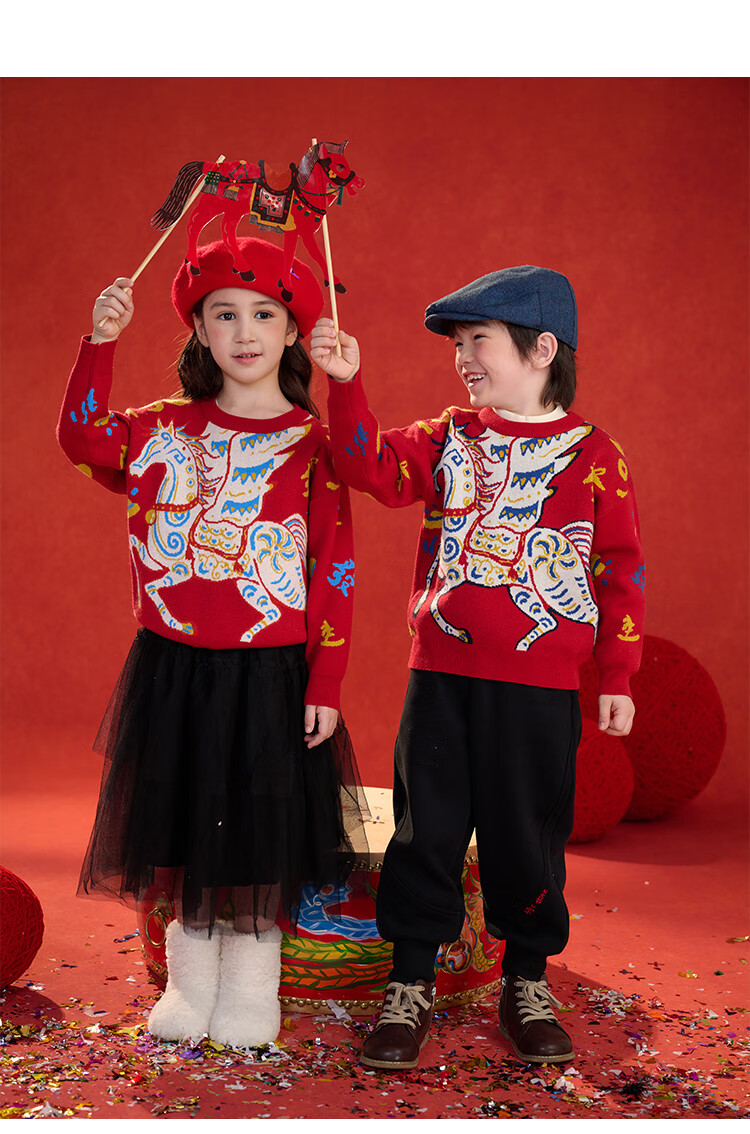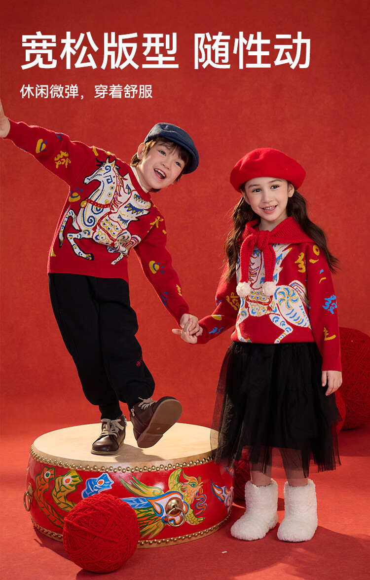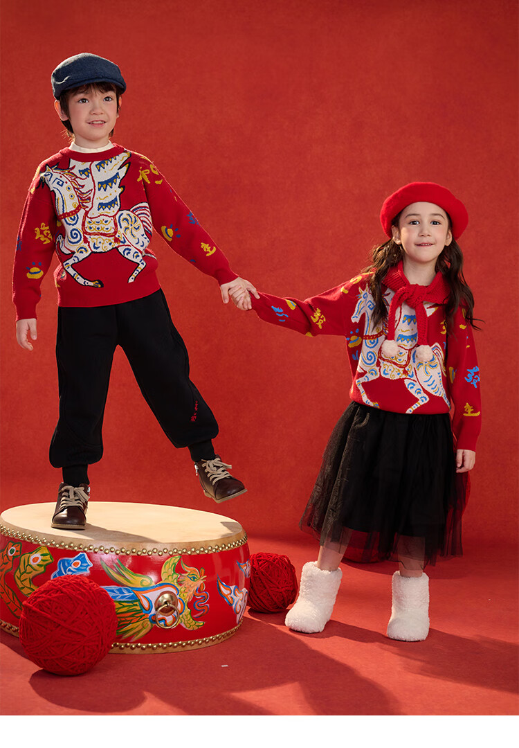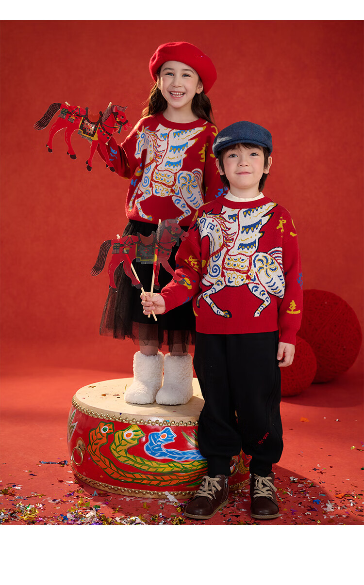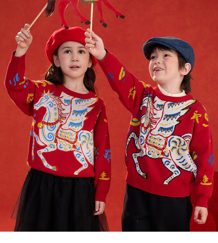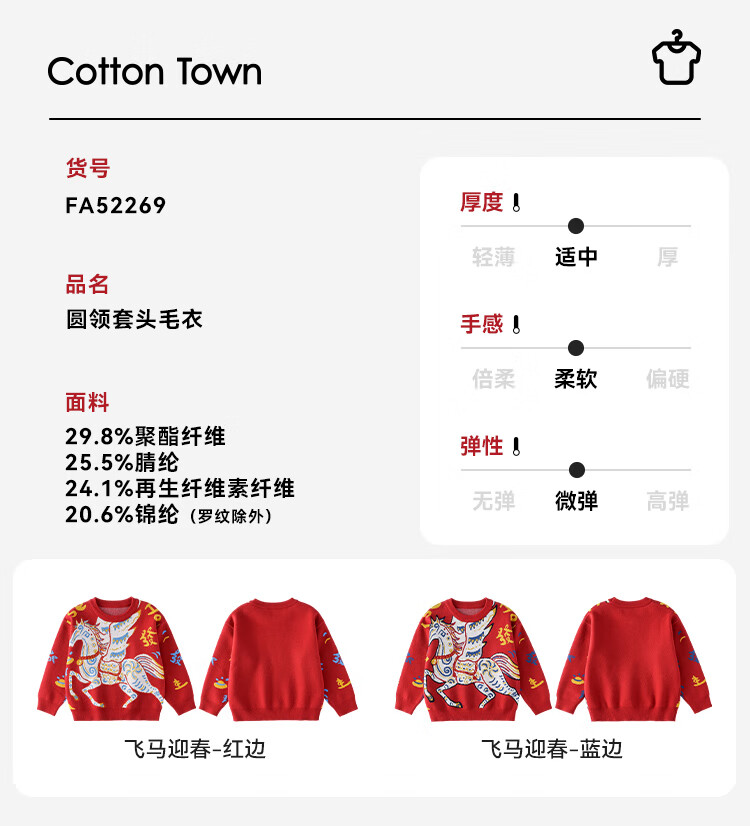 棉花堂(cottontown)棉花堂宝宝拜年服马年新年毛衣儿童过年衣服线衣男童童装女童衣服 飞马迎春-蓝边 140 140/68