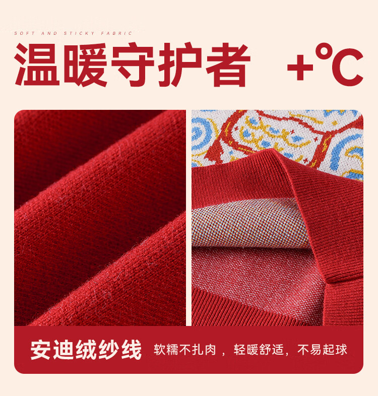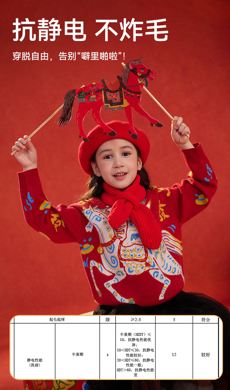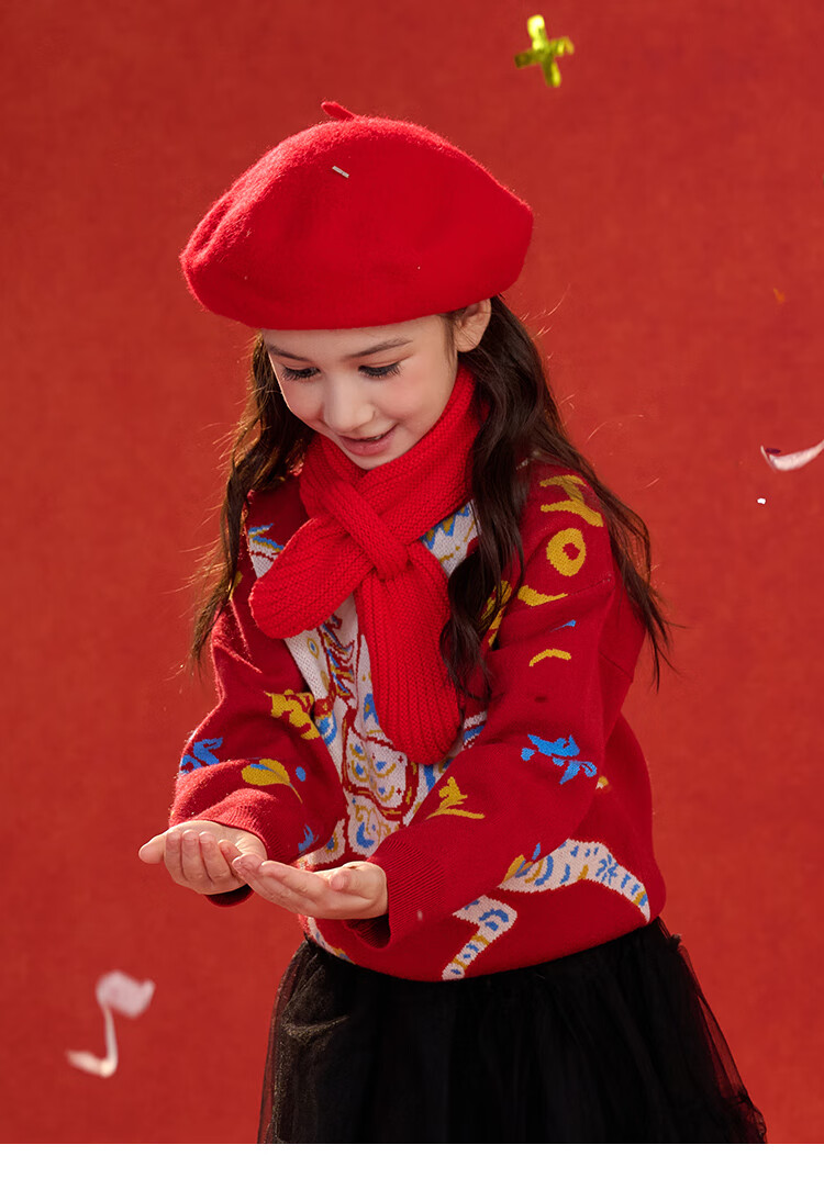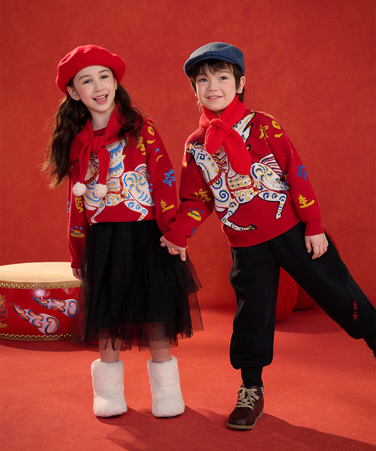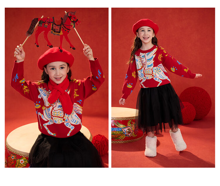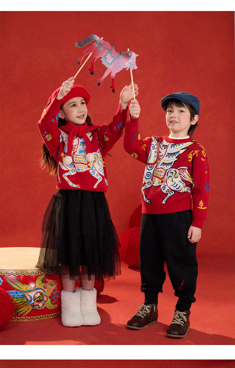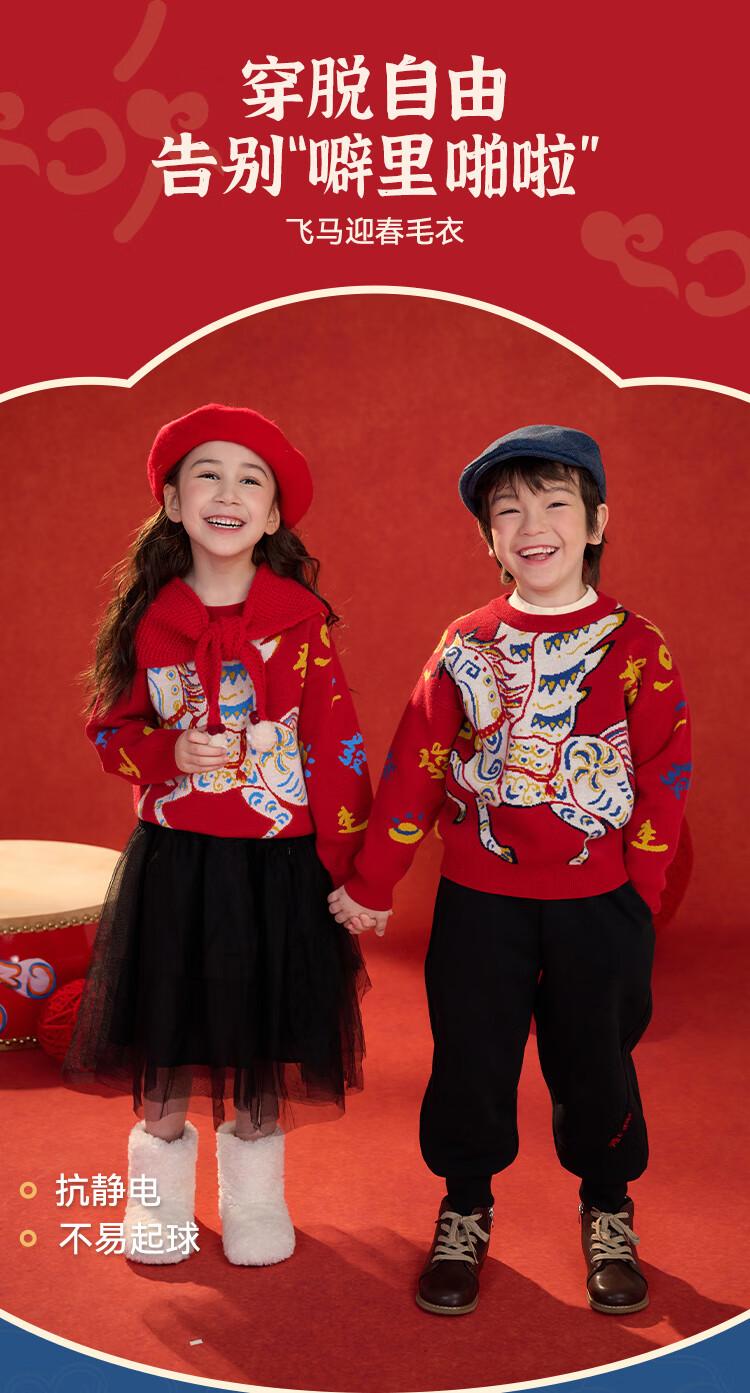 棉花堂(cottontown)棉花堂宝宝拜年服马年新年毛衣儿童过年衣服线衣男童童装女童衣服 飞马迎春-蓝边 140 140/68