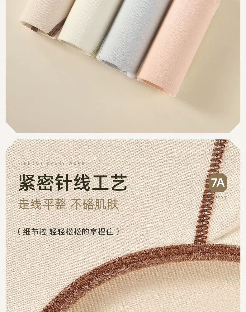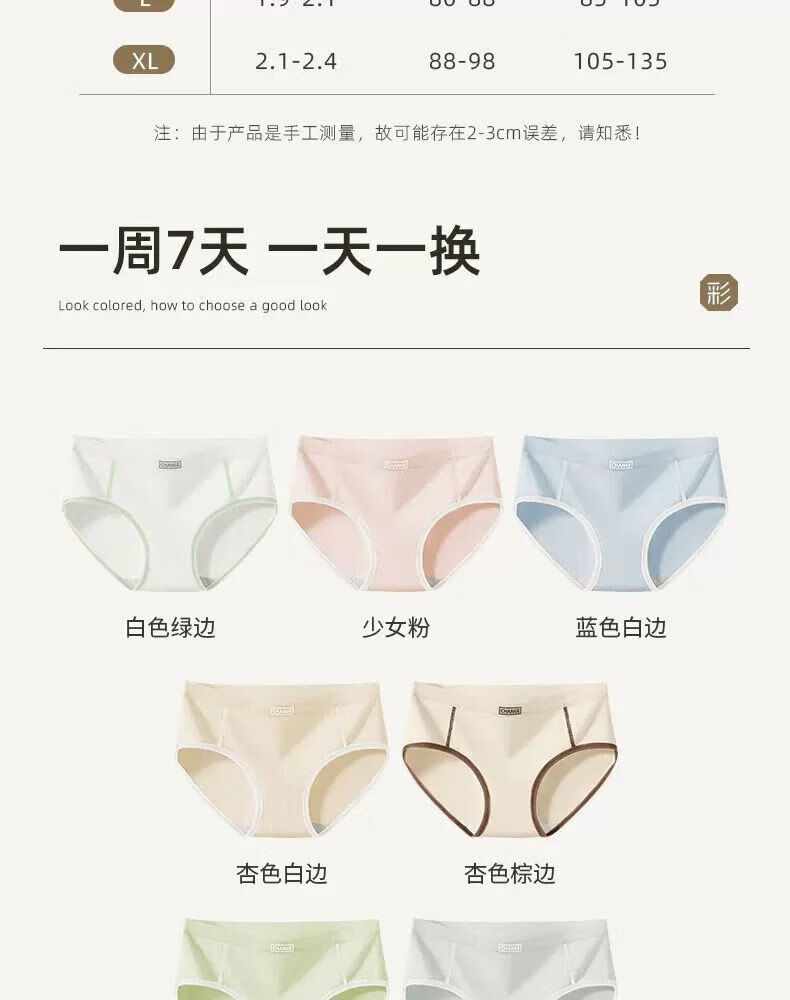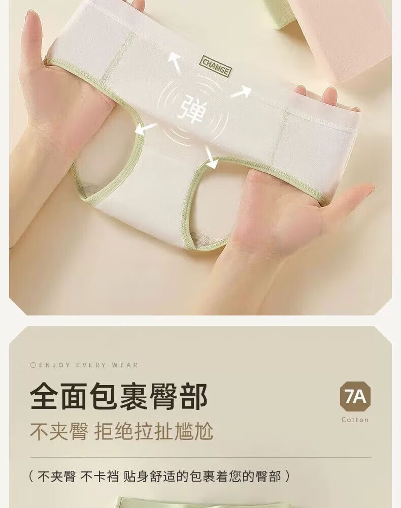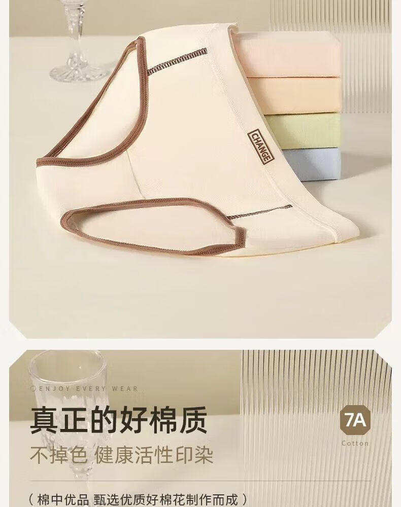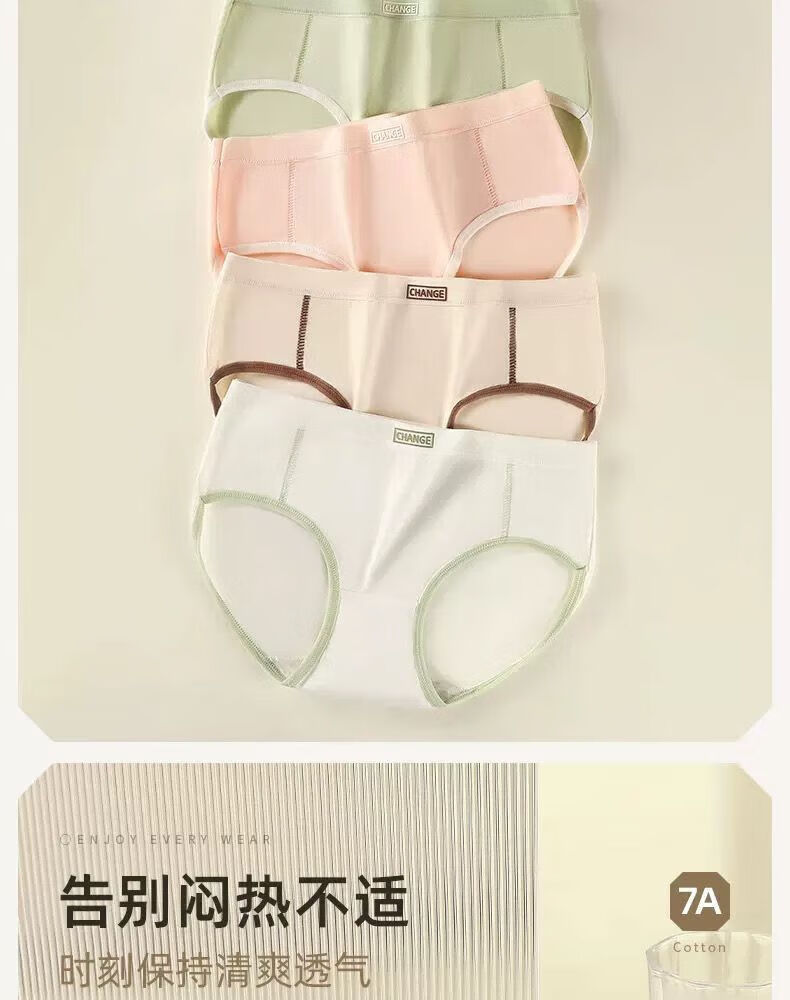 宜而爽婴儿棉内裤女士全棉裆中腰女生棉质无痕透气女生三角裤大码 2白色+2卡其+2蓝色+1灰色 7条 XL