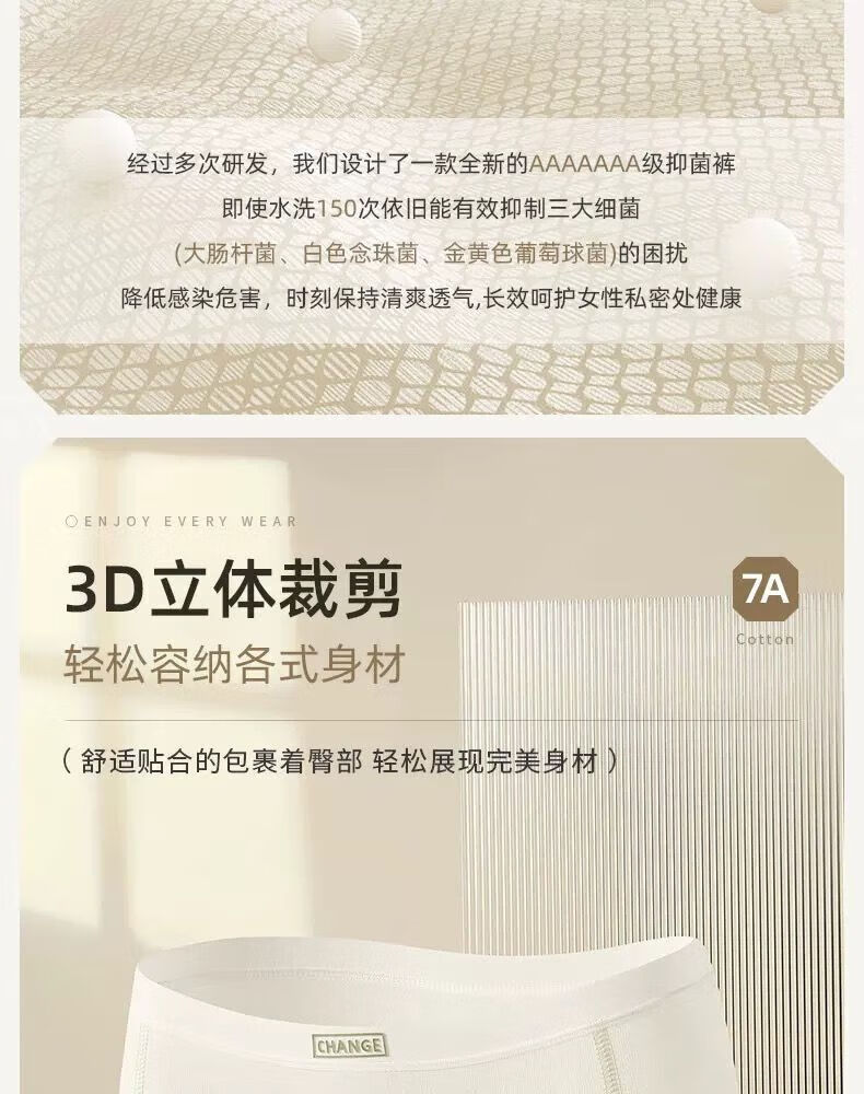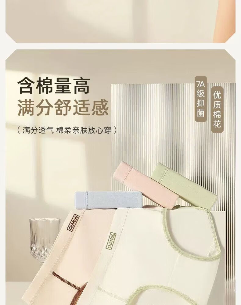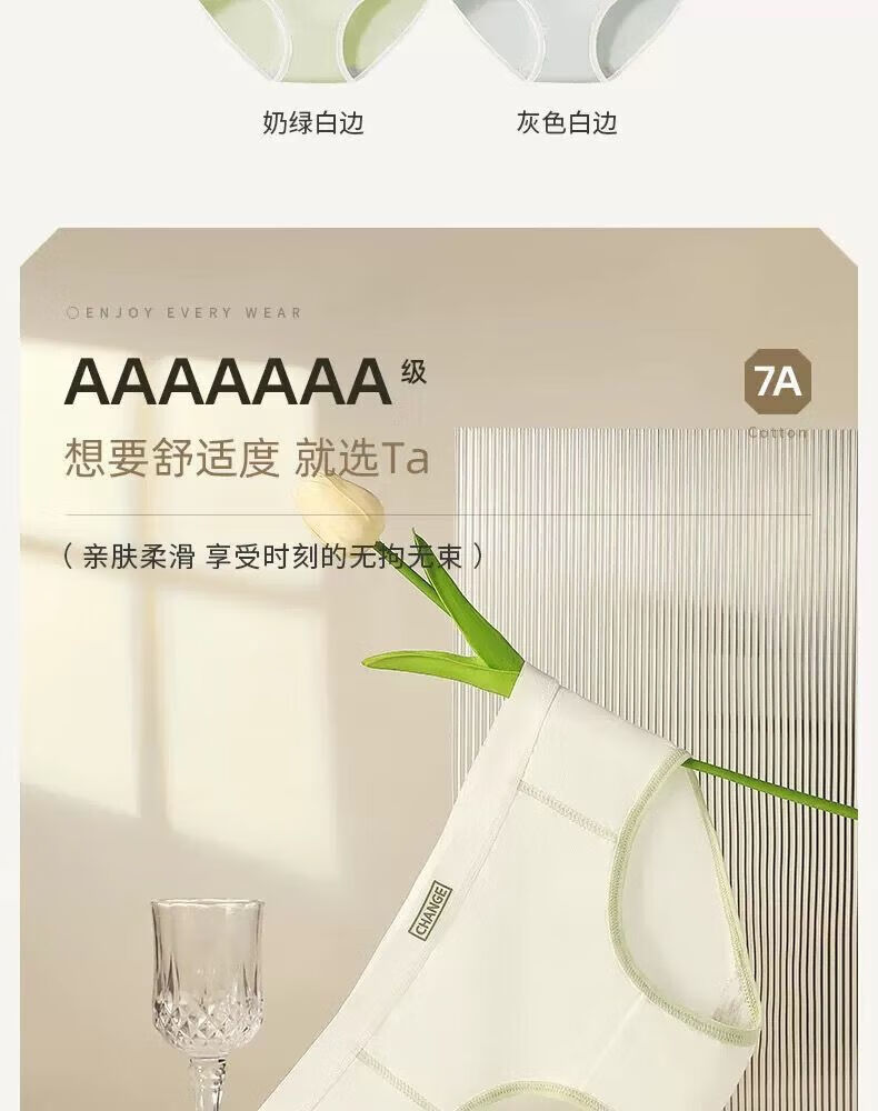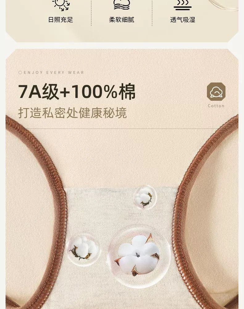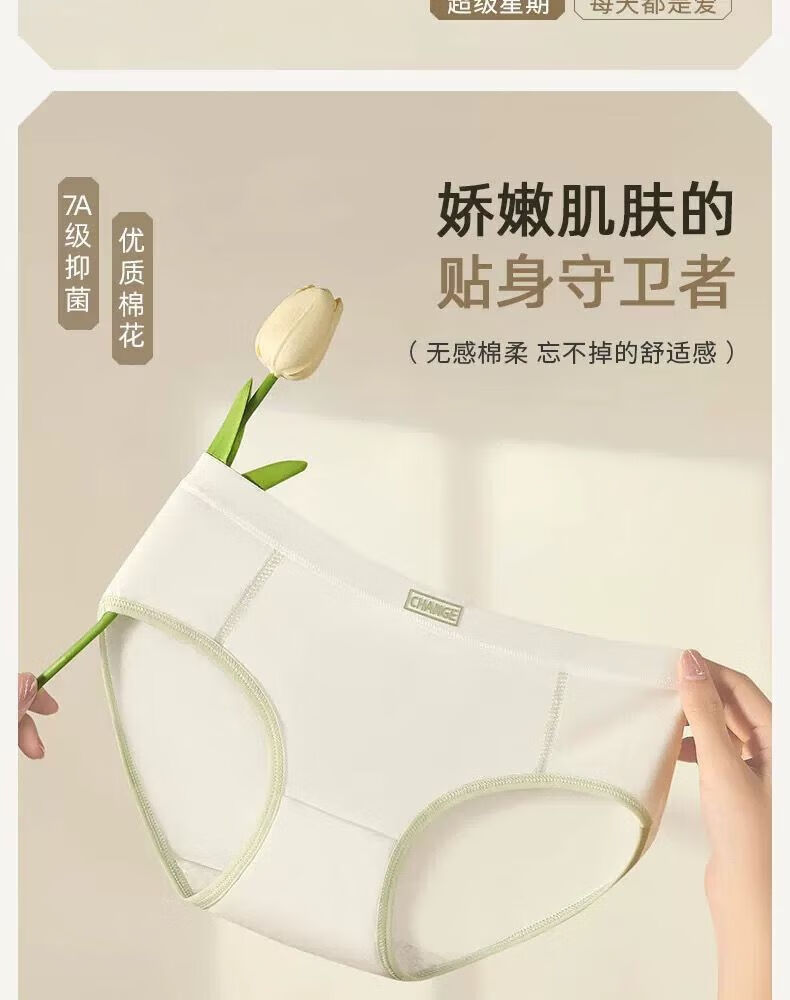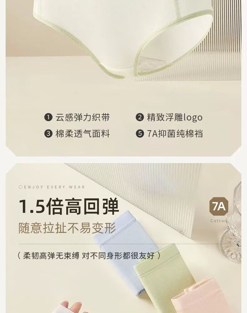 宜而爽婴儿棉内裤女士全棉裆中腰女生棉质无痕透气女生三角裤大码 2白色+2卡其+2蓝色+1灰色 7条 XL