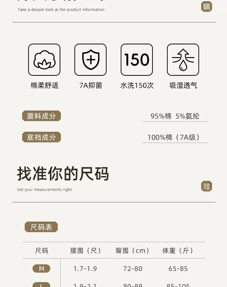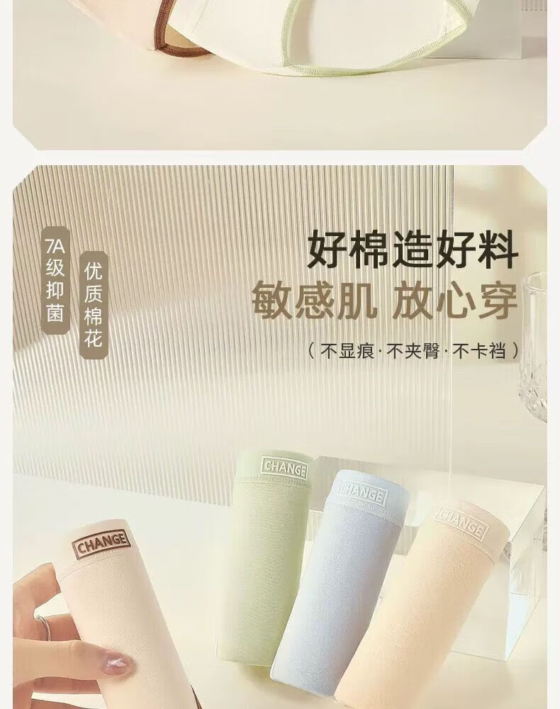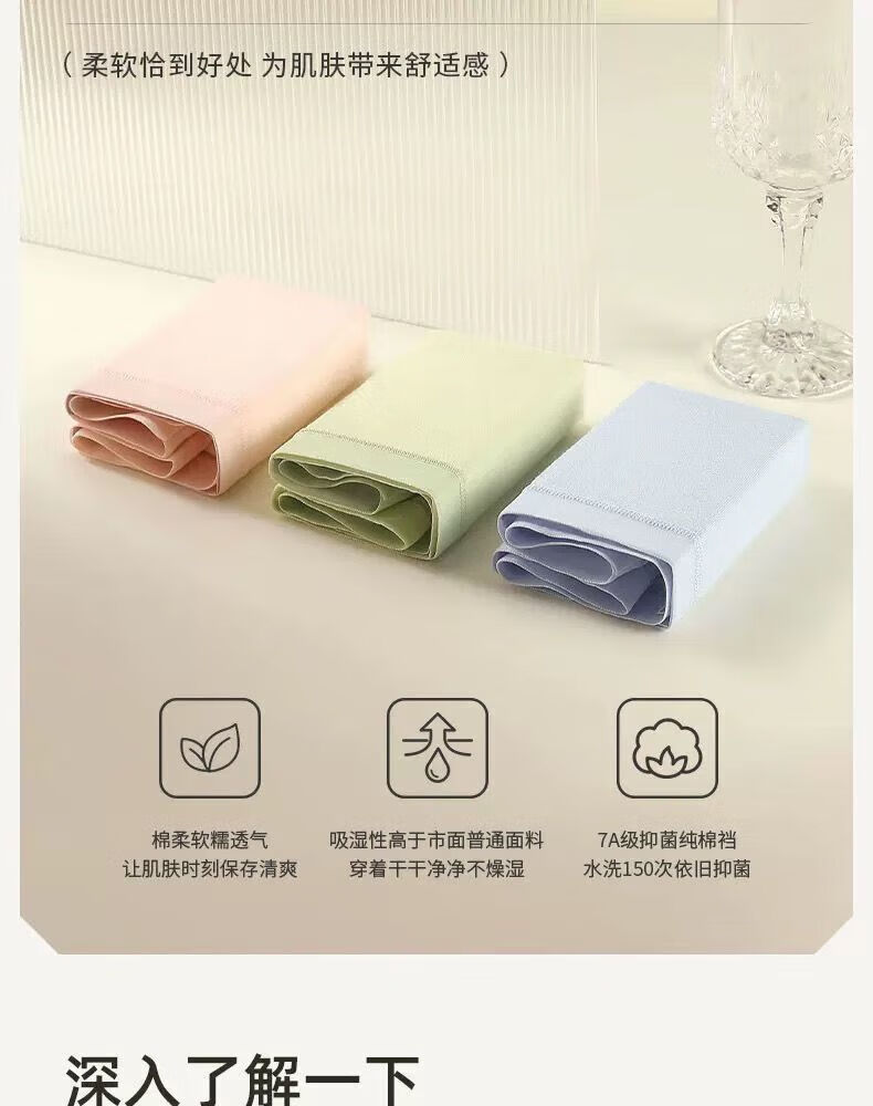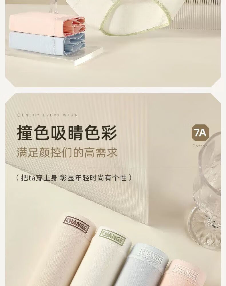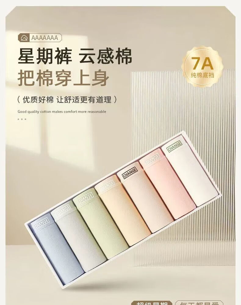 宜而爽婴儿棉内裤女士全棉裆中腰女生棉质无痕透气女生三角裤大码 2白色+2卡其+2蓝色+1灰色 7条 XL
