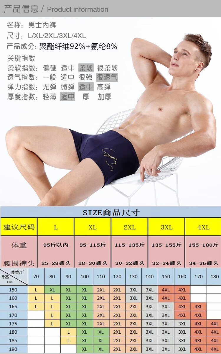 【现货现发】男士内裤亲肤本命年内裤有弹性内裤平角 4条 【 羽毛款】 2XL 110-130斤