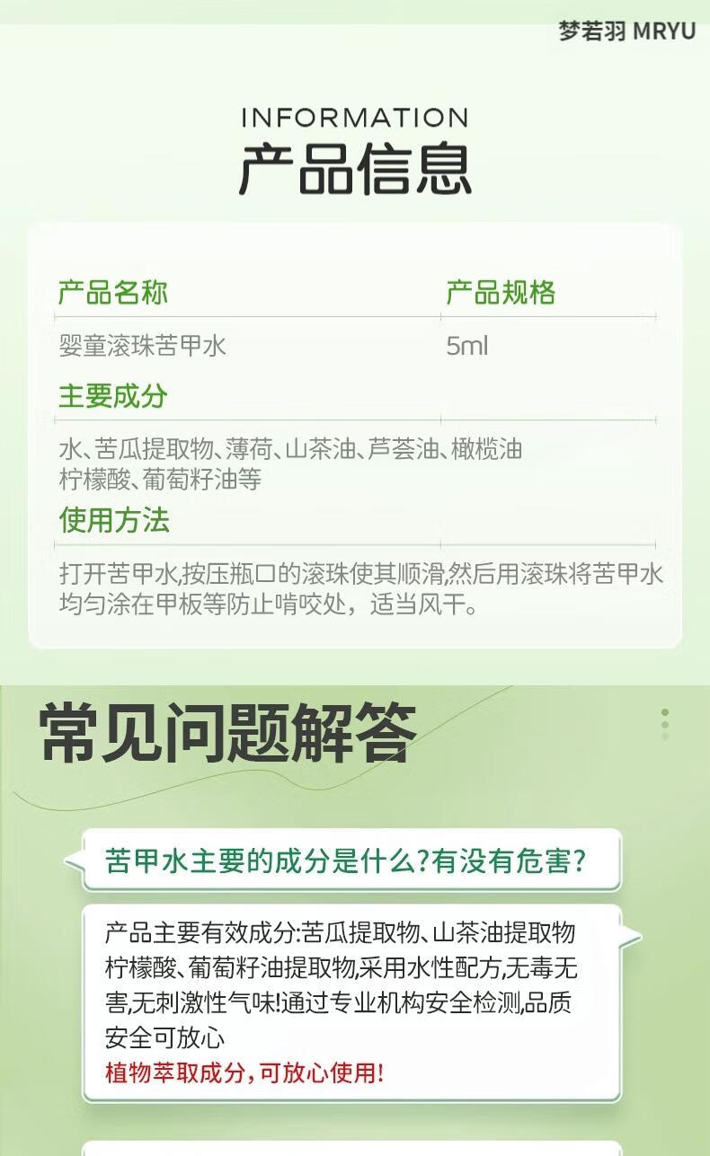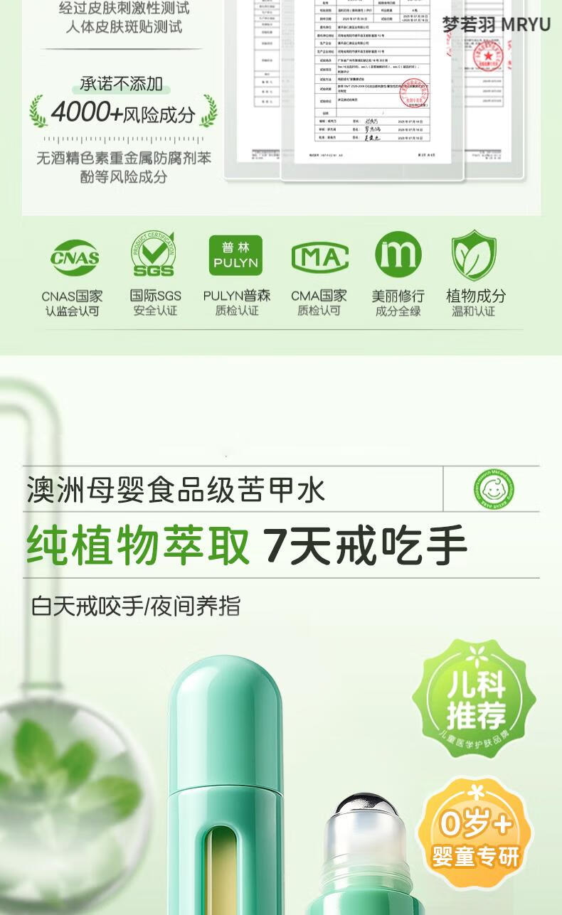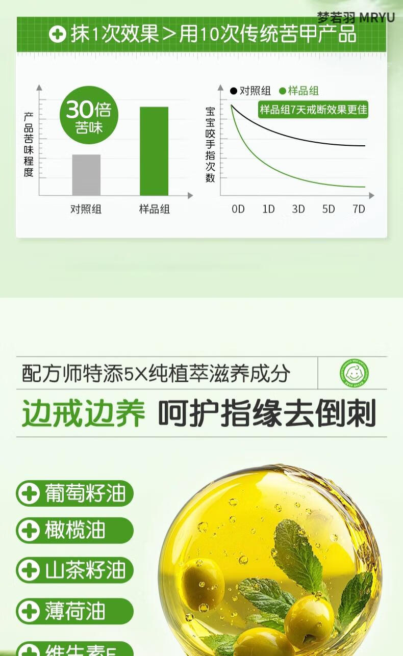 MRYU苦甲水儿童戒奶婴儿咬指甲中大童断奶孩子防止戒吃手神器洗不掉 【第2支半价】98%宝妈澳洲婴童专研配方