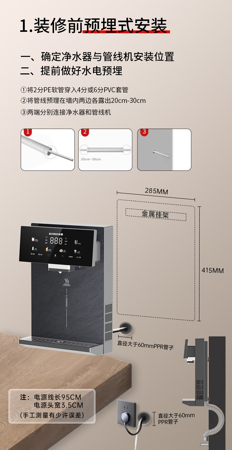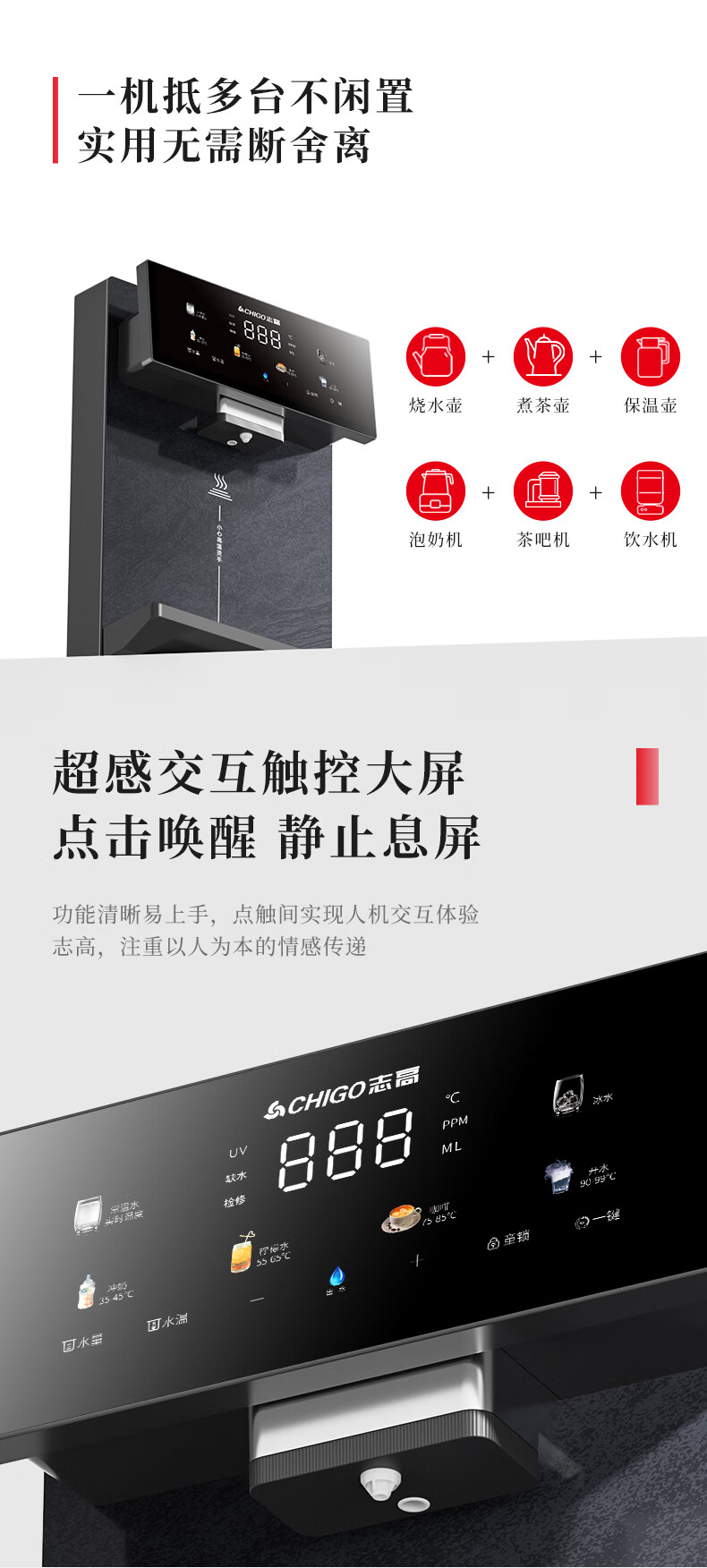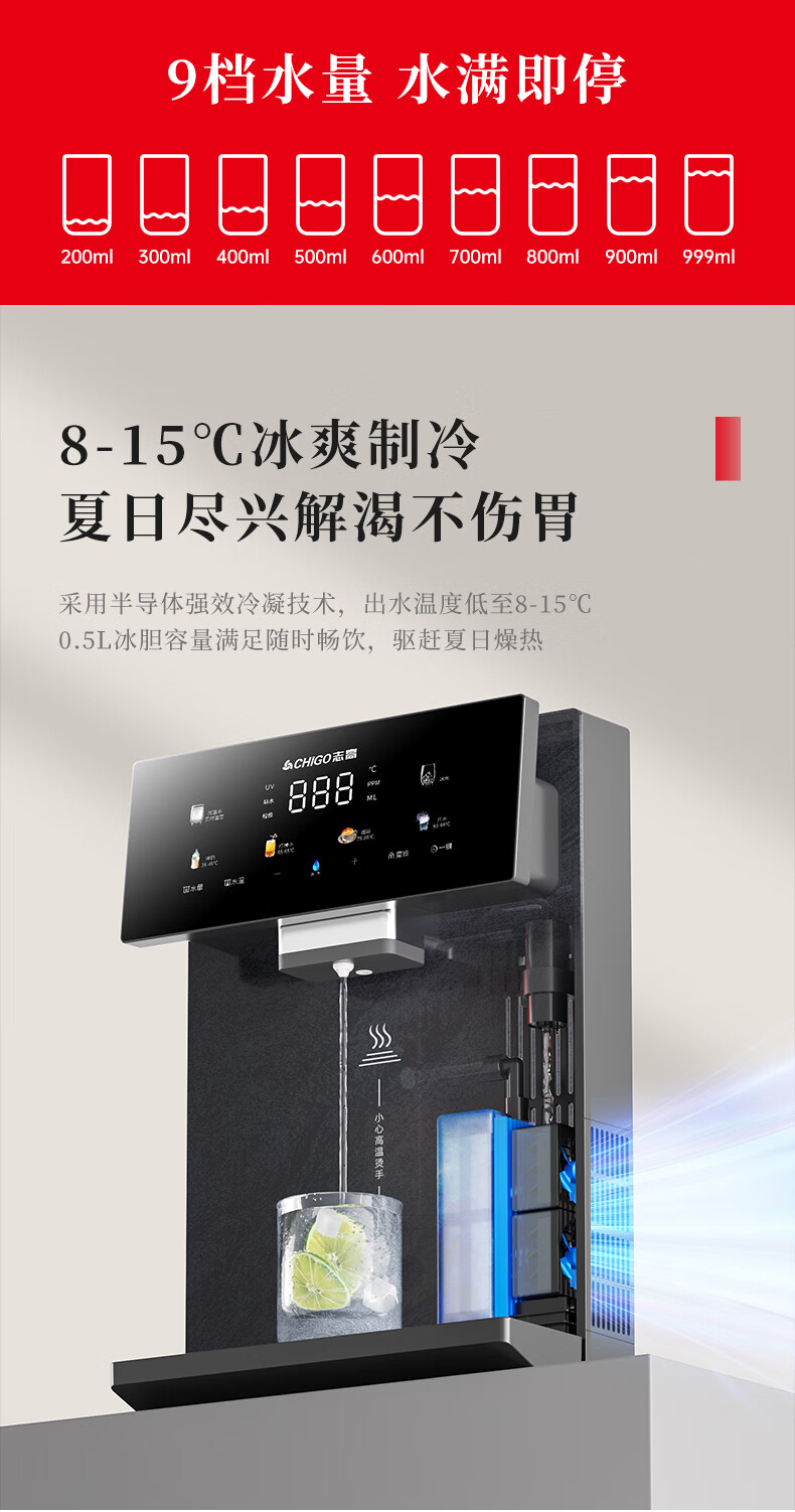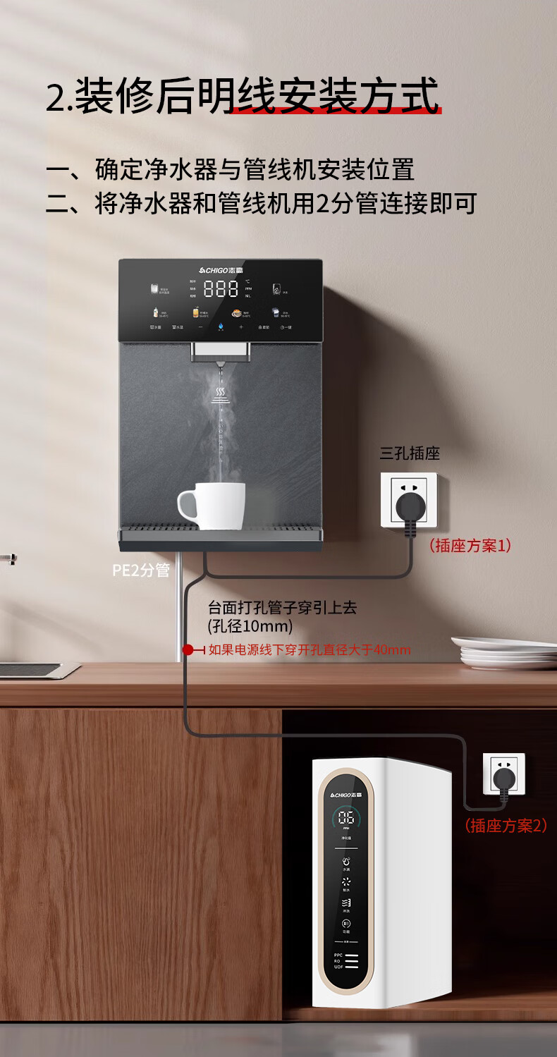 志高(CHIGO)【官方直营】管线机壁挂式制冷制热一体可吸桶装水 电子制冷 UV抑菌 冷热管线机需搭配净水器-星空灰(视频安装)
