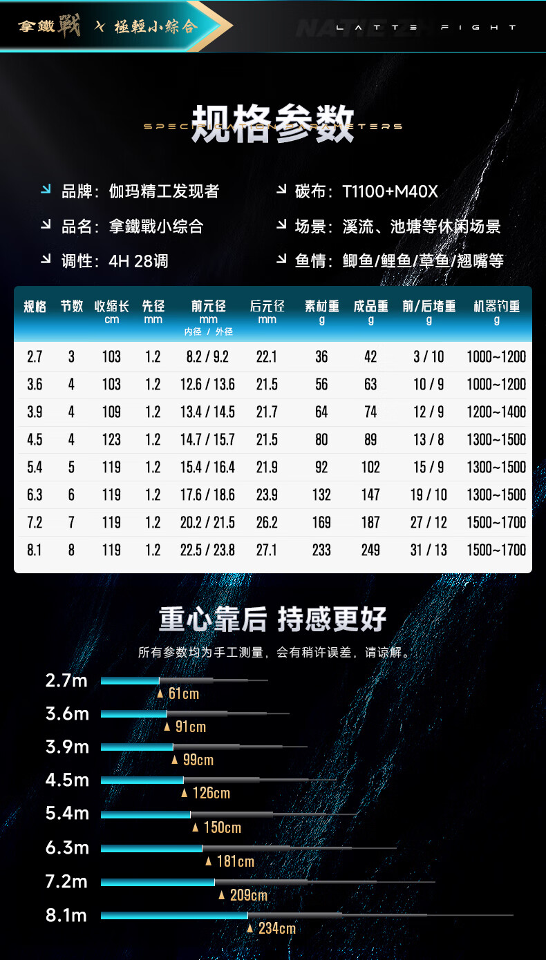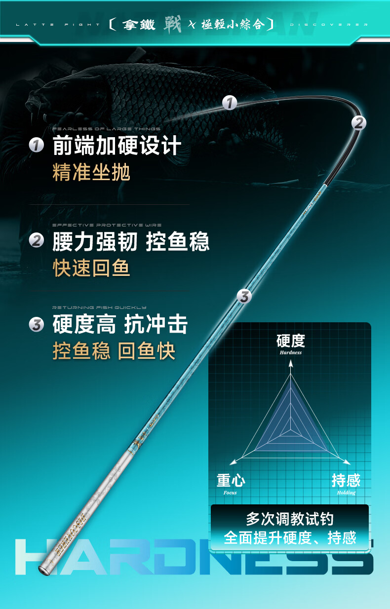 伽玛拿铁战小综合鱼竿手竿4H轻量野钓大物台钓竿碳素28调鲫鱼杆渔具 6.3m 【4H28调性-野钓综合湖库】