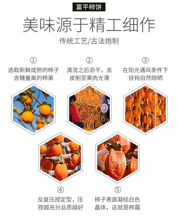 金百粟陕西富平柿饼 吊霜柿子饼吊饼流心柿饼年货礼盒 净重2斤小孩果【软糯香甜】冷冻储存