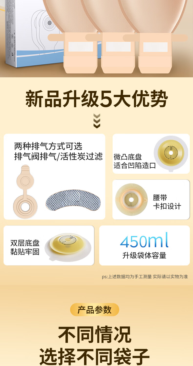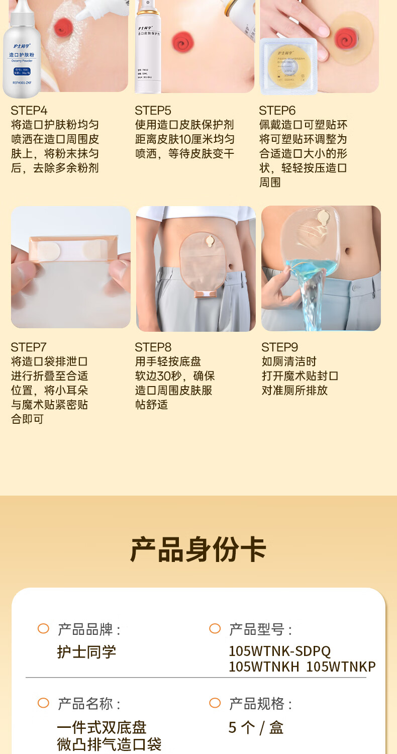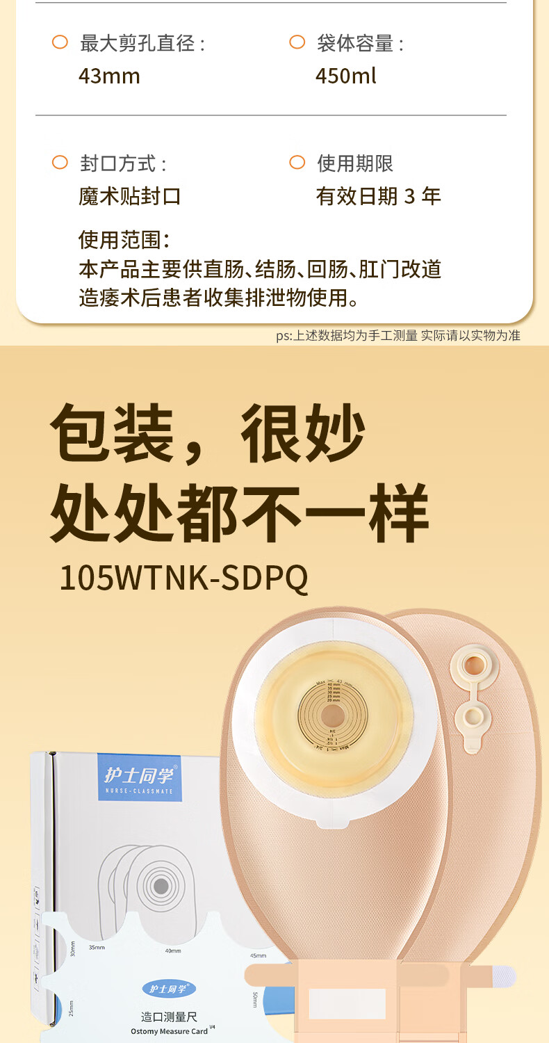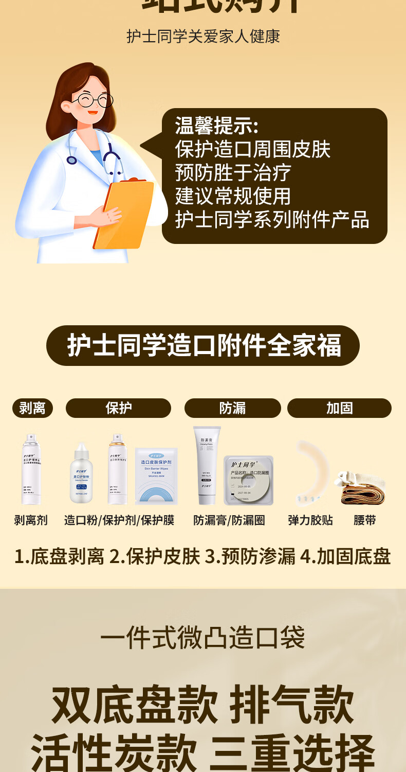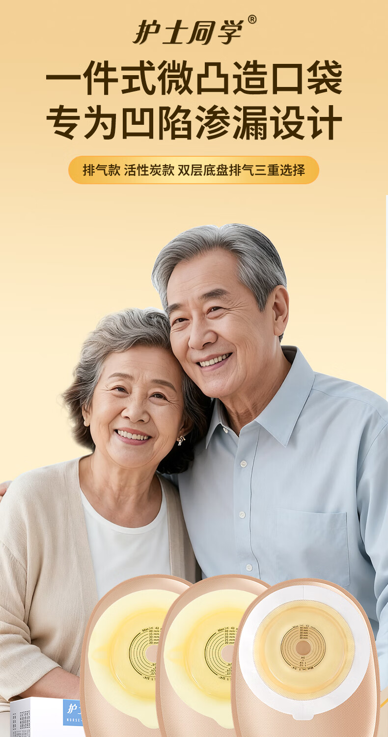 护士同学一件式微凸造口袋15202微凸底盘一次性造瘘袋凹陷防渗漏肠癌16415 1秒排气款【10片装】43MM微凸底盘+送棉签