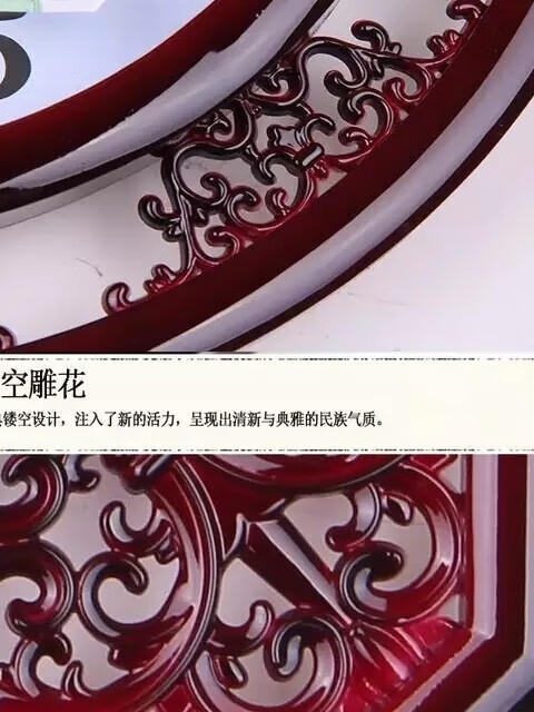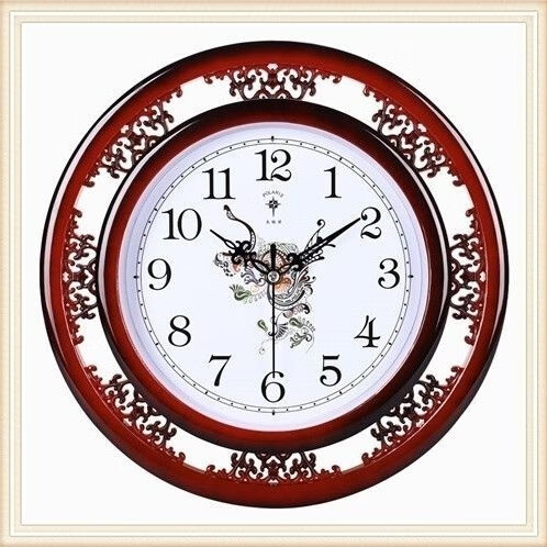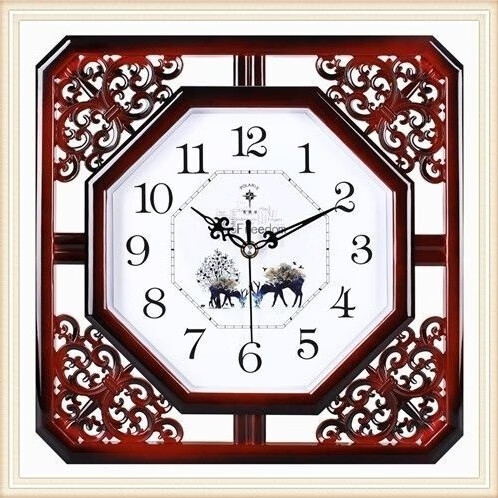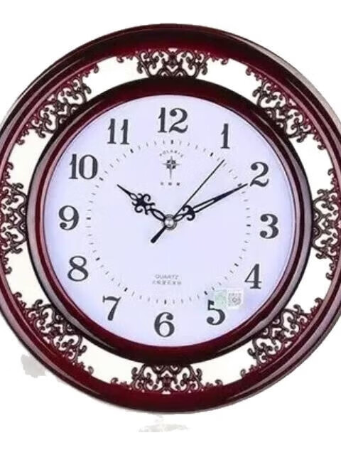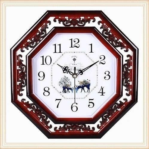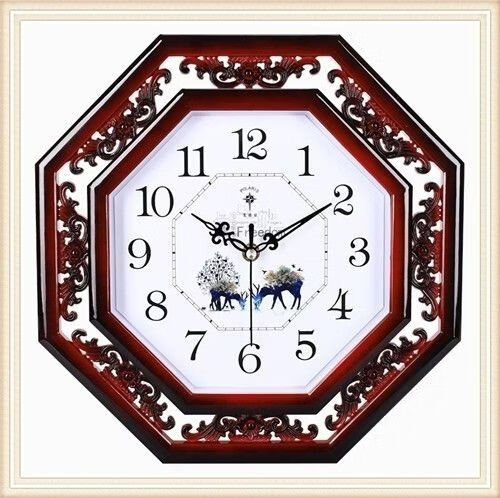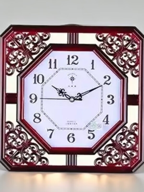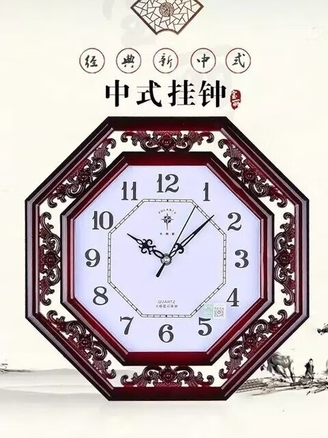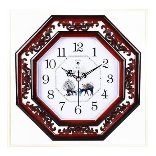 北极星(POLARIS)北极星家用书房格栅雕花英钟表新中式客厅挂钟简约创意石英钟表 古红 八角形 直径33厘米