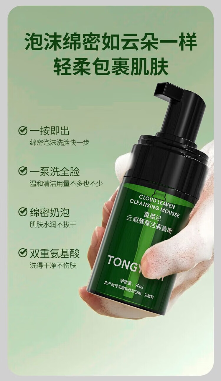 童颜纪氨基酸泡沫洗面奶洁面乳慕斯清洁毛孔男女士学生 2瓶
