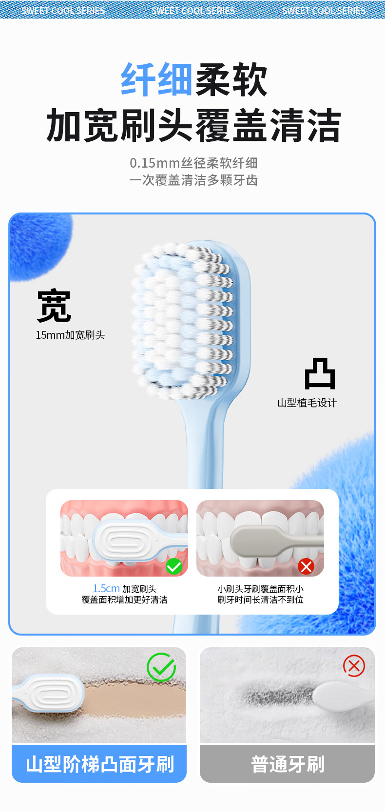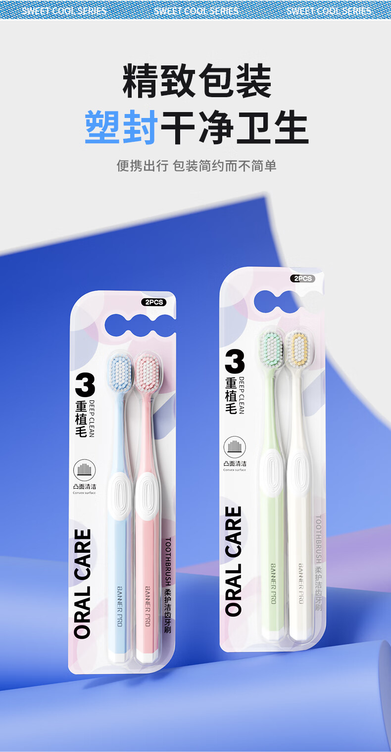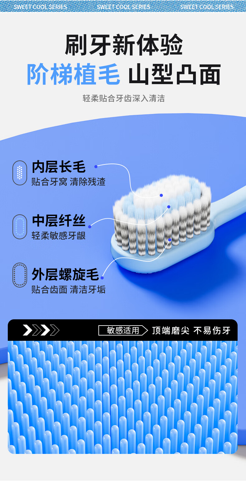 伊诺齿成人软毛凸面牙刷情侣款宽头软毛牙刷男女士通用山型刷头三重植毛 成人软毛图牙刷【3盒】 6支