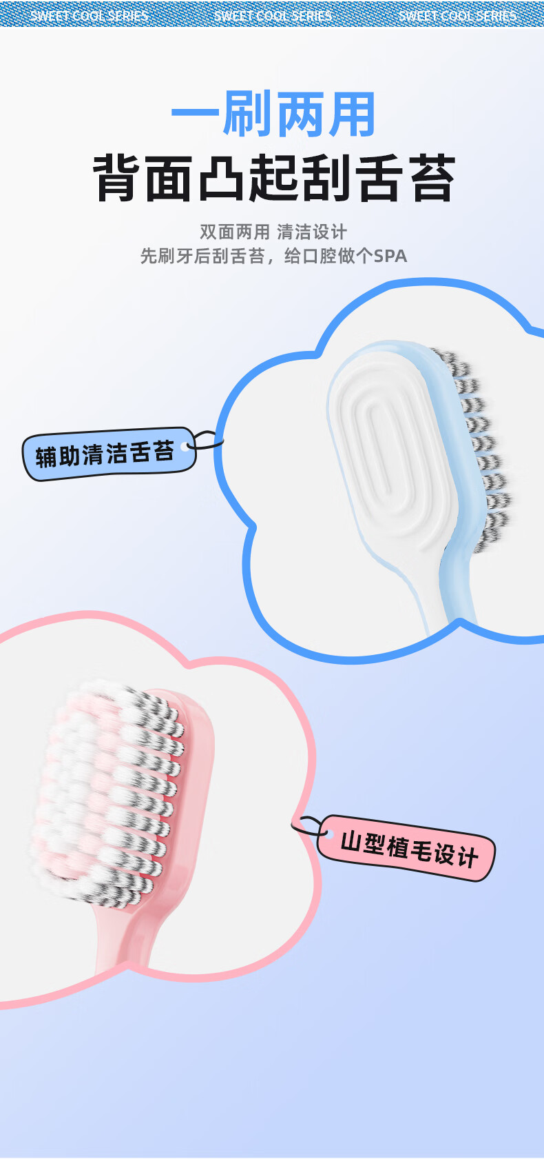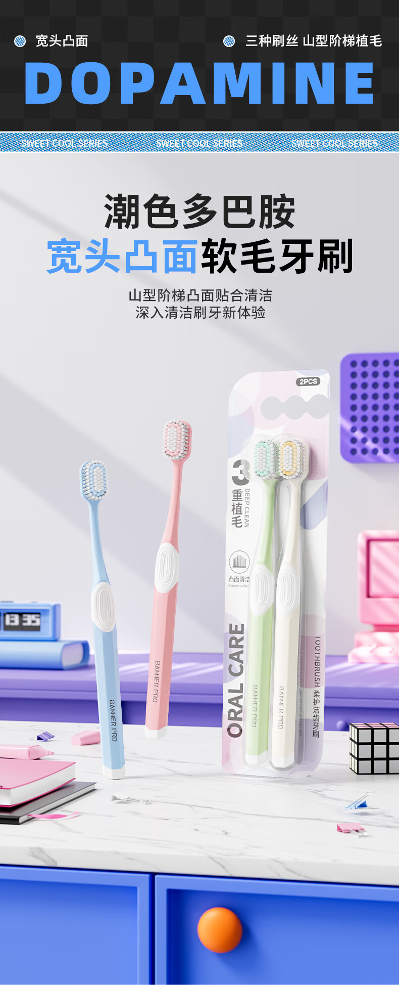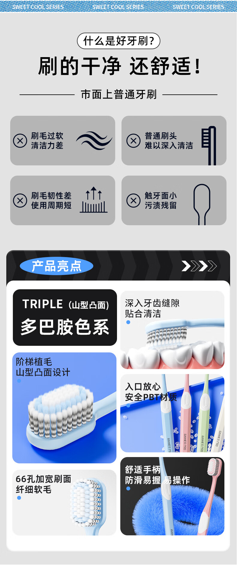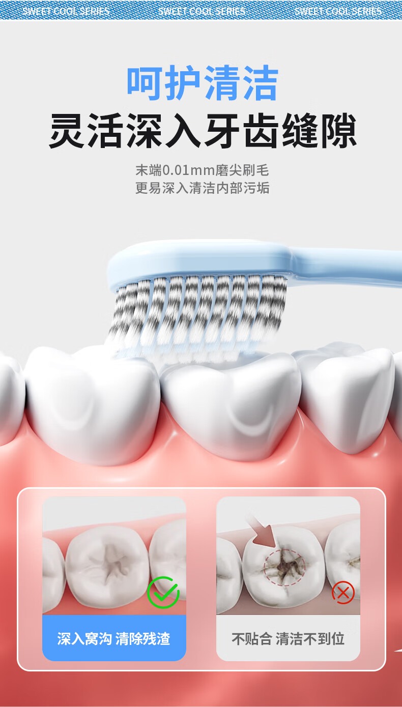 伊诺齿成人软毛凸面牙刷情侣款宽头软毛牙刷男女士通用山型刷头三重植毛 成人软毛图牙刷【3盒】 6支