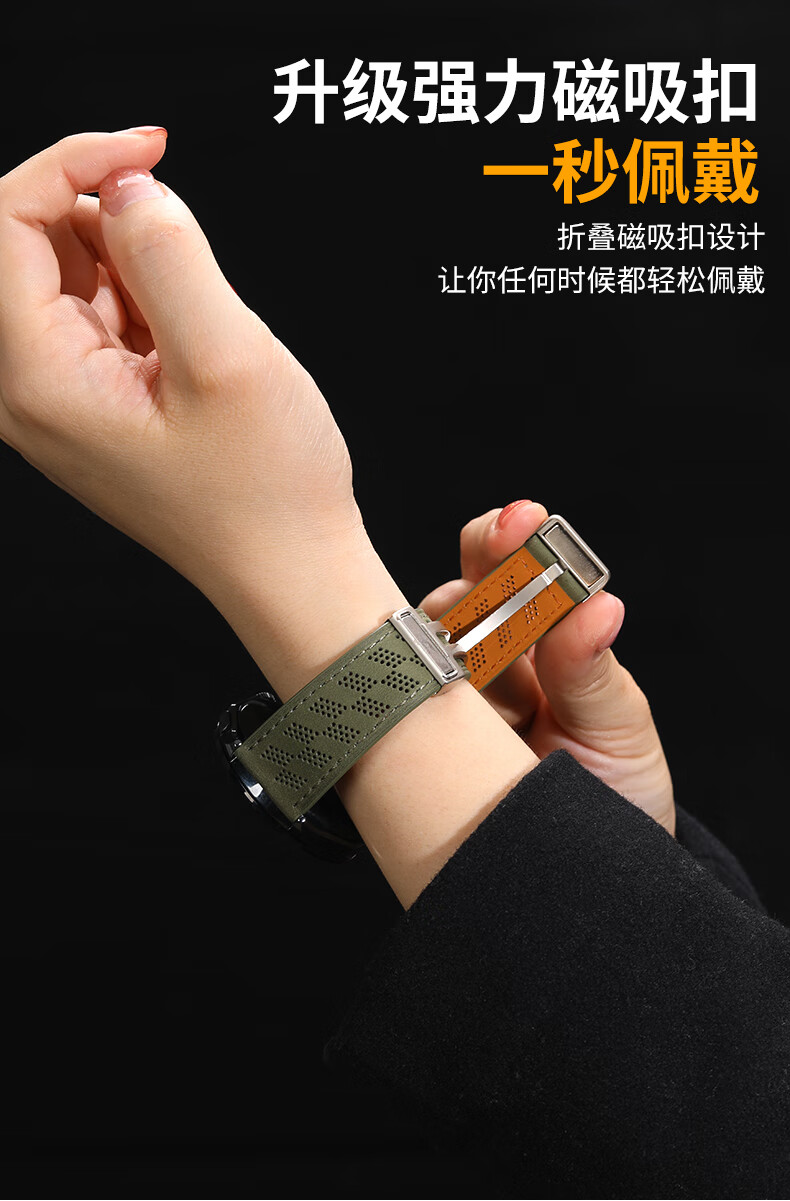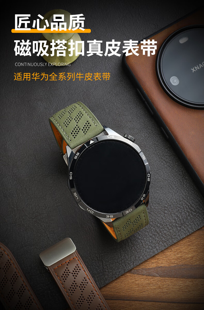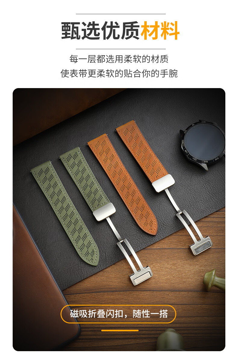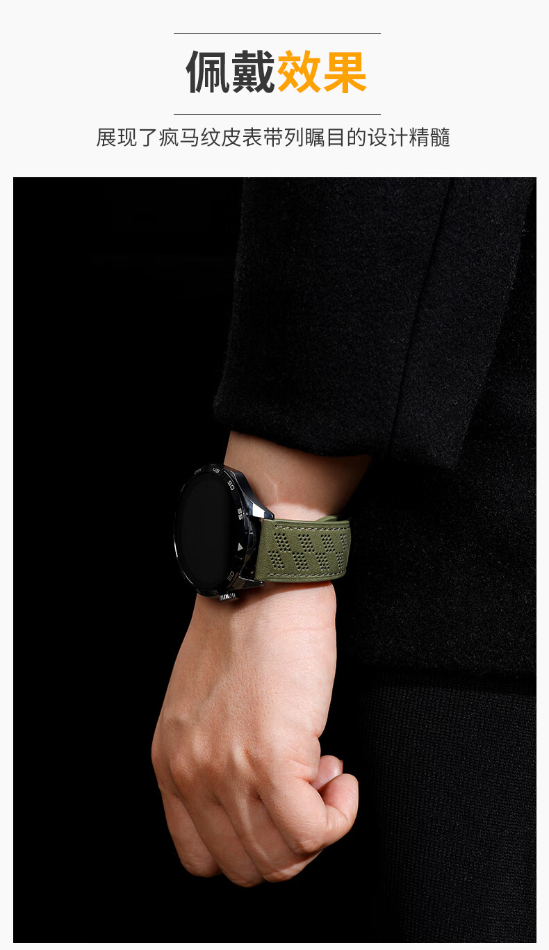 LIAVNAS适配华为手表GT6表带watch5/GT5/GT4/watch4pro双面真皮微孔透气磁吸表带gt3/gt2/pro/buds 46表盘 微孔-透气-疯马绿色 GT/Watch/pro系列46表盘(宽22mm)