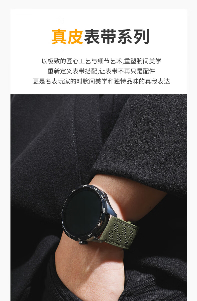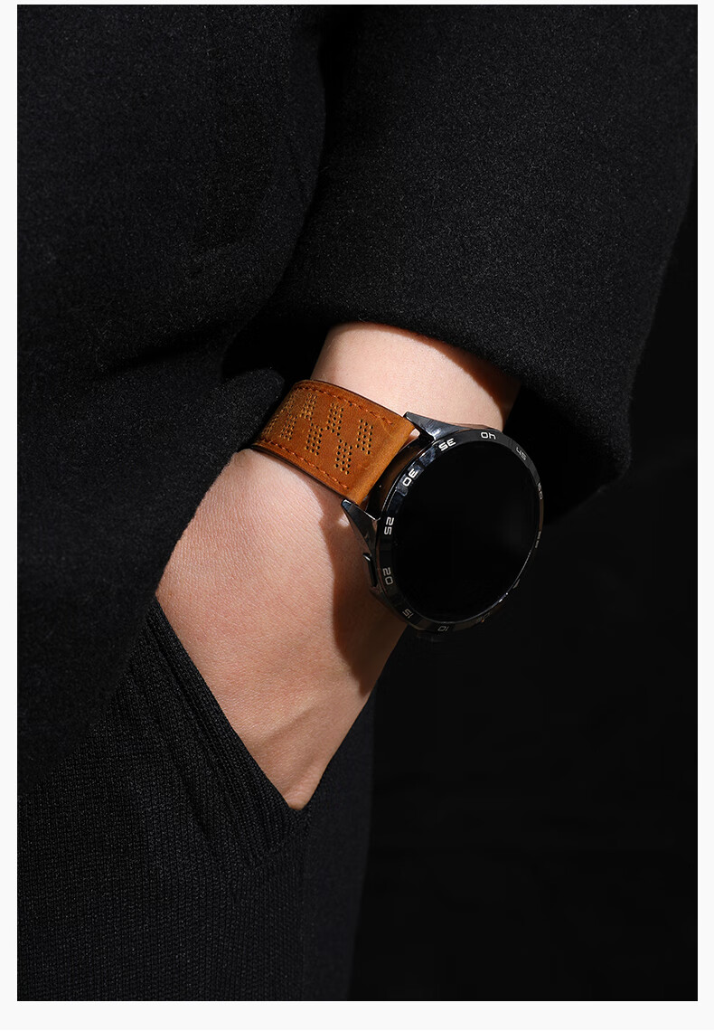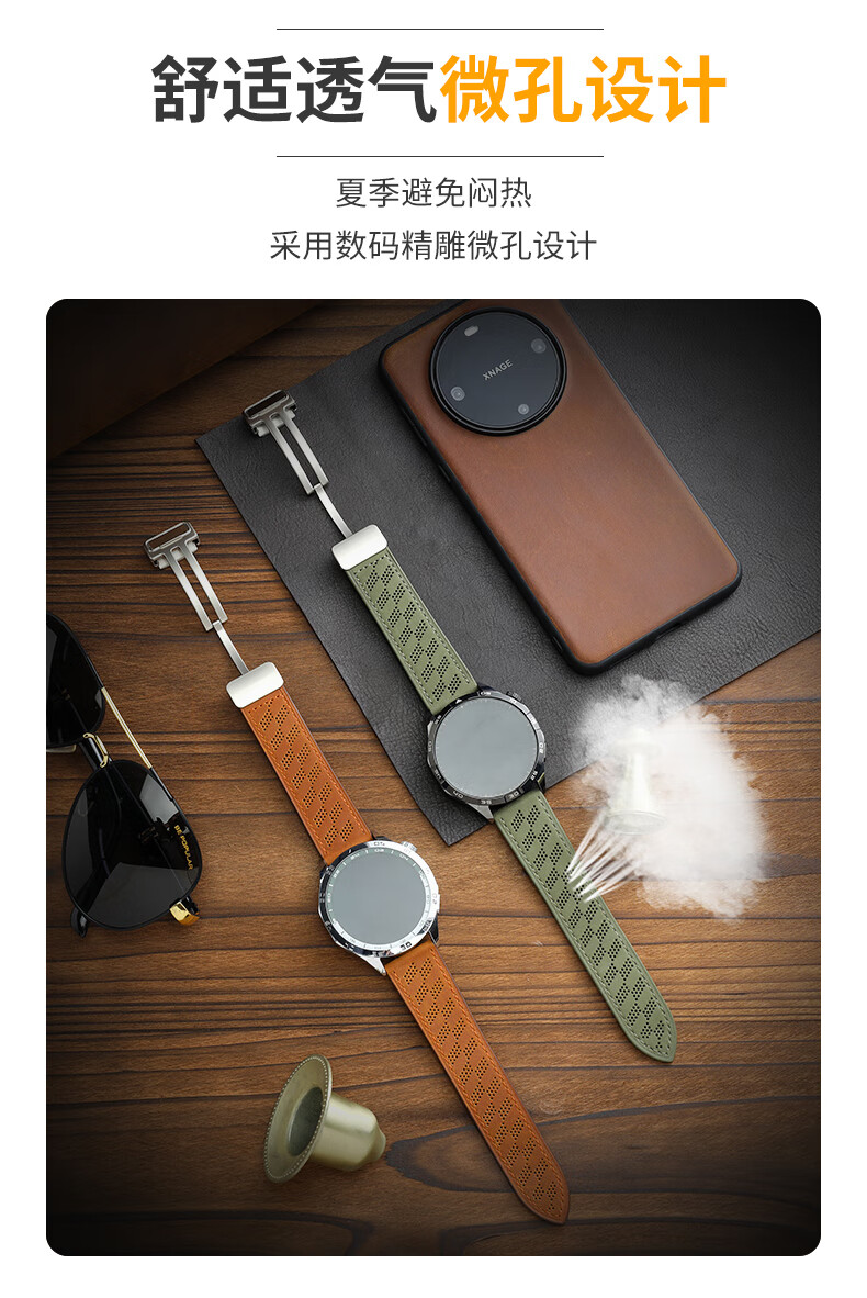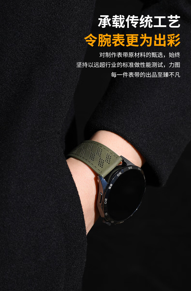 LIAVNAS适配华为手表GT6表带watch5/GT5/GT4/watch4pro双面真皮微孔透气磁吸表带gt3/gt2/pro/buds 46表盘 微孔-透气-疯马绿色 GT/Watch/pro系列46表盘(宽22mm)