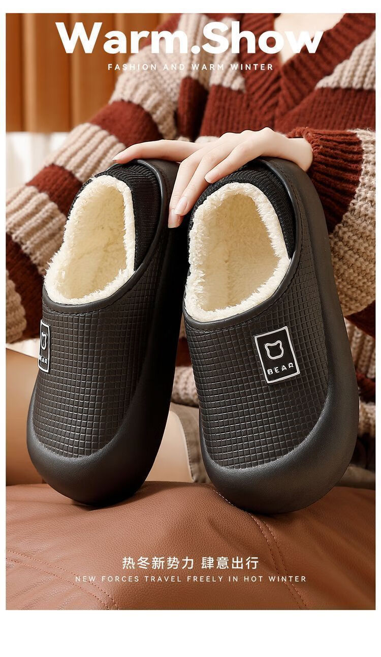 买一送一防水棉拖鞋女冬季包跟2024新款防滑室内家居保暖棉鞋男士 粉色+粉色【加绒保暖实惠两 36 -37+38-39