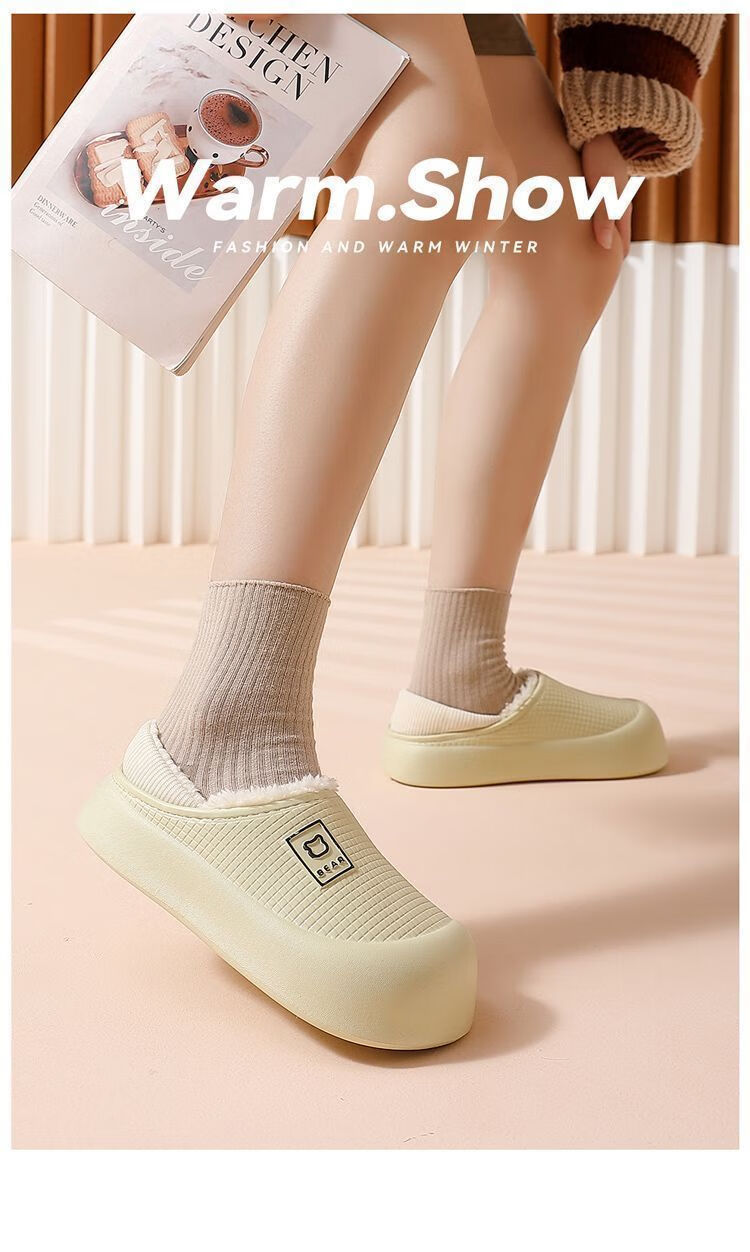 FZT包跟棉拖鞋女2025秋冬新款防滑防臭室内家居简约毛绒绒棉鞋男外穿 粉色 38-39 适合37-38【内长235mm】