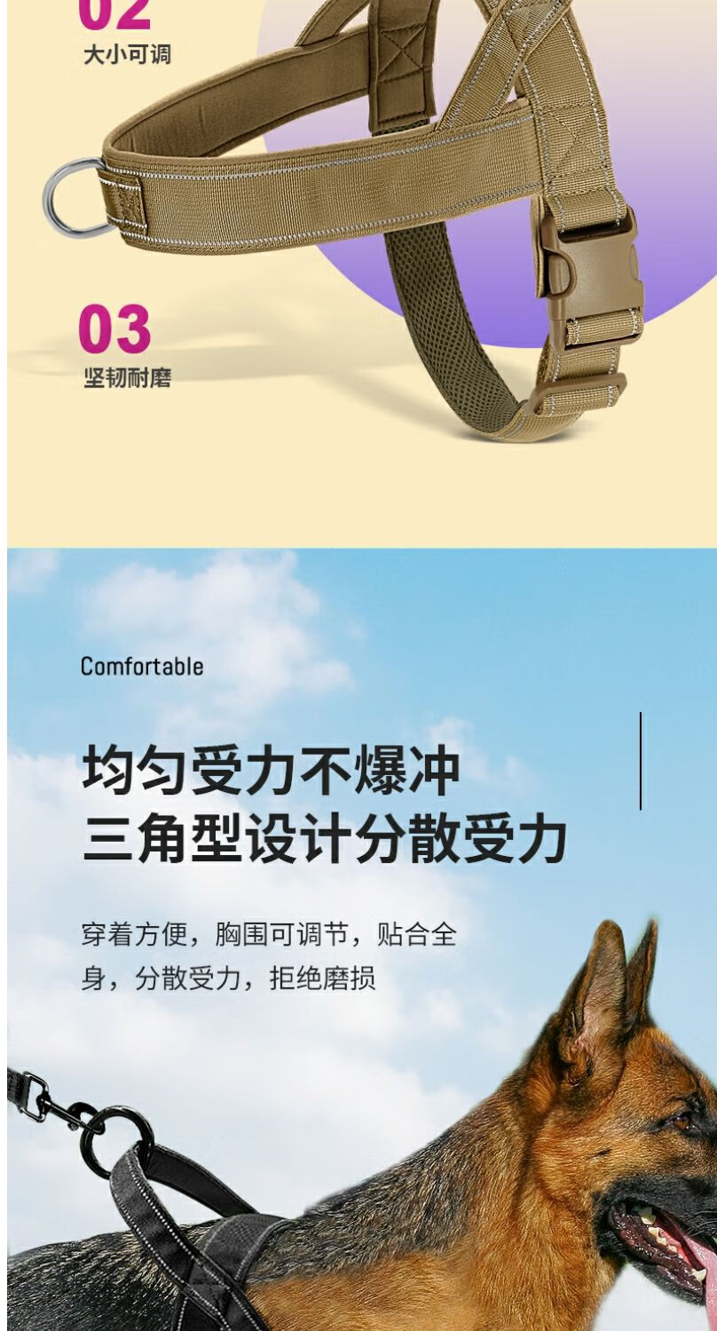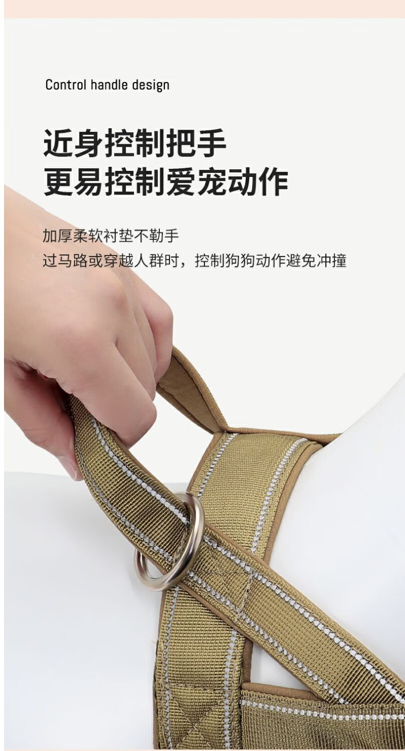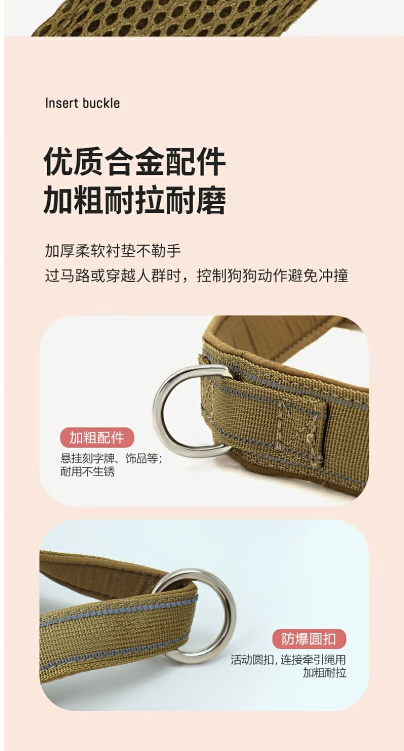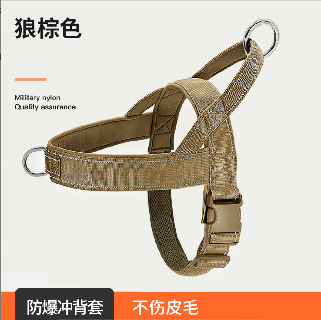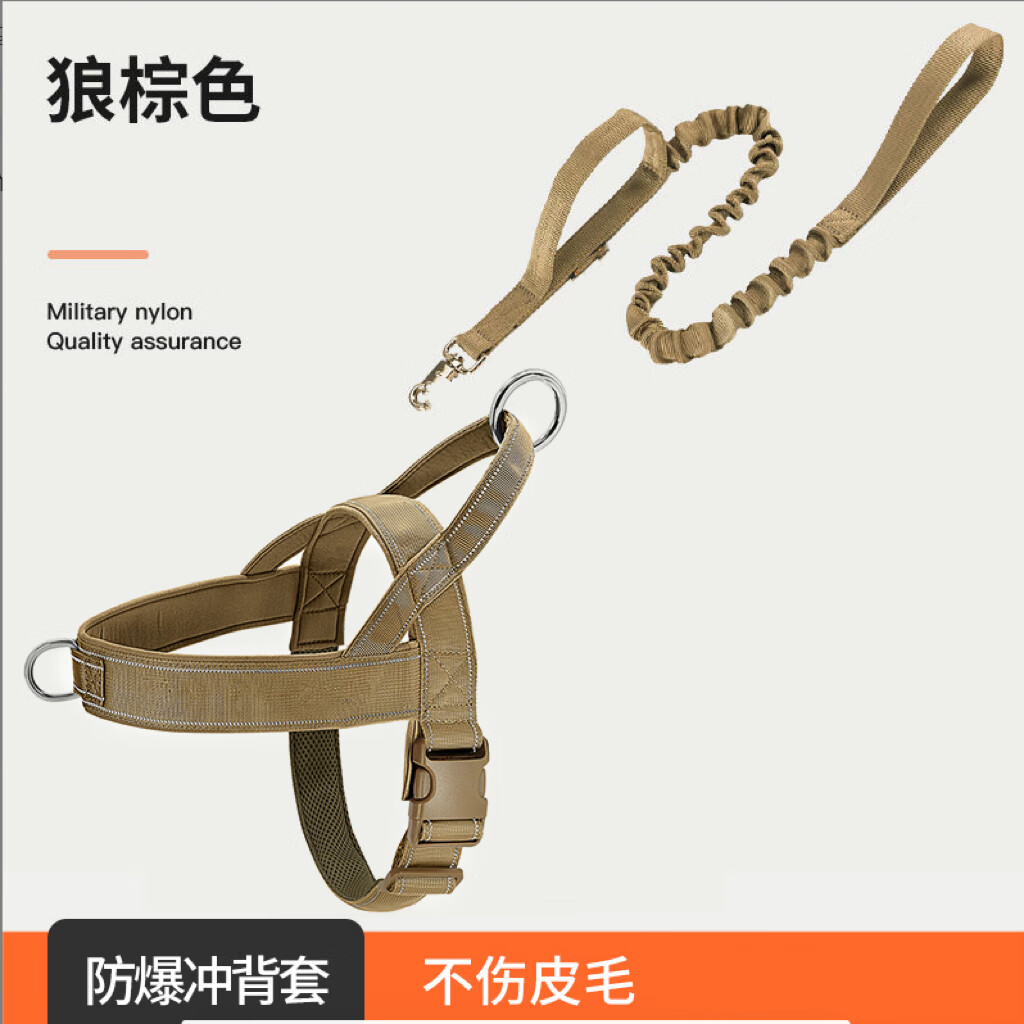 狗狗马犬胸背带中大型犬背心式牵引绳k9德牧拉布拉多金毛遛狗套背 狼棕色背心牵引绳 XL-【建议70-95斤】