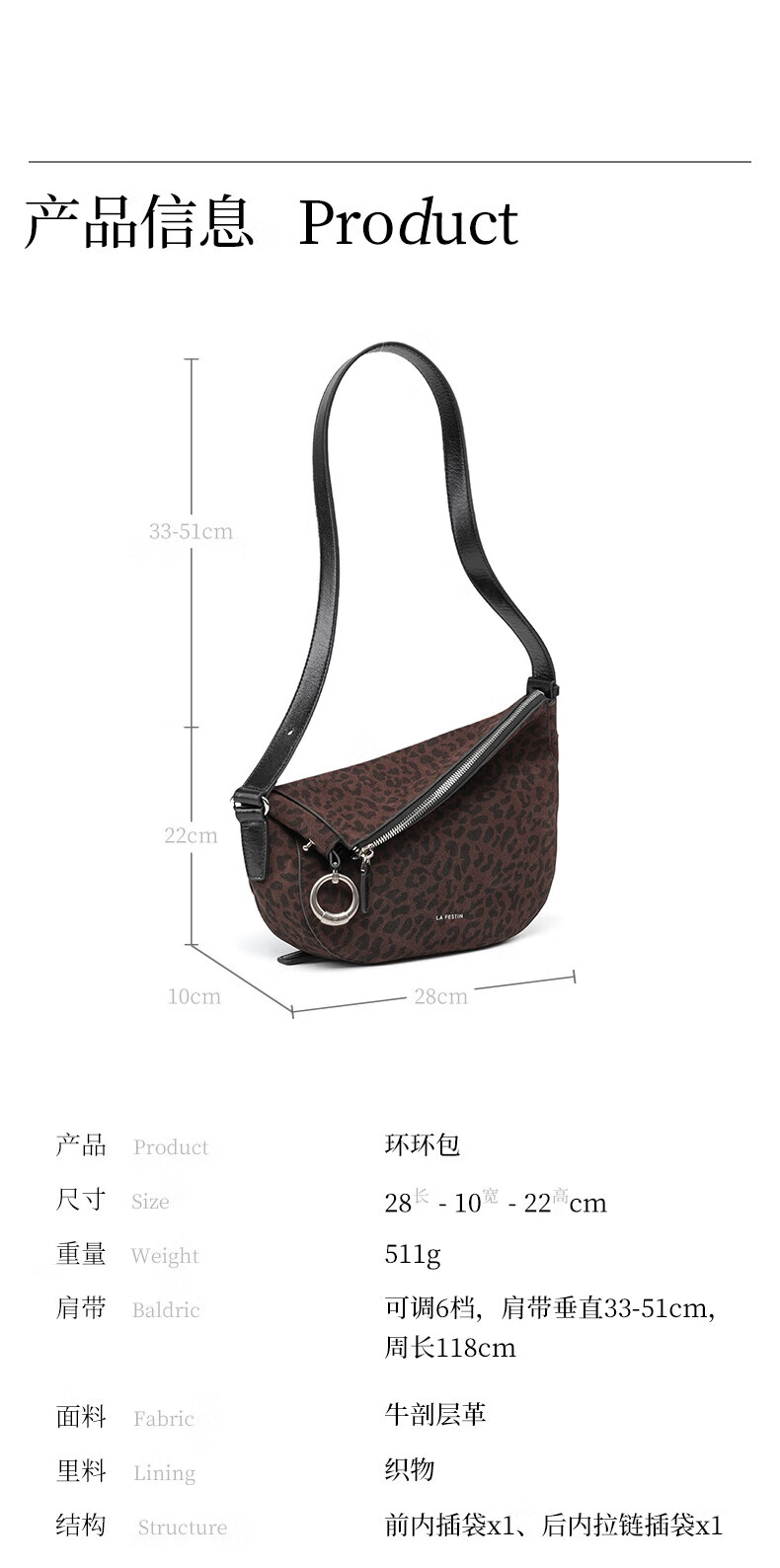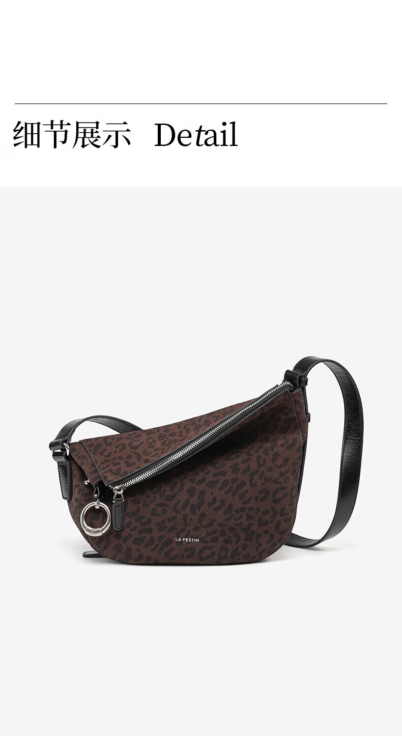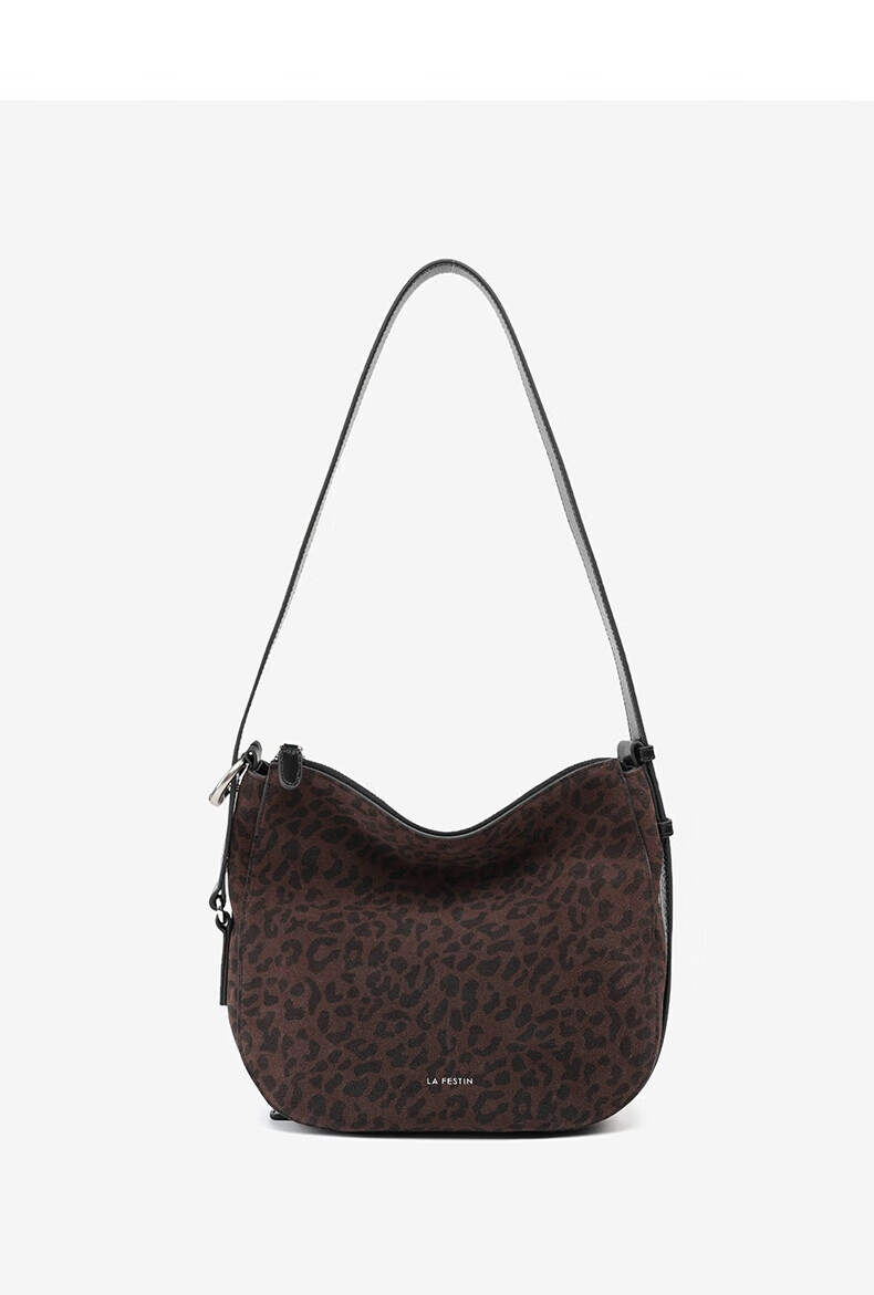 拉菲斯汀(La Festin)麂皮绒环环包包女式2025新款豹纹包单肩斜挎包托特包 622352 磨砂豹纹