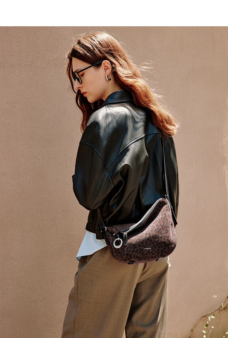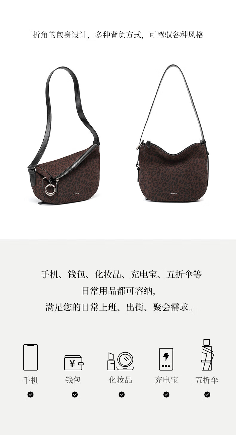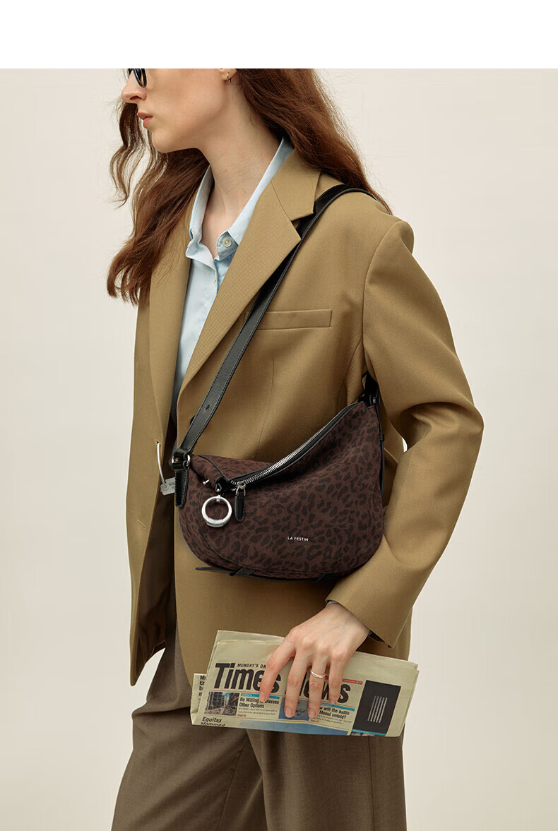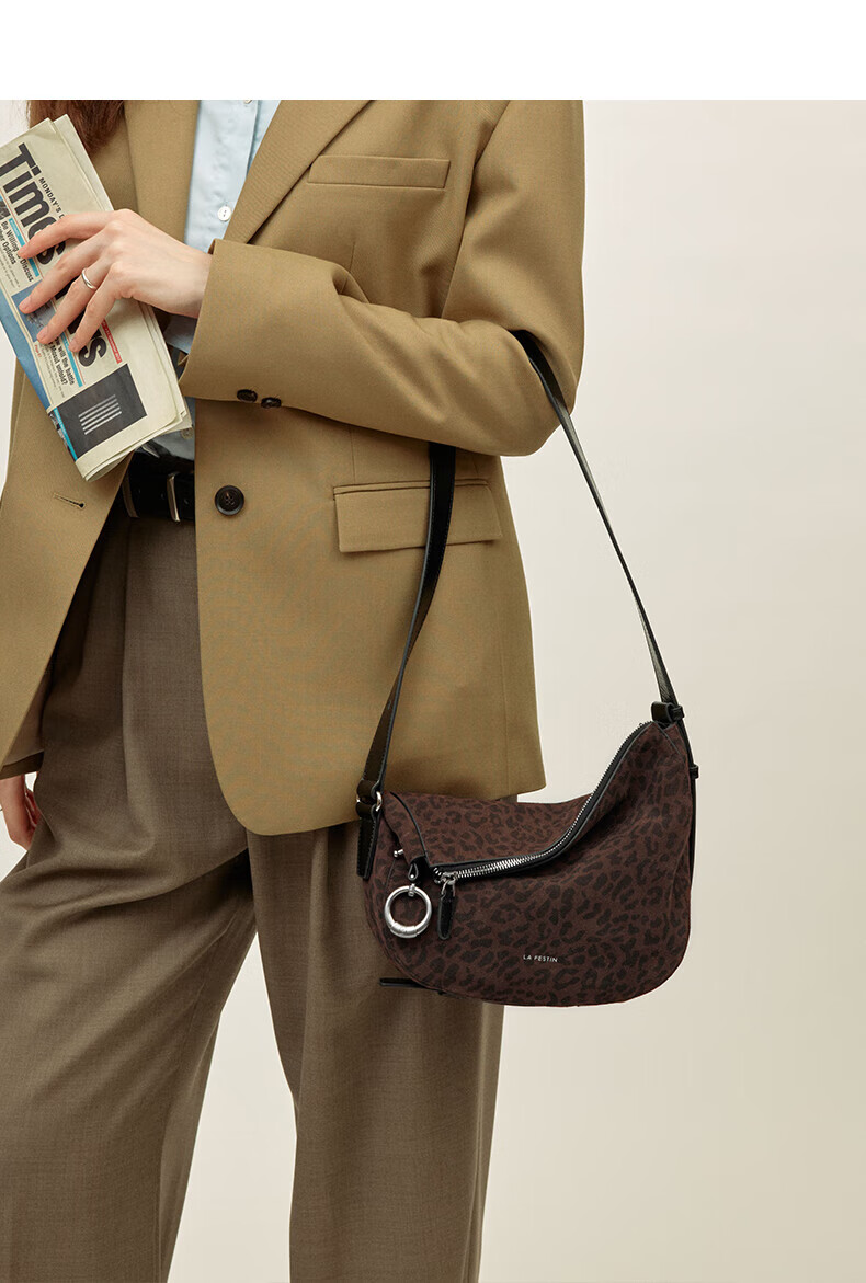 拉菲斯汀(La Festin)麂皮绒环环包包女式2025新款豹纹包单肩斜挎包托特包 622352 磨砂豹纹
