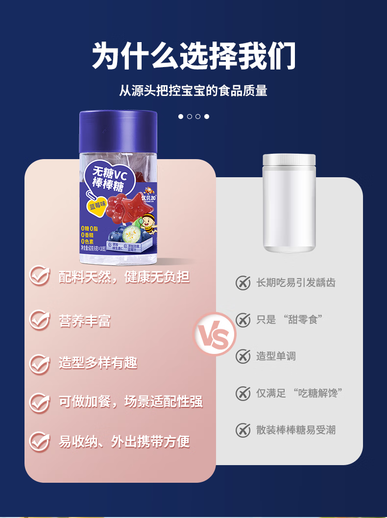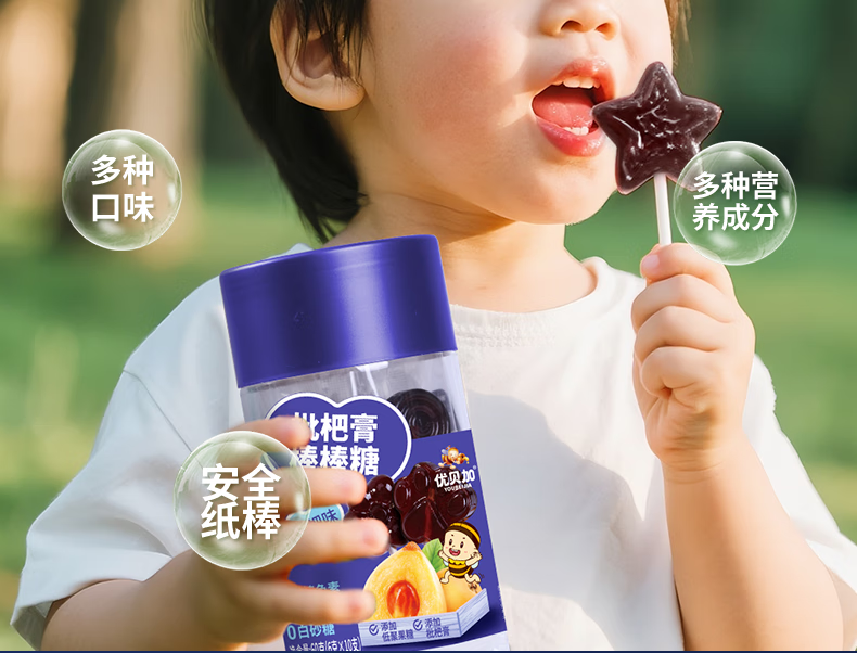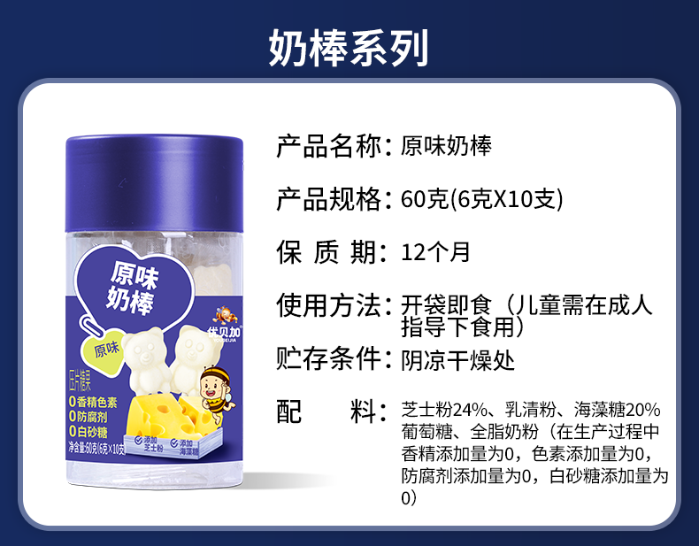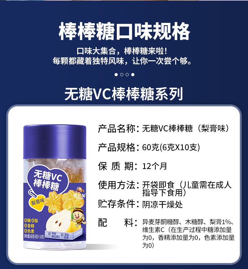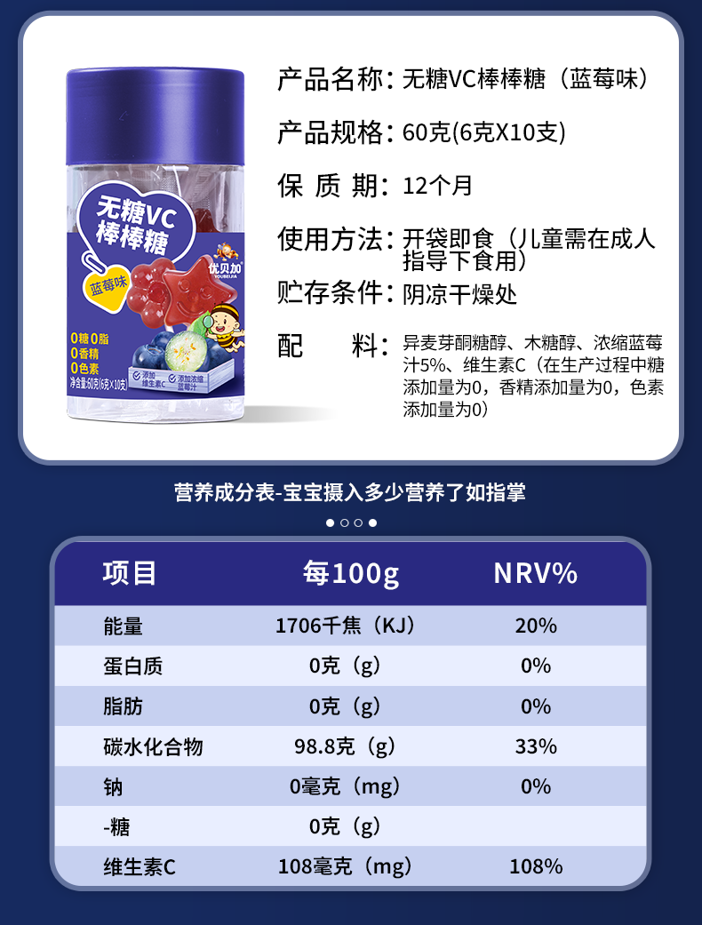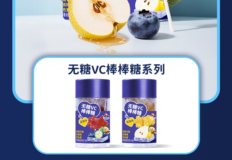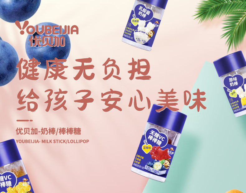 优贝加无糖棒棒糖1-3岁儿童零食DHA乳酸菌维生素C奶棒益生元0添加防腐剂 优贝加无糖VC棒棒糖(蓝莓味)*3瓶