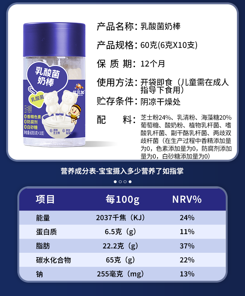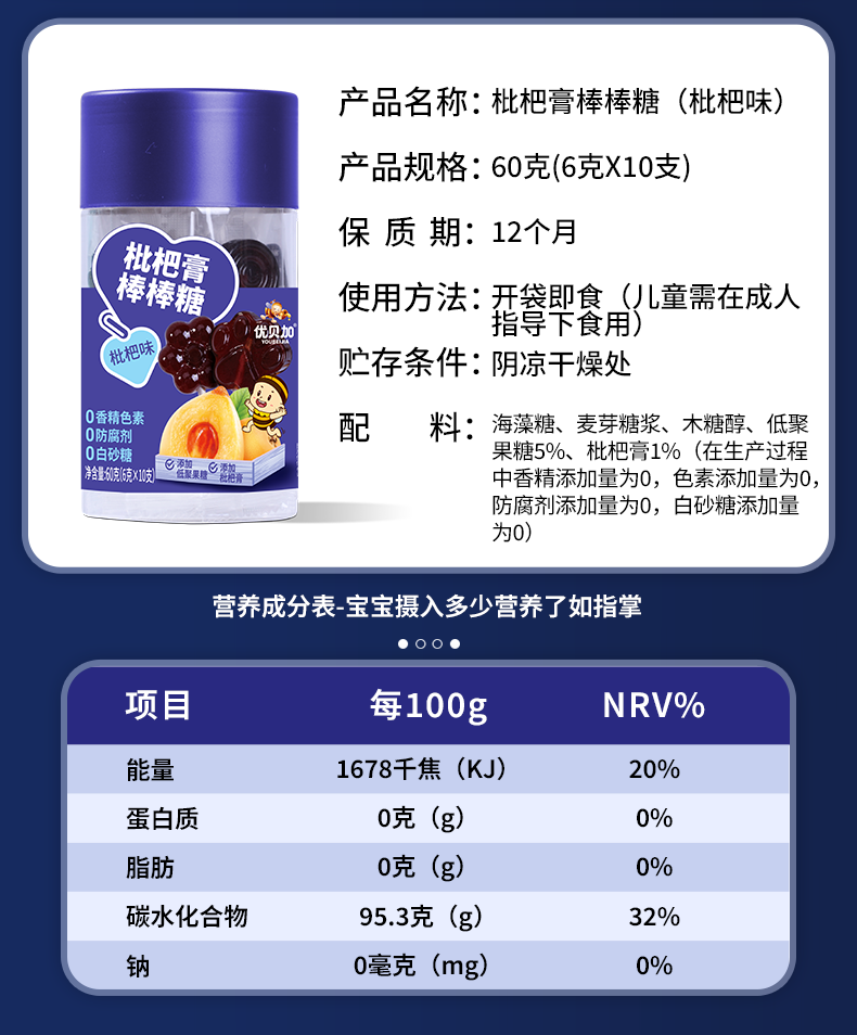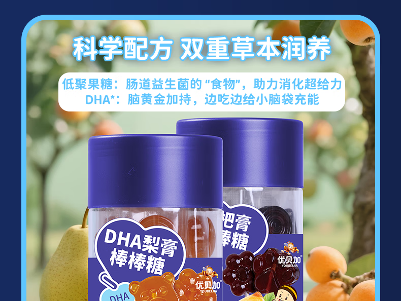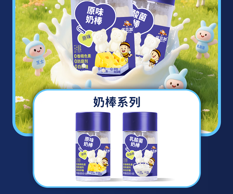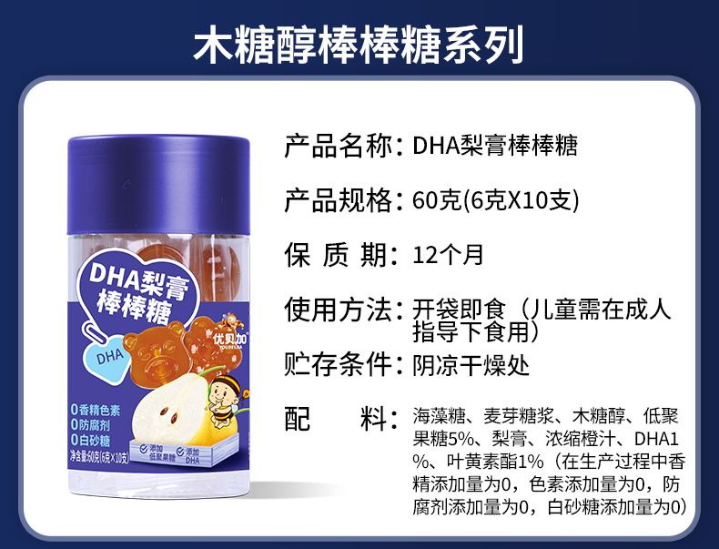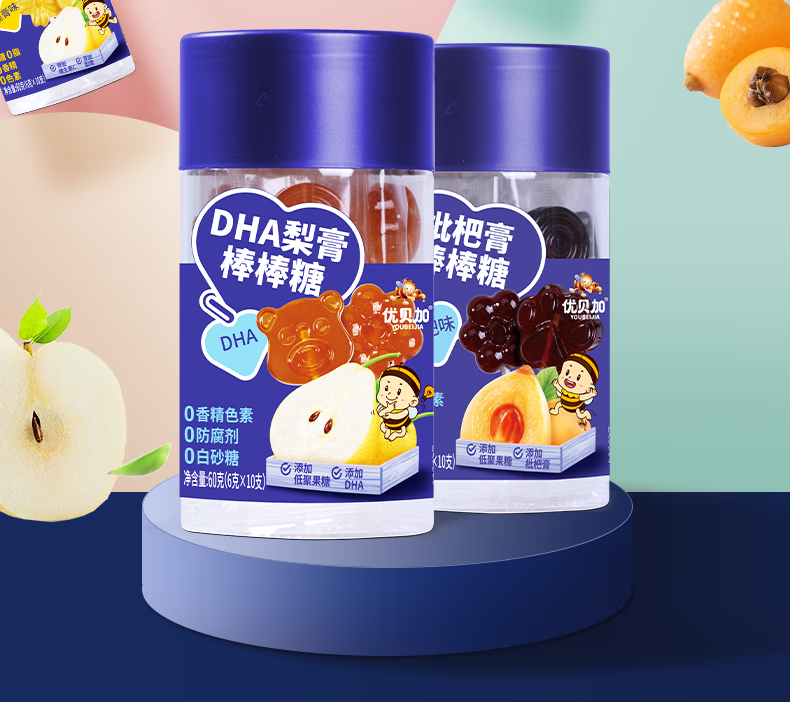 优贝加无糖棒棒糖1-3岁儿童零食DHA乳酸菌维生素C奶棒益生元0添加防腐剂 优贝加无糖VC棒棒糖(蓝莓味)*3瓶