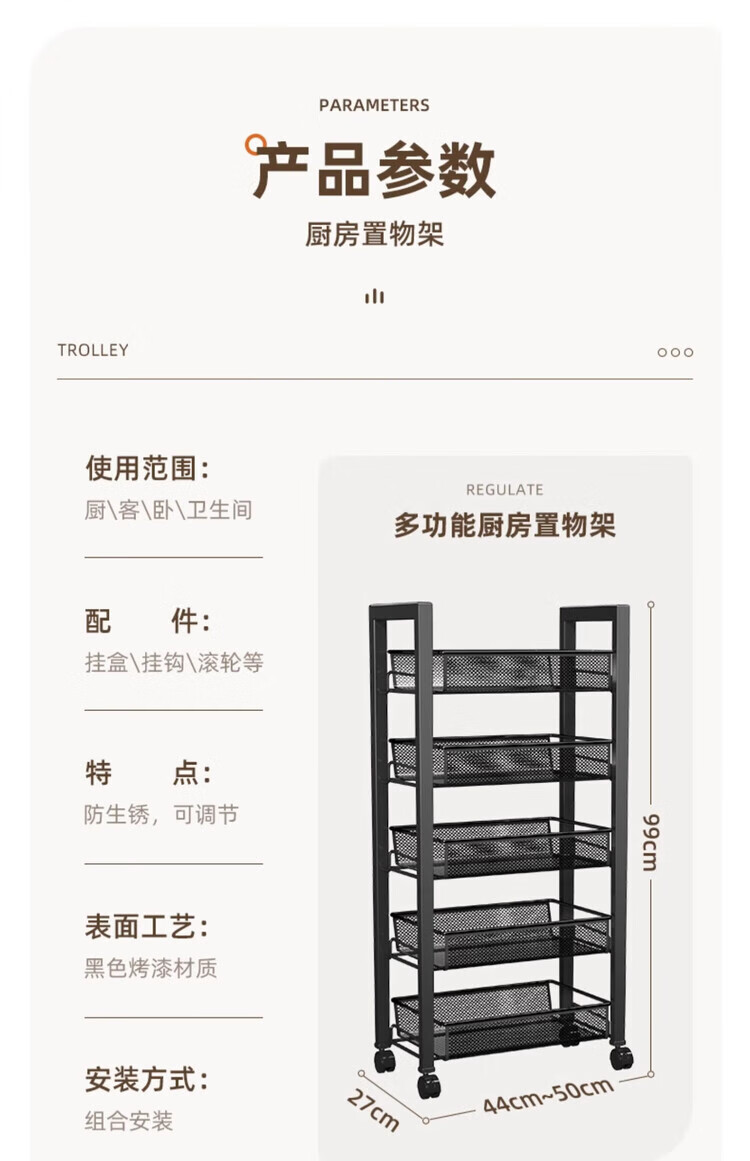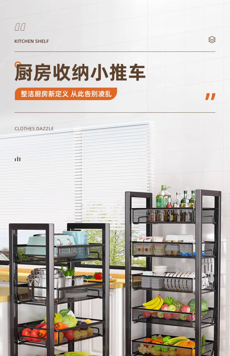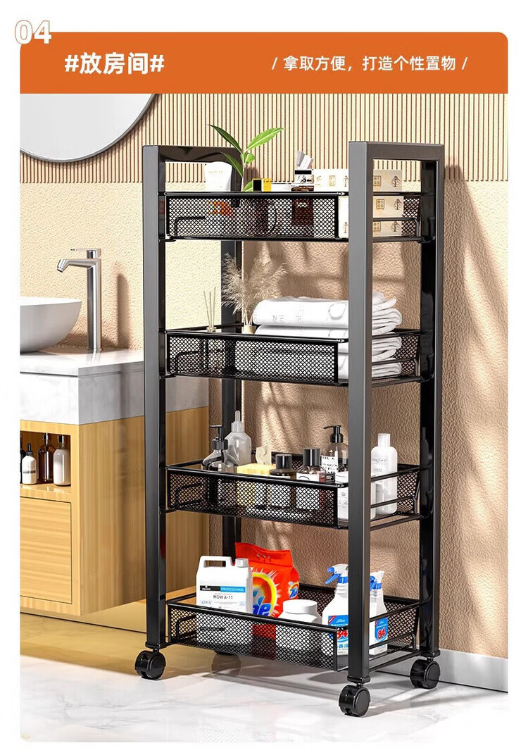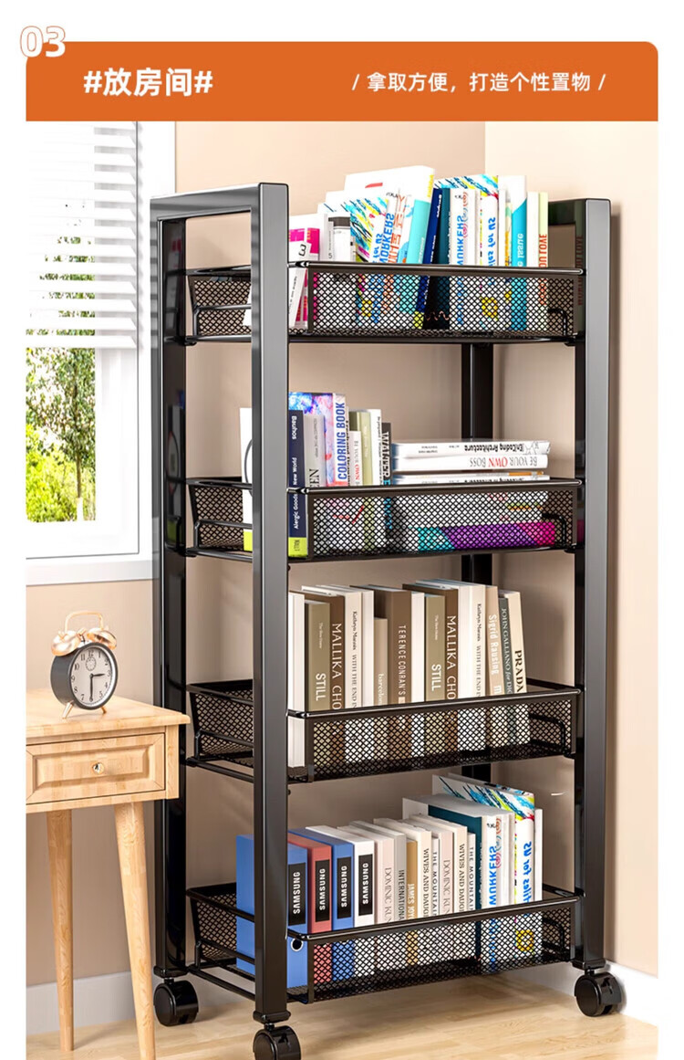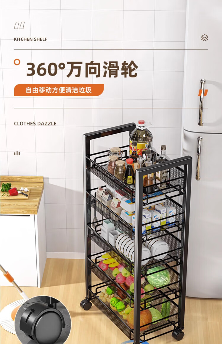 邦林纳小推车置物架移动落地式卧室多层蔬菜零食厨房浴室卫生间收纳架子 五层-大号【三网两板】