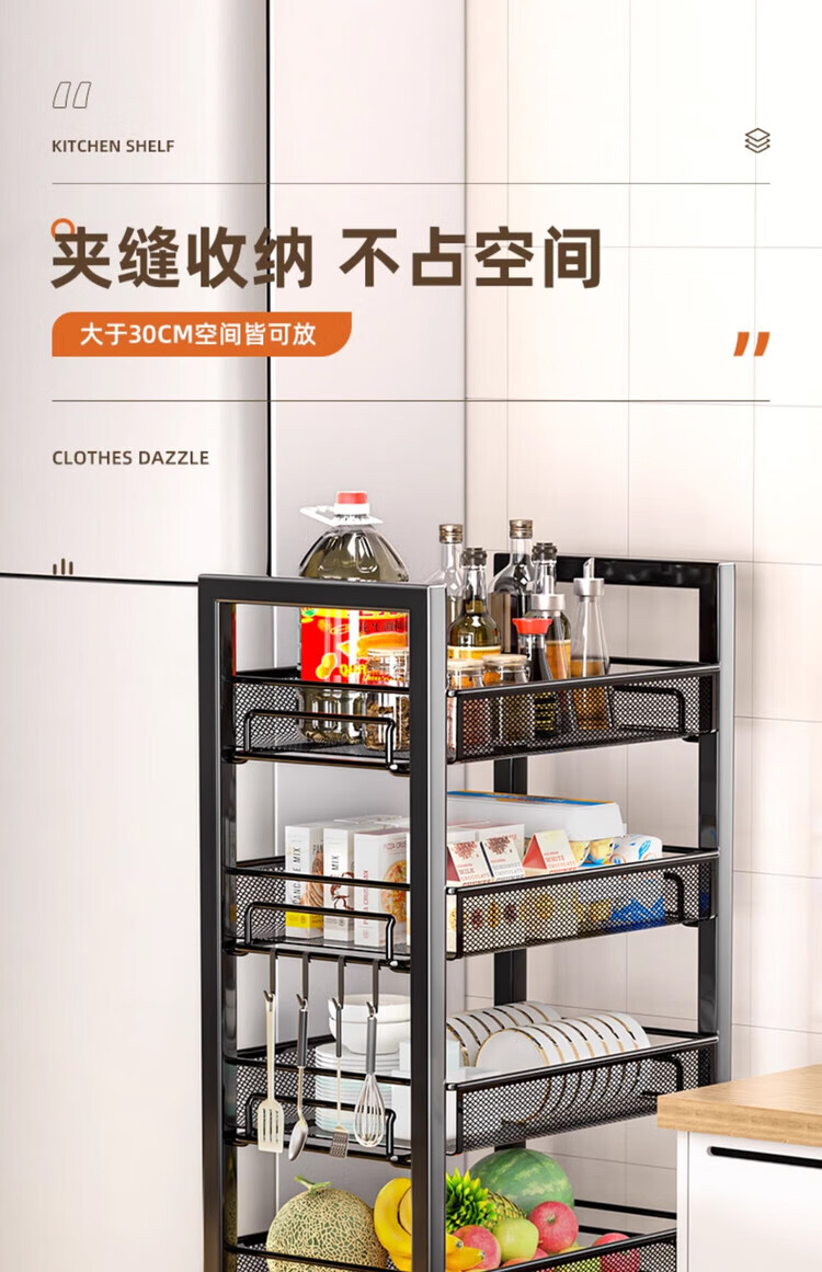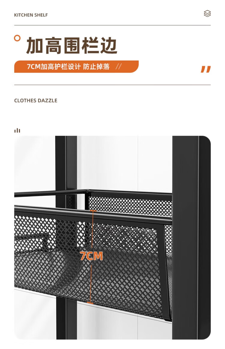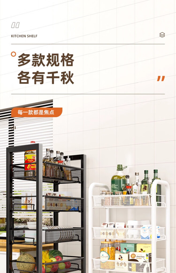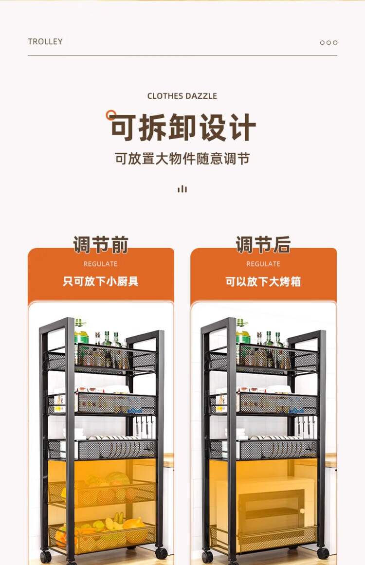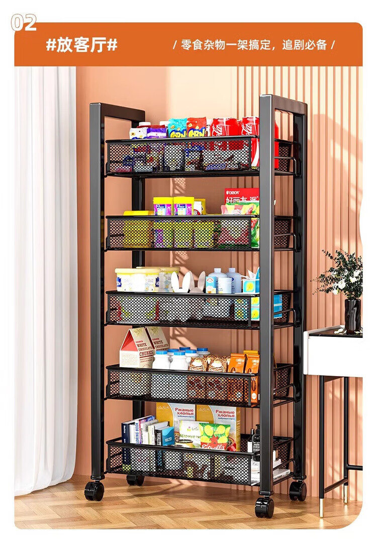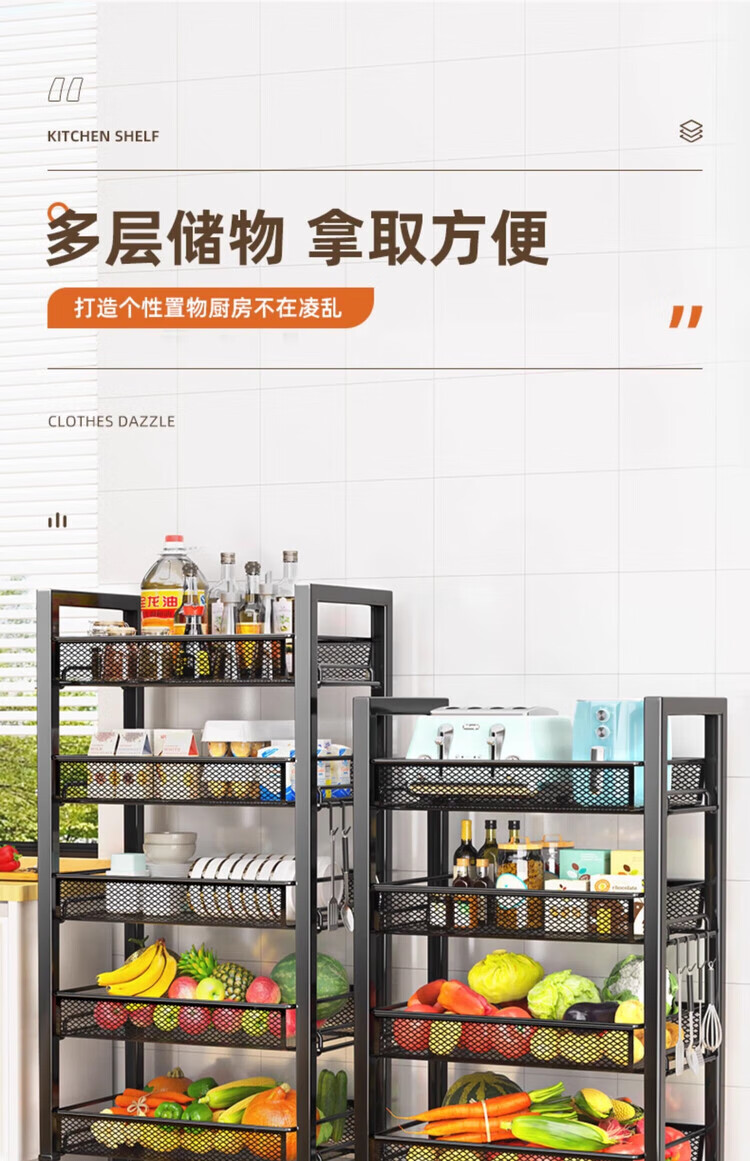 邦林纳小推车置物架移动落地式卧室多层蔬菜零食厨房浴室卫生间收纳架子 五层-大号【三网两板】