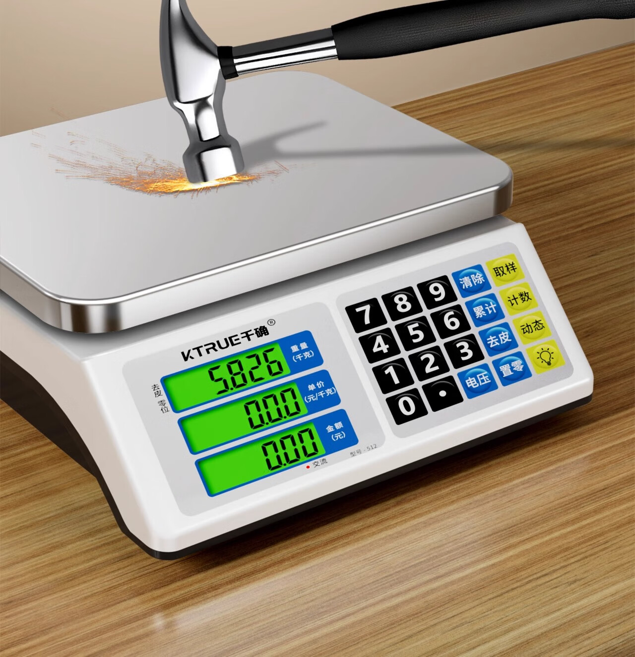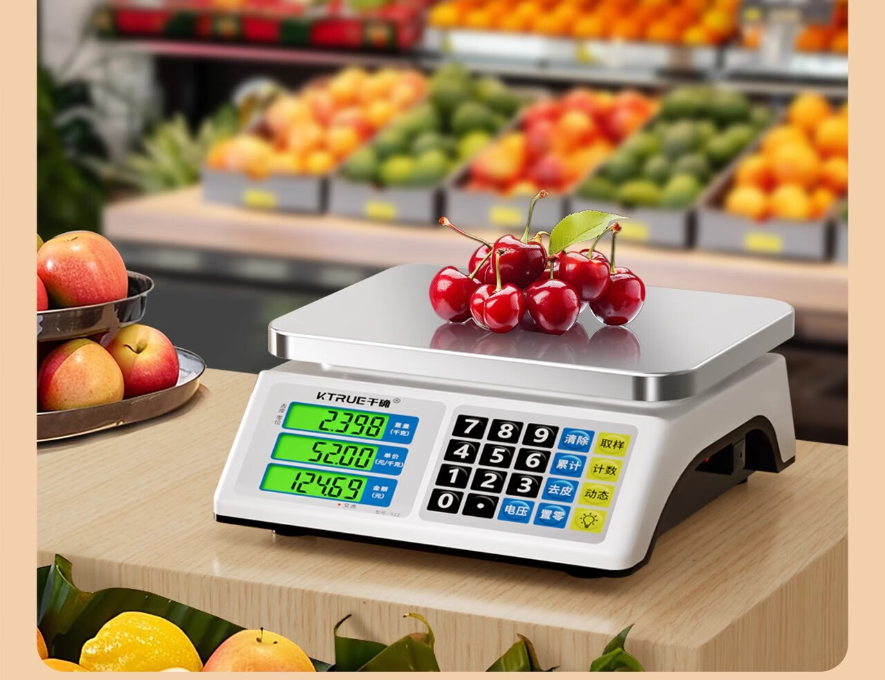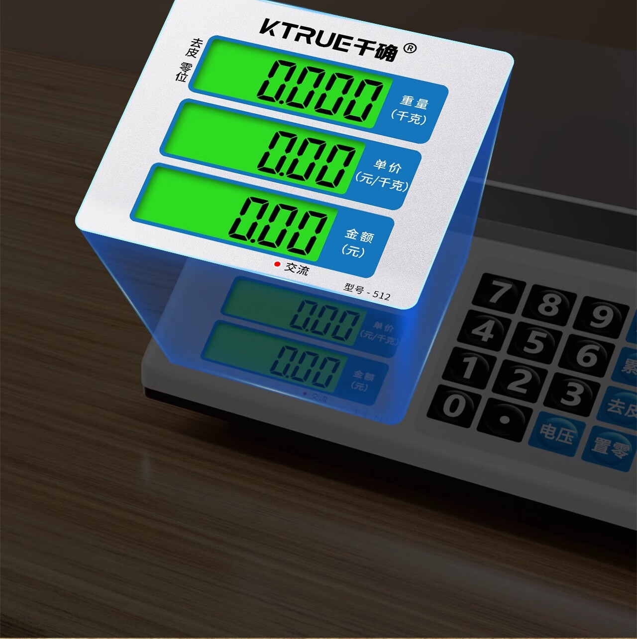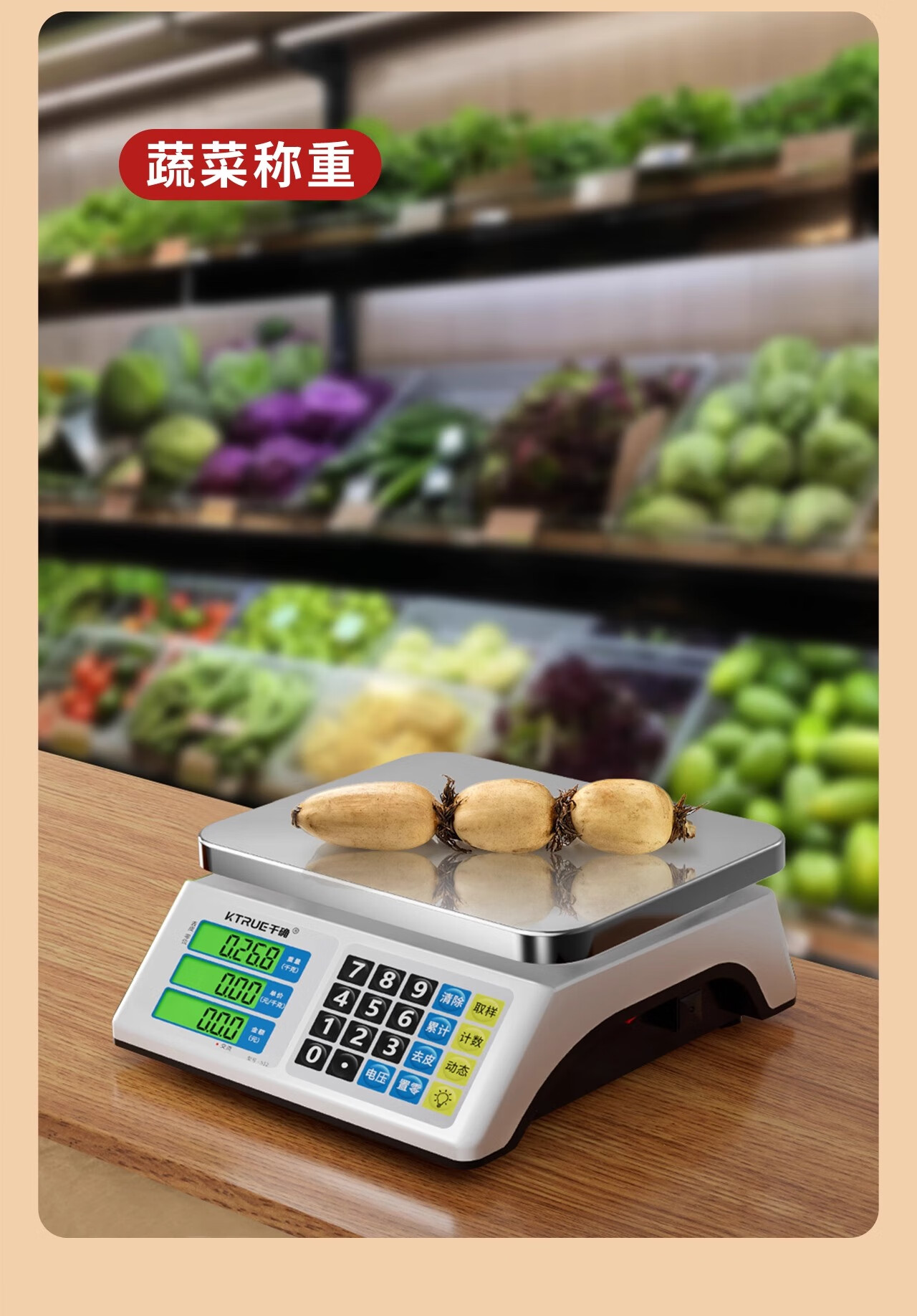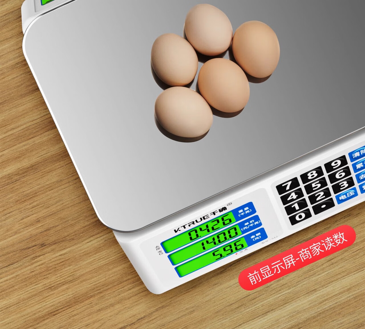 KTRUE精准电子秤商用生意摆摊卖菜小型台秤高精度厨房秤称重中药克称数 平盘【15kg】聚能省电+前后双屏
