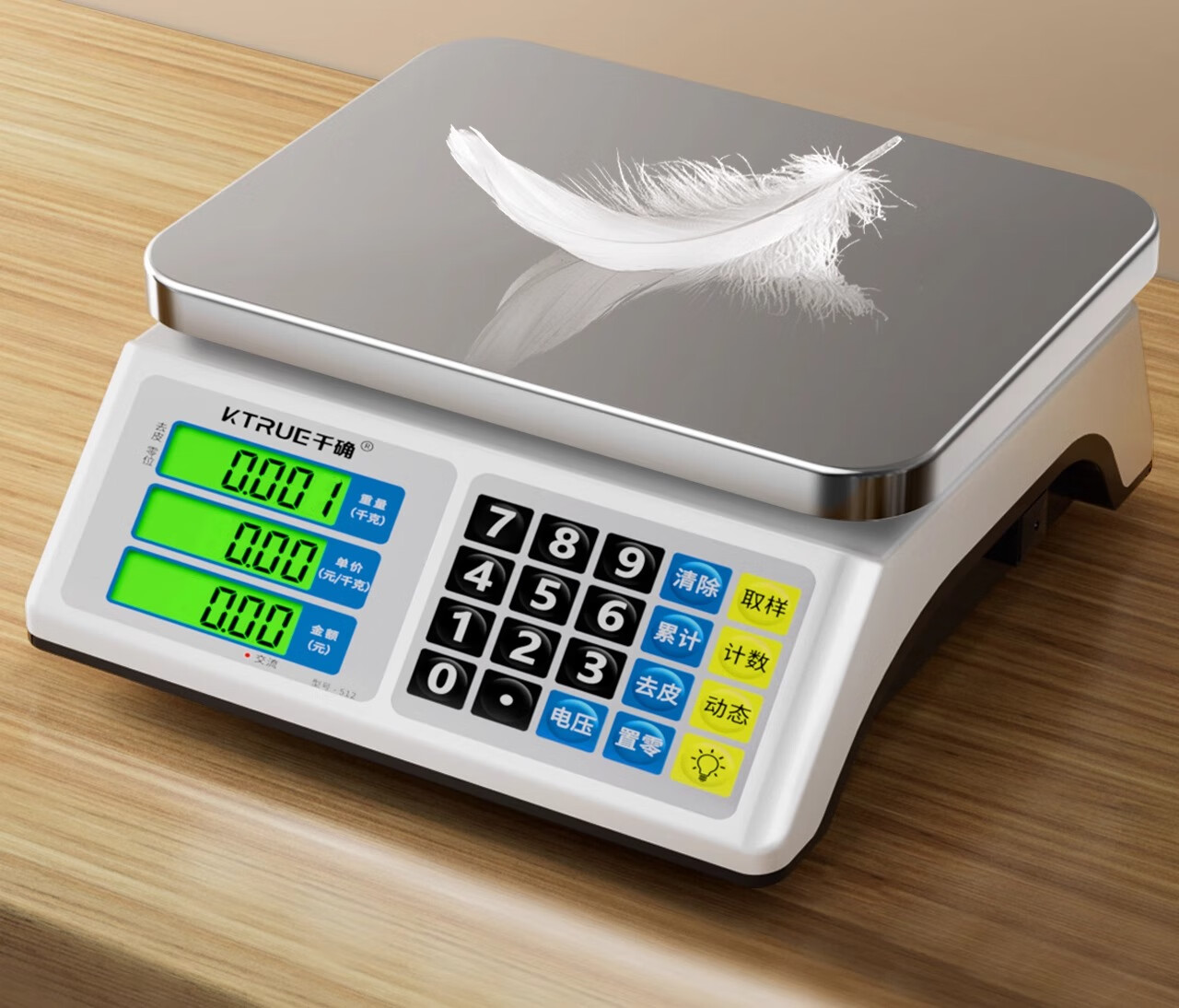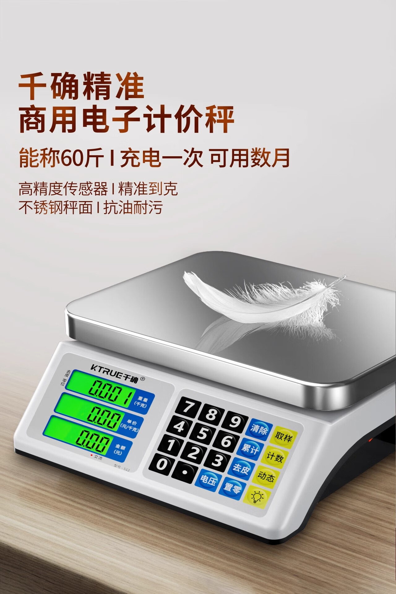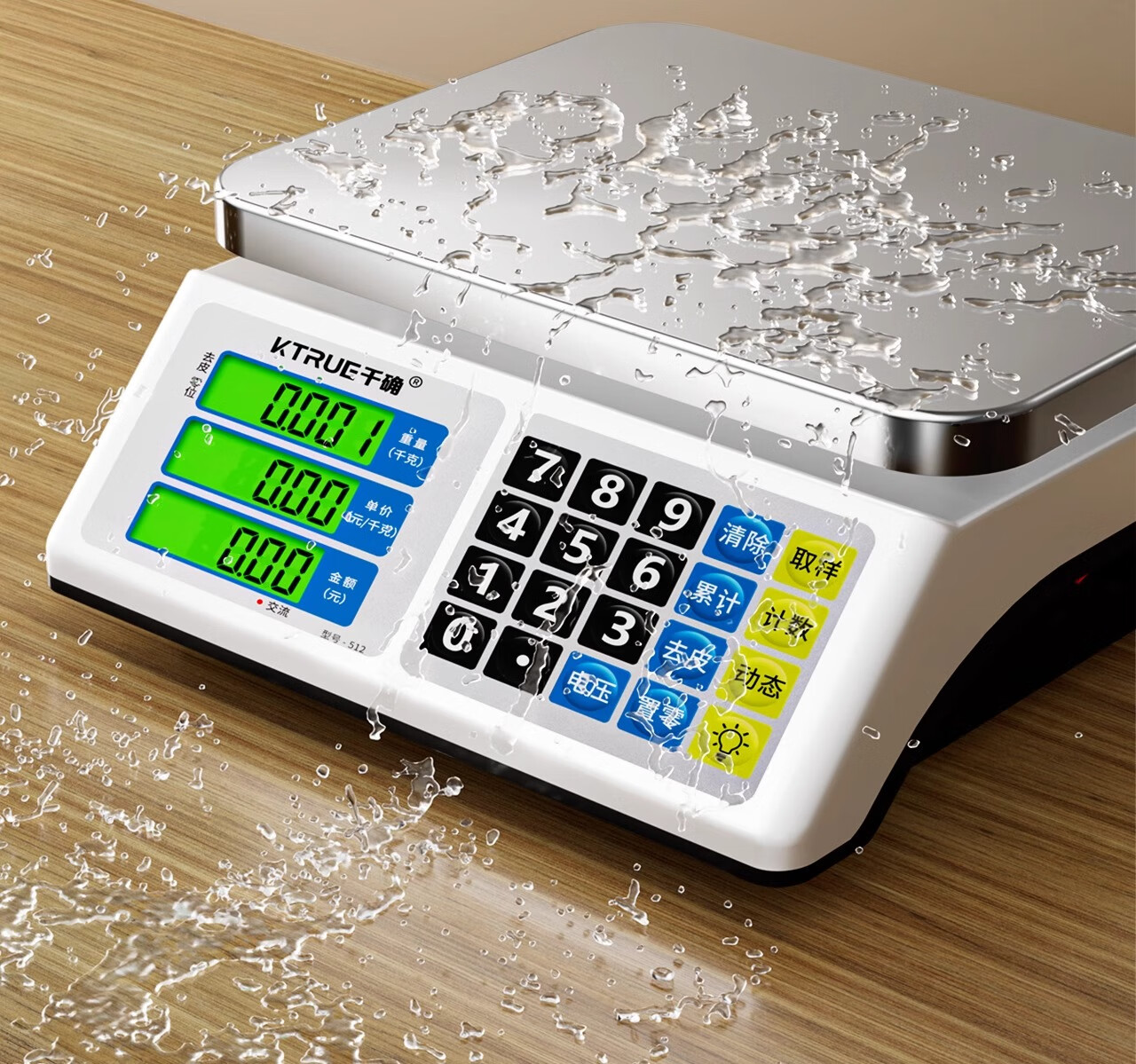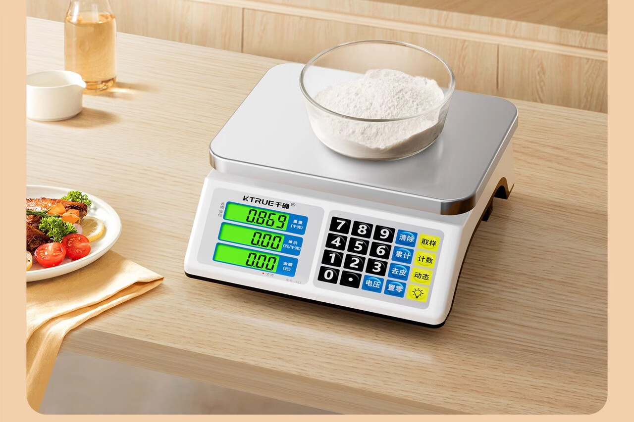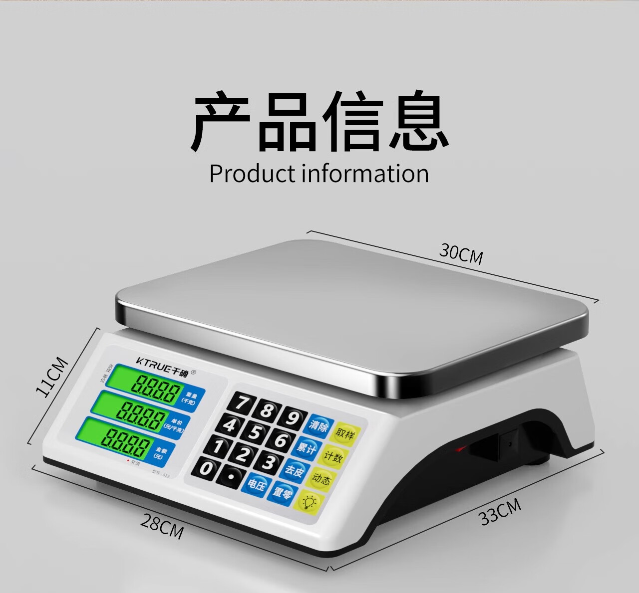 KTRUE精准电子秤商用生意摆摊卖菜小型台秤高精度厨房秤称重中药克称数 平盘【15kg】聚能省电+前后双屏
