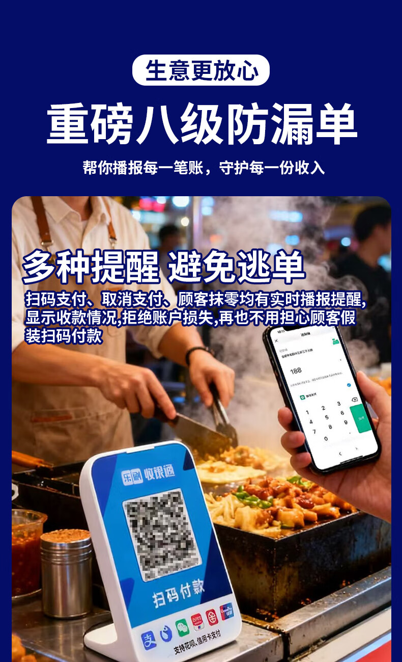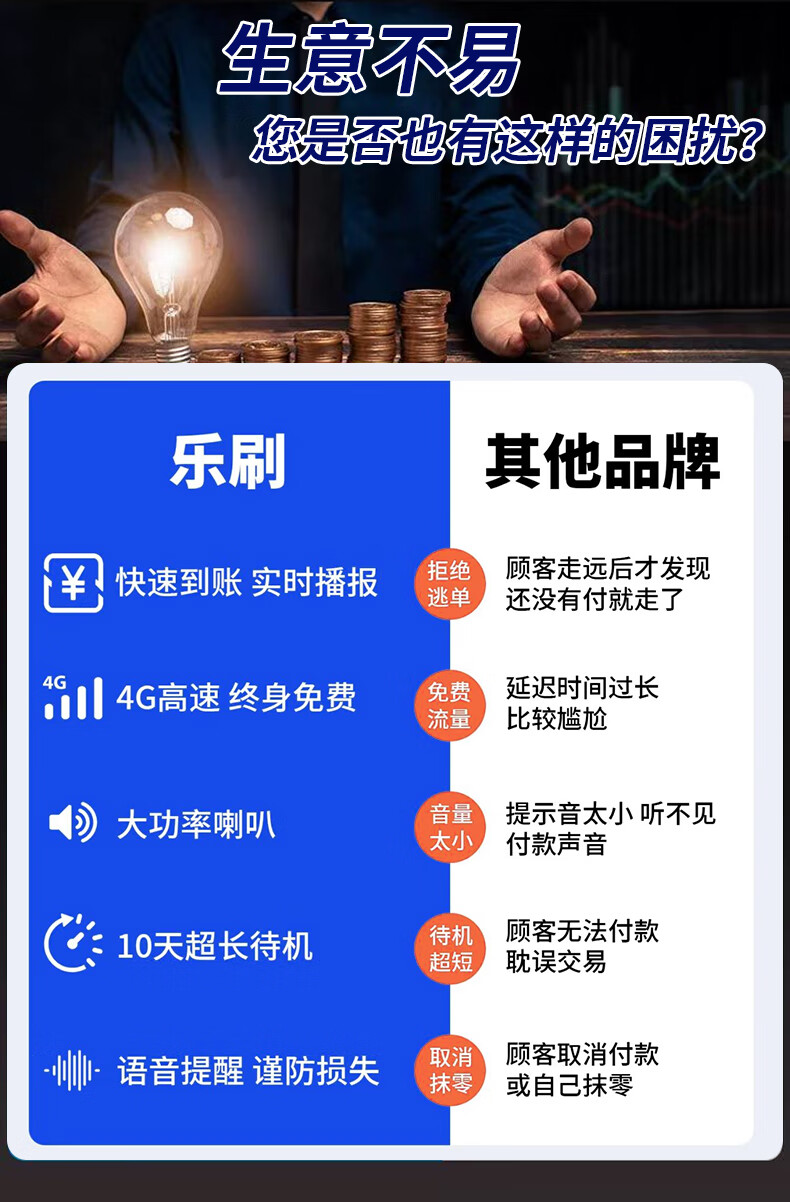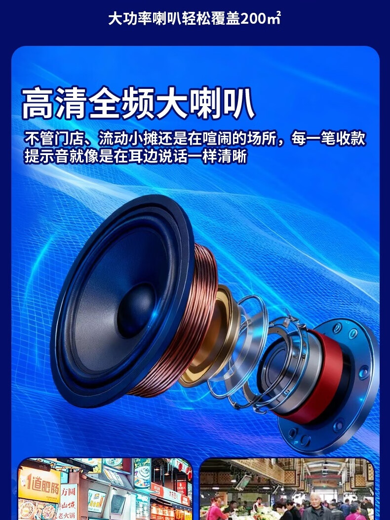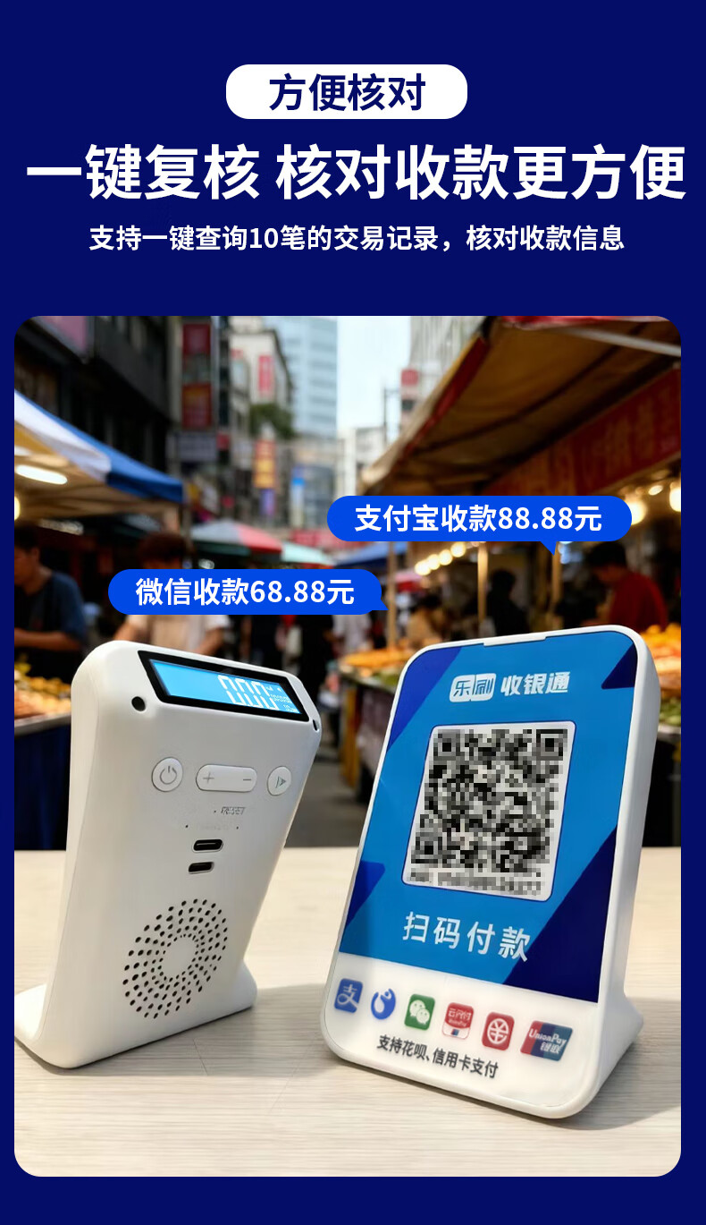 乐刷收银通大音量微信支付宝防逃单不连蓝牙收款音响 蓝色 收款音箱+2个立牌