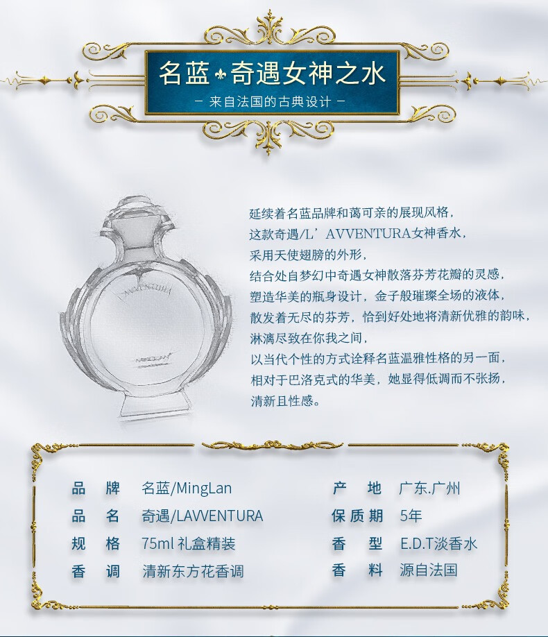 名蓝奇遇女士香水持久留香魅力女人味法国女香生日礼物礼盒装 奇遇女神 75ml
