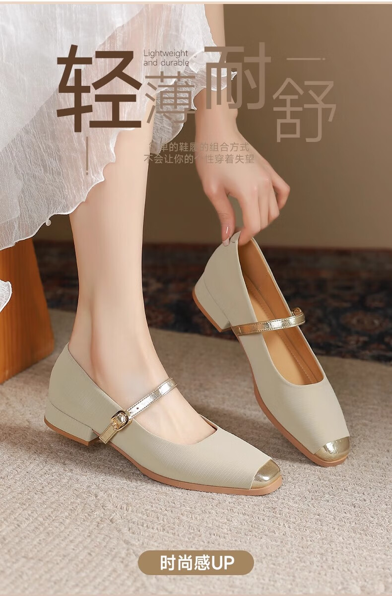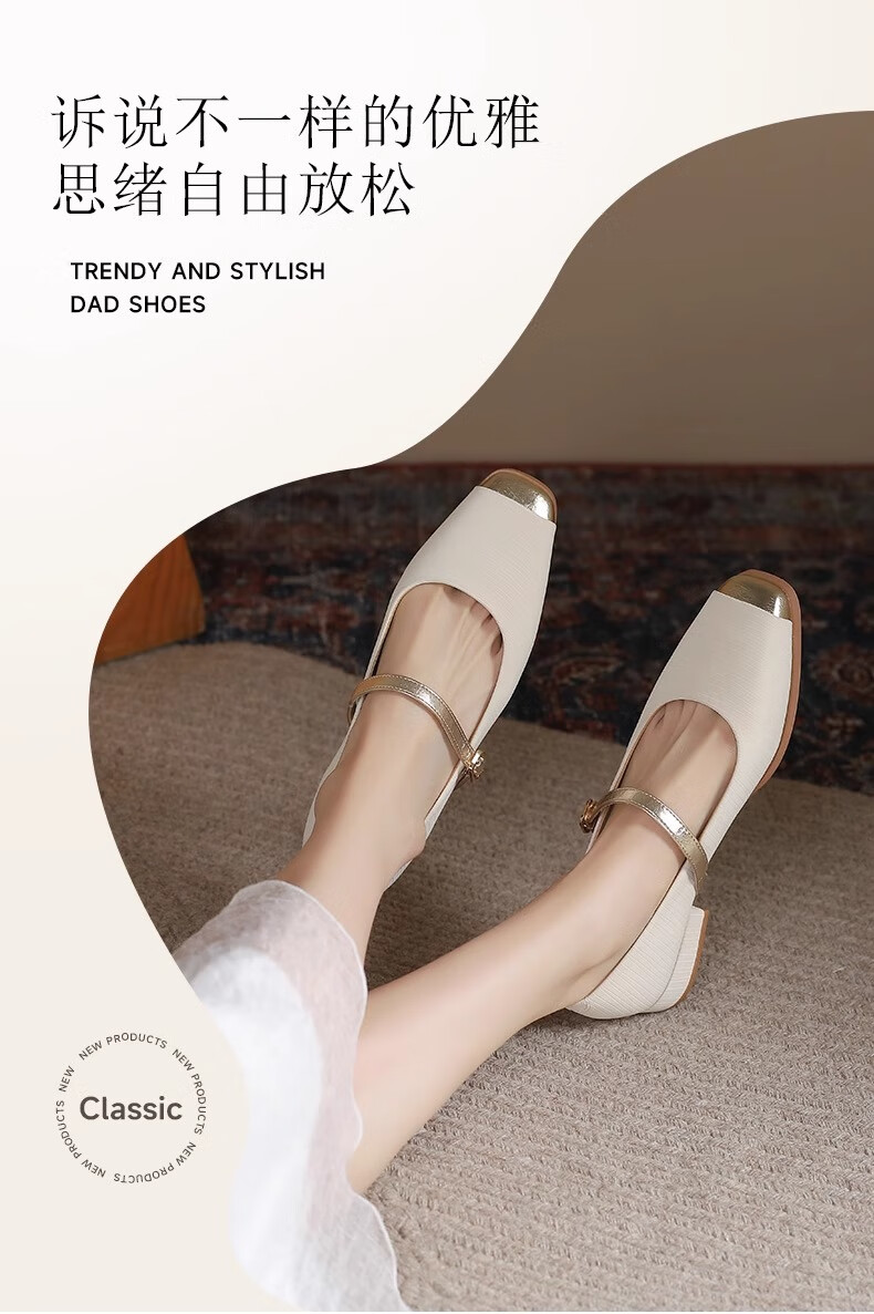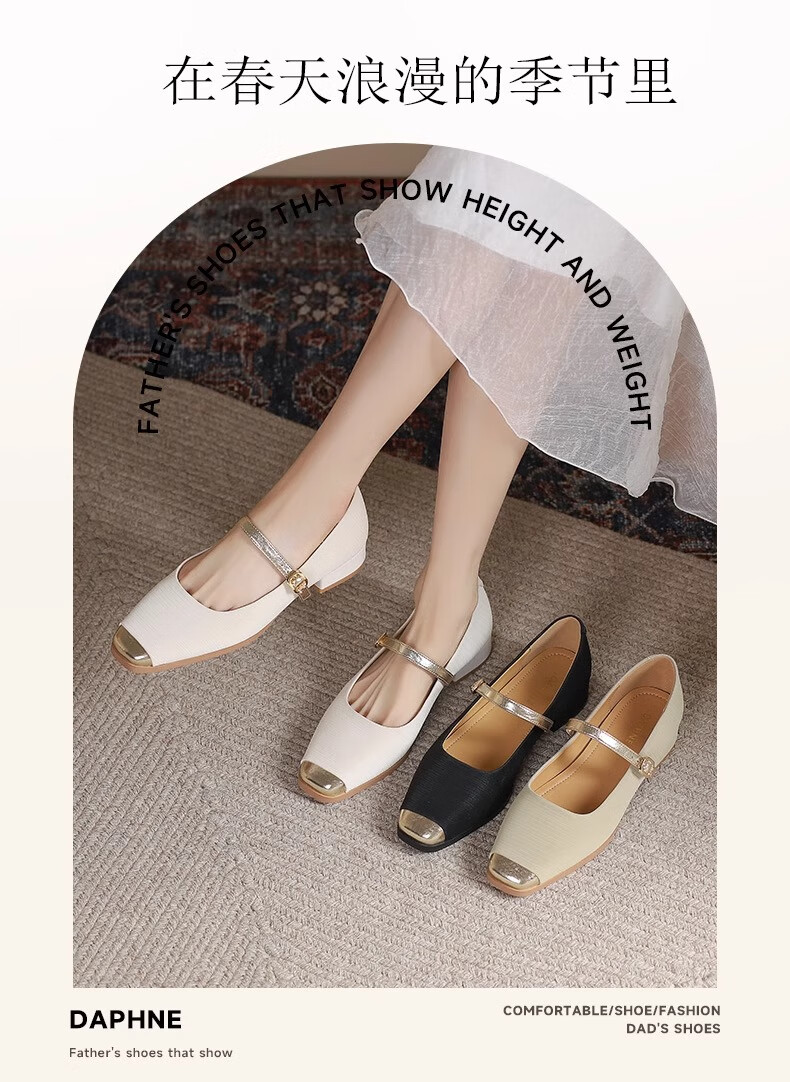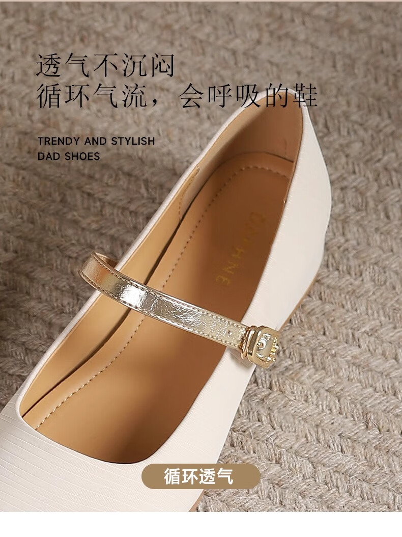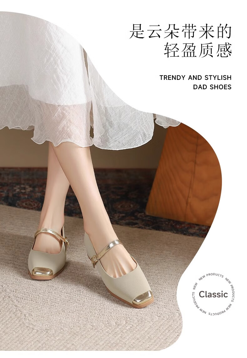 达芙妮玛丽珍女鞋2024新款春秋法式气质小香风皮鞋拼色一字扣单鞋QJ1Q 米金色 39