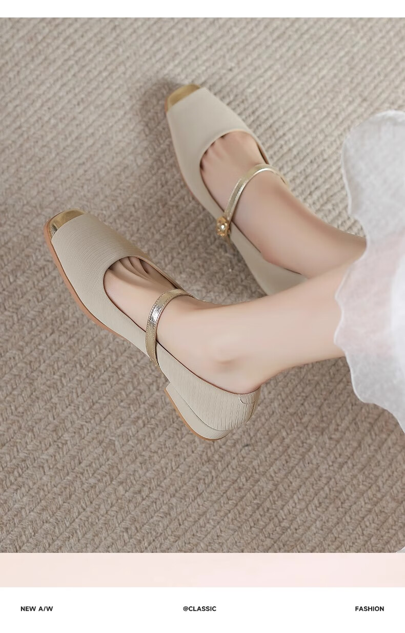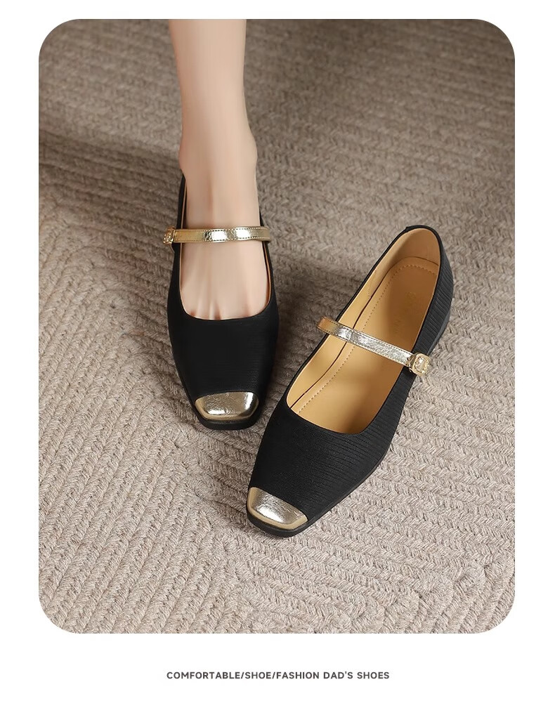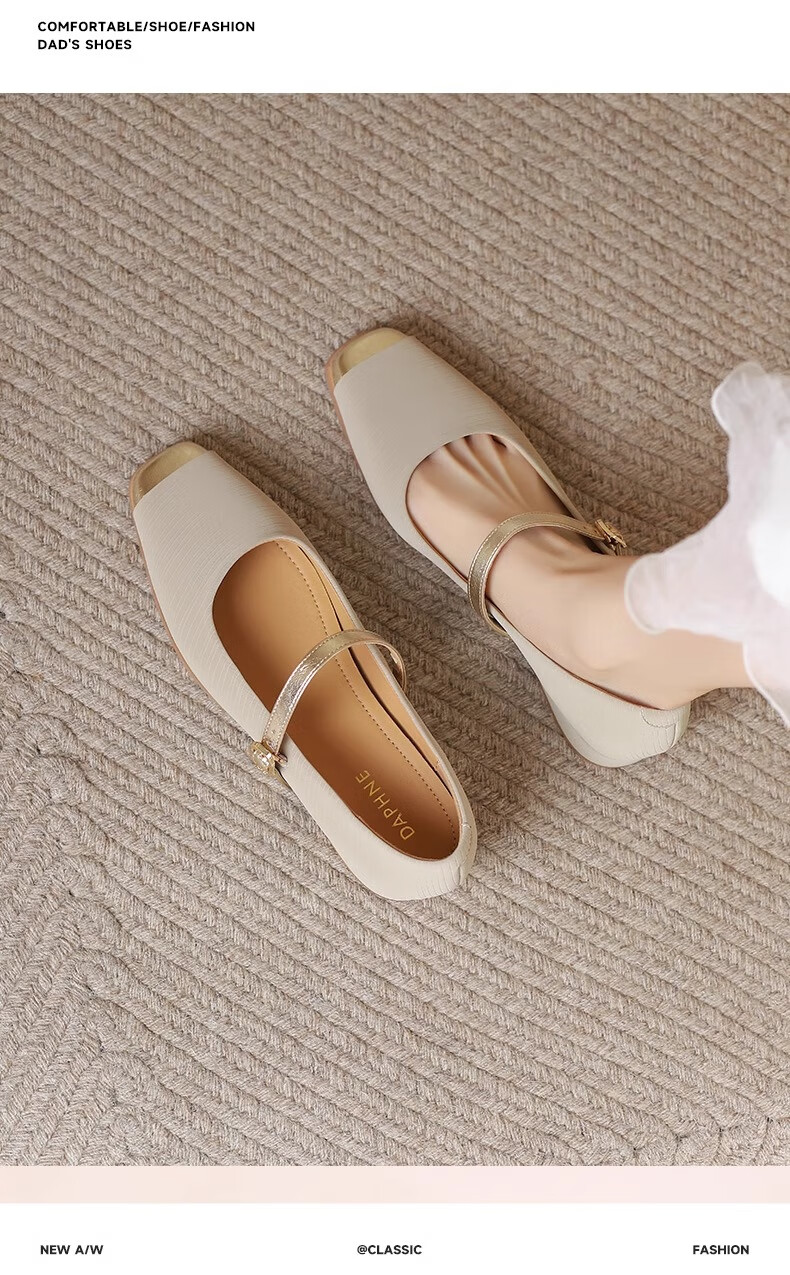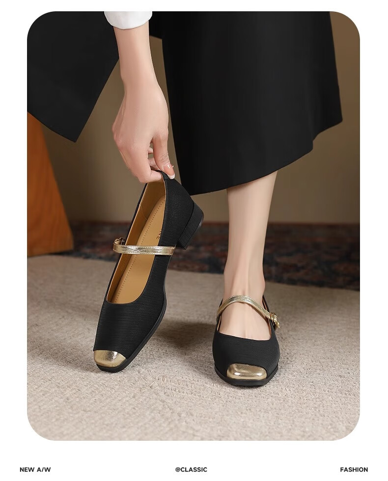 达芙妮玛丽珍女鞋2024新款春秋法式气质小香风皮鞋拼色一字扣单鞋QJ1Q 米金色 39