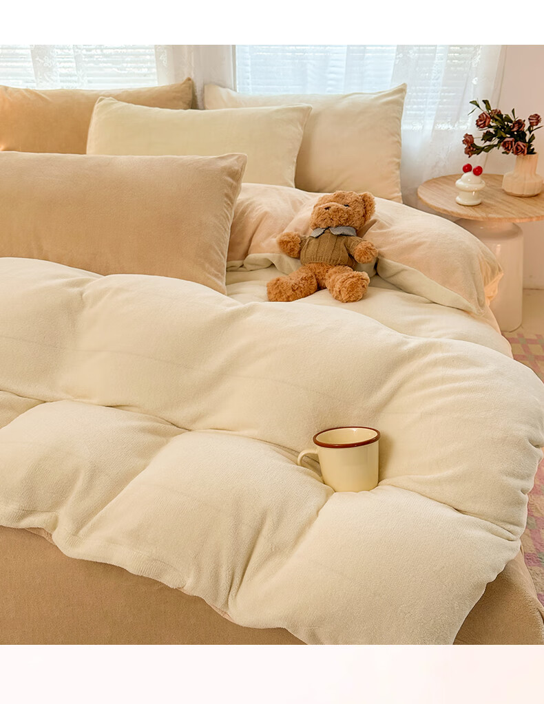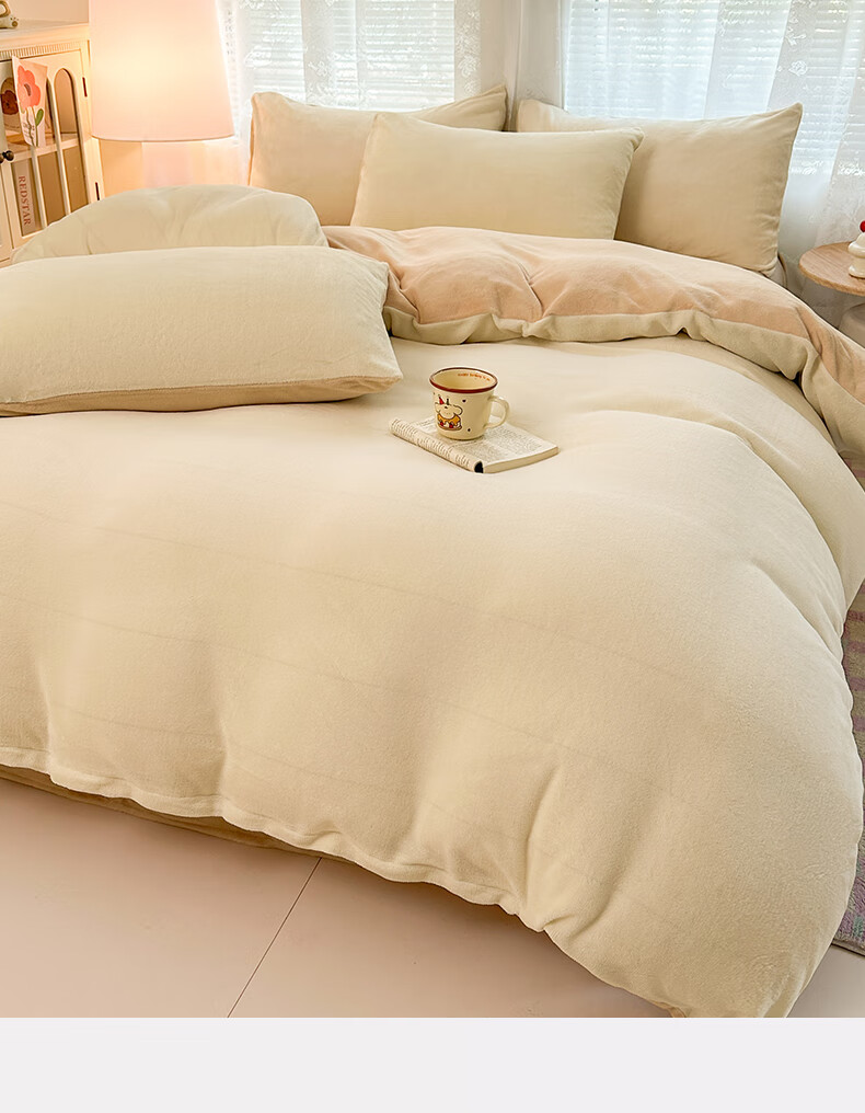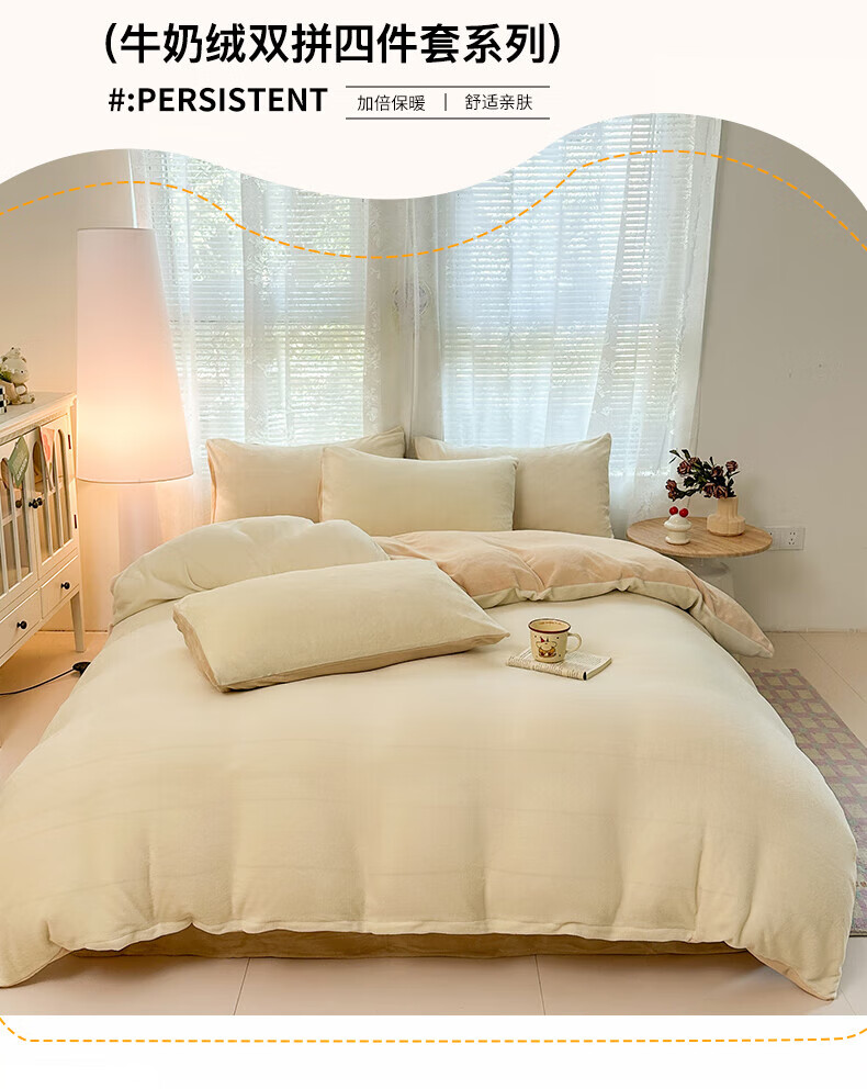猫人(MiiOW)加厚牛奶绒四件套2025新款冬季加绒珊瑚绒床品法兰绒被套床单 宝石蓝+浅灰【高克重牛奶绒 蓄热保暖 不易掉毛】 床笠款 1.8m床四件套-适合200x230cm被子