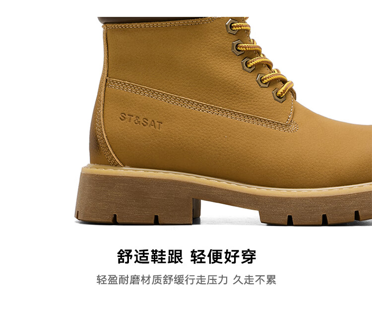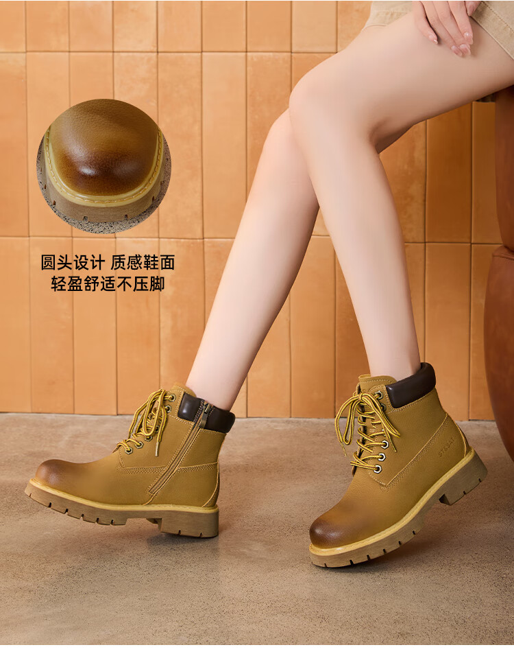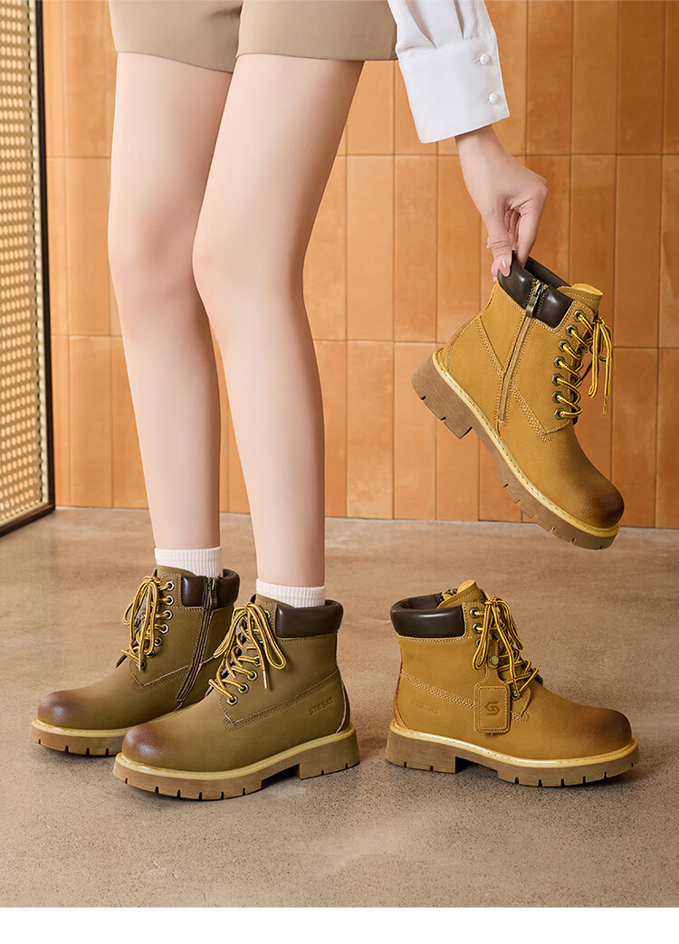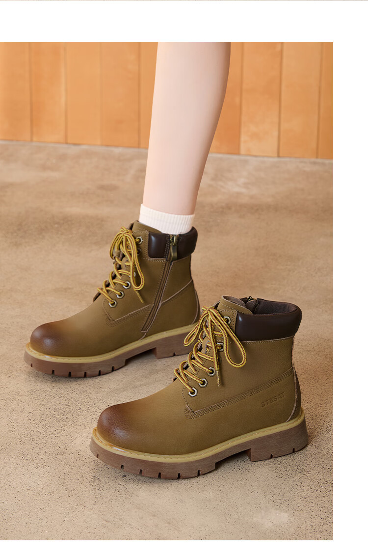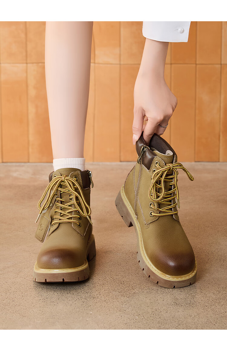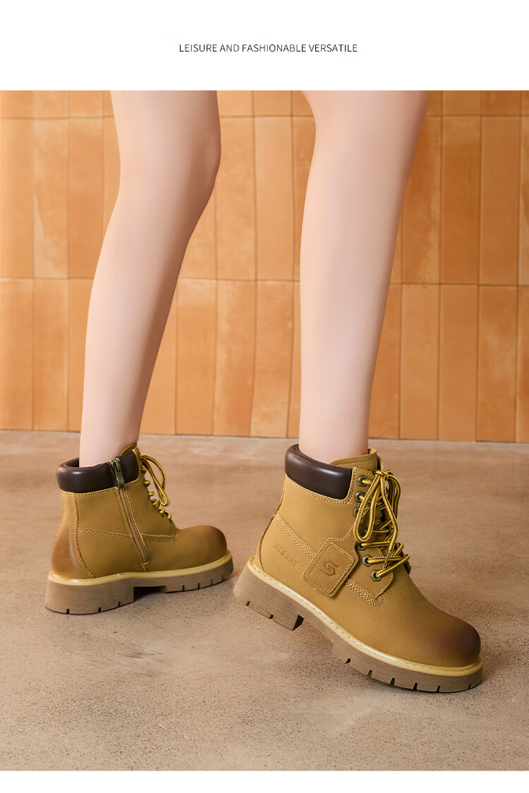 星期六厚底马丁靴女2025新款秋季户外登山短靴子女爆款工装大黄靴 黄色 【四季百搭】 35