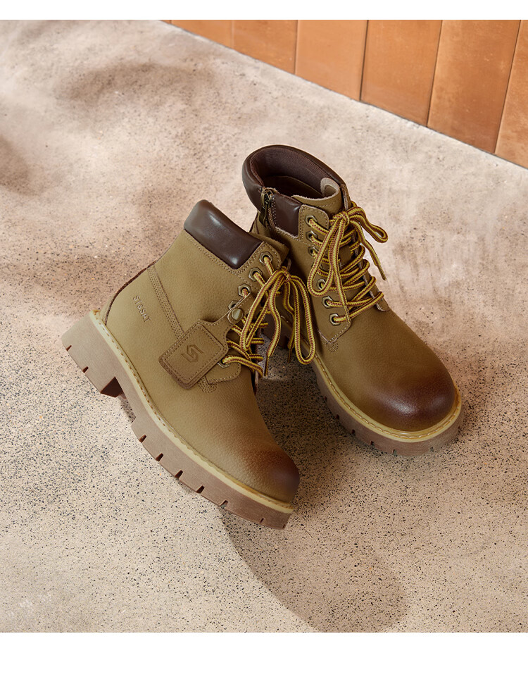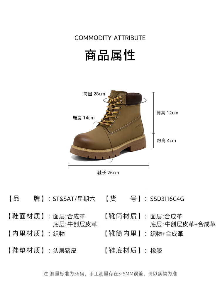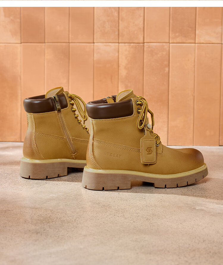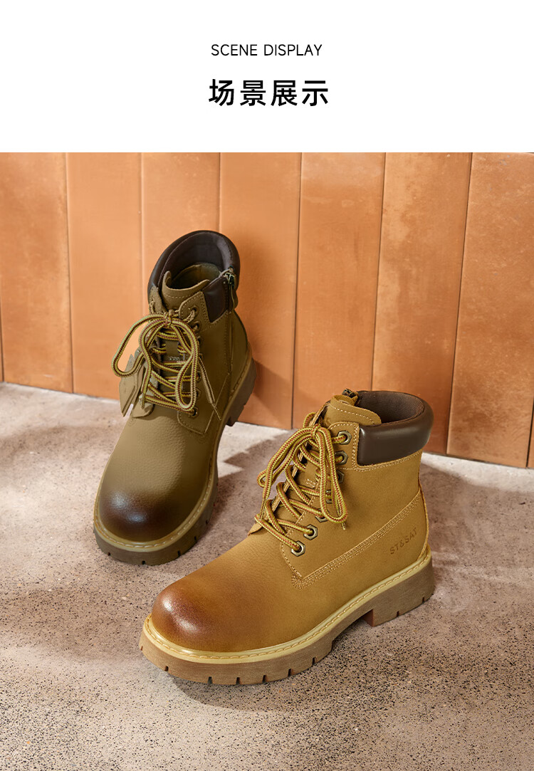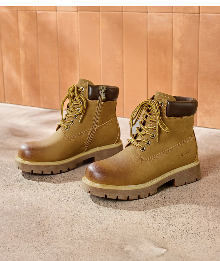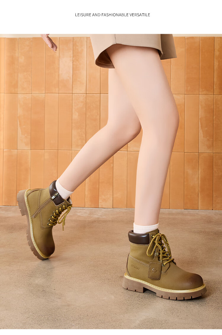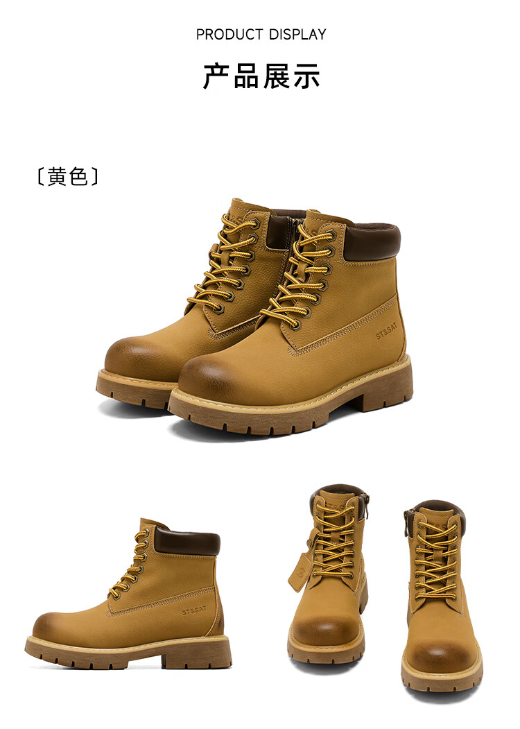 星期六厚底马丁靴女2025新款秋季户外登山短靴子女爆款工装大黄靴 黄色 【四季百搭】 35