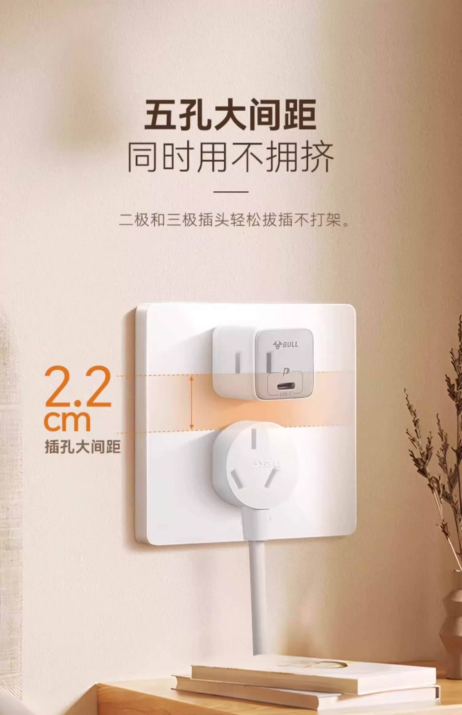 国际电工氮化镓65W充电器笔记本快充插座多功能USB迷你桌面插排旅行便携带线插头 直插款-14孔插座 灰色