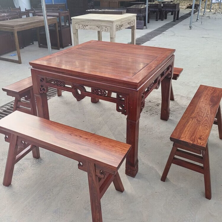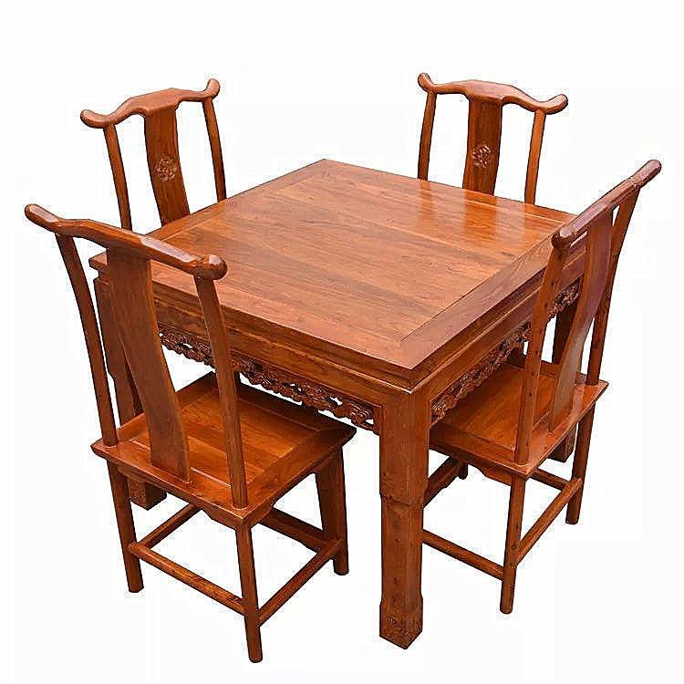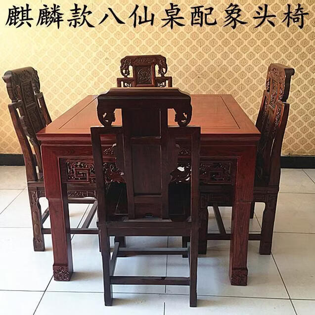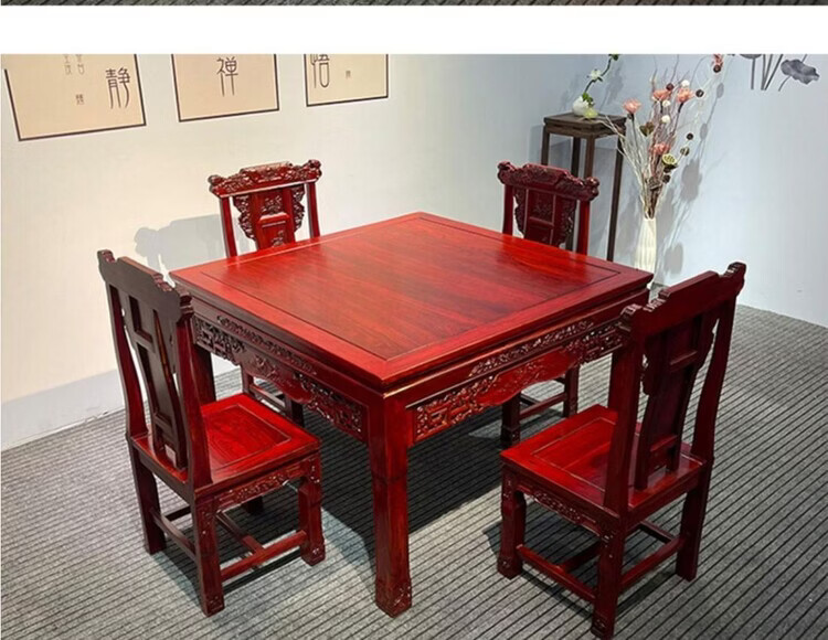 欣慕雅仿古八仙桌实木正方形餐桌四方桌子家用桌子小户型饭桌椅组合 麒麟款80*80*80高