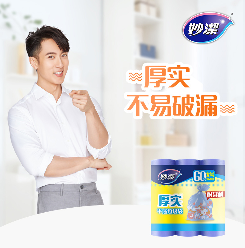 妙洁平口垃圾袋蓝色50*60cm60只单面0.9丝点断式大号新老包装随机发货