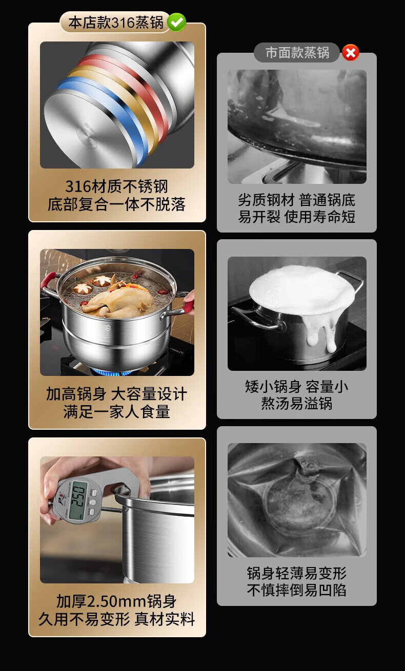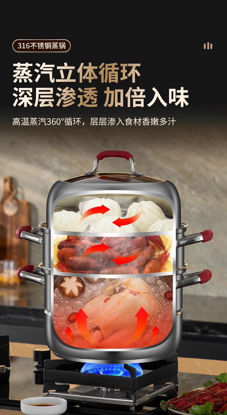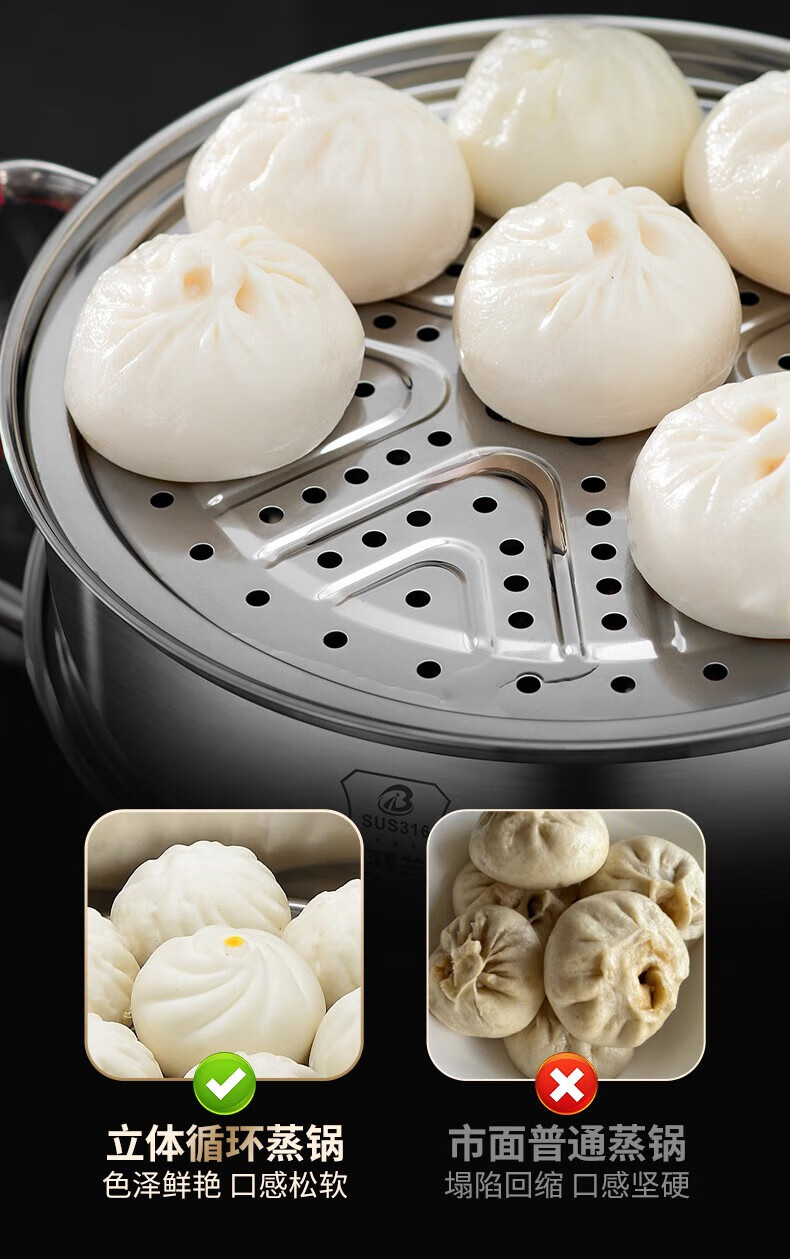 双立人德国进口高端同款品质蒸锅家用炊具316不锈钢食品级屉蒸馒头汤锅 316不锈钢两层 316不锈 28cm