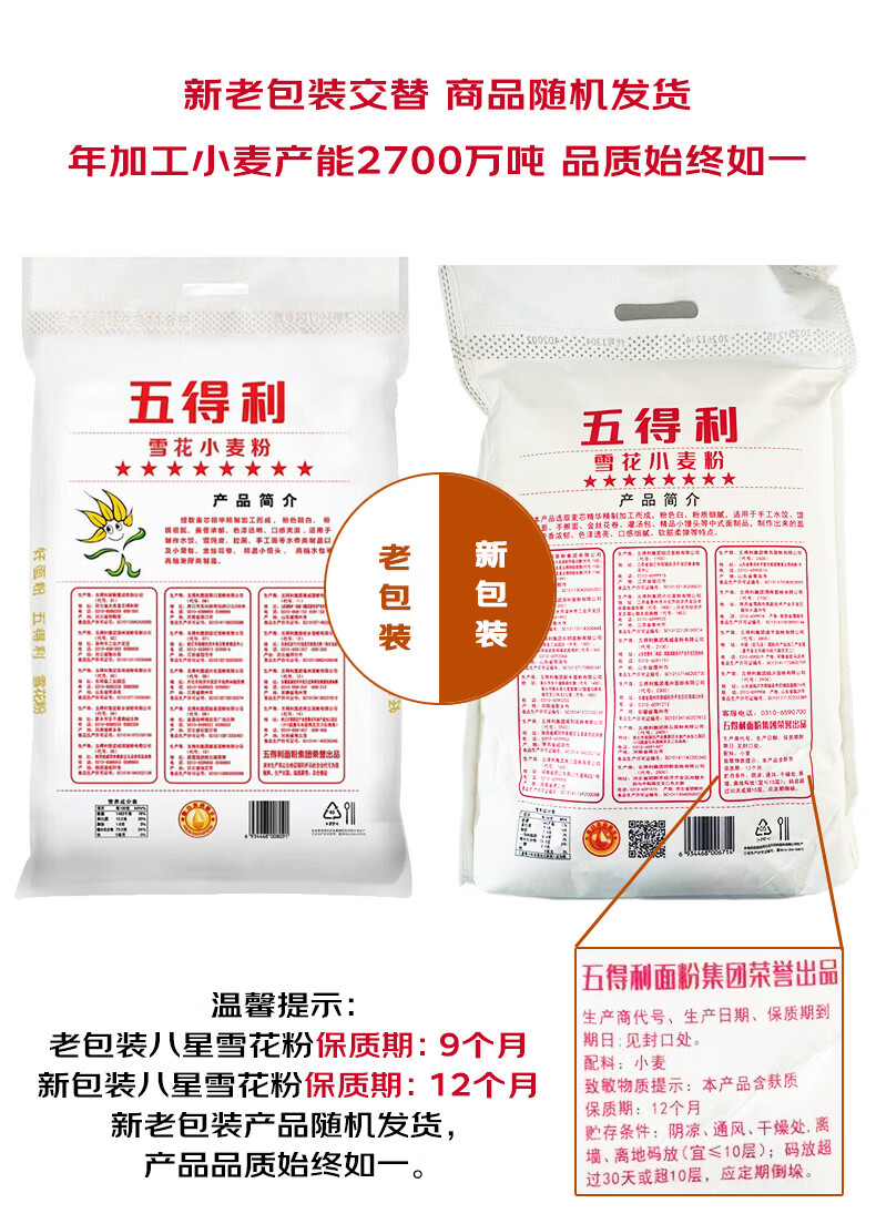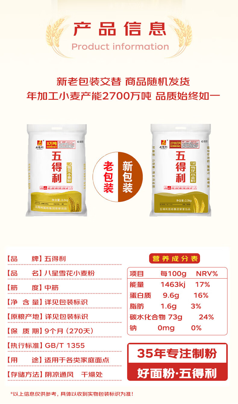 五得利面粉八星雪花小麦粉中筋白面馒头饺子面条包子食材企业团购优选 5kg(10斤面粉)